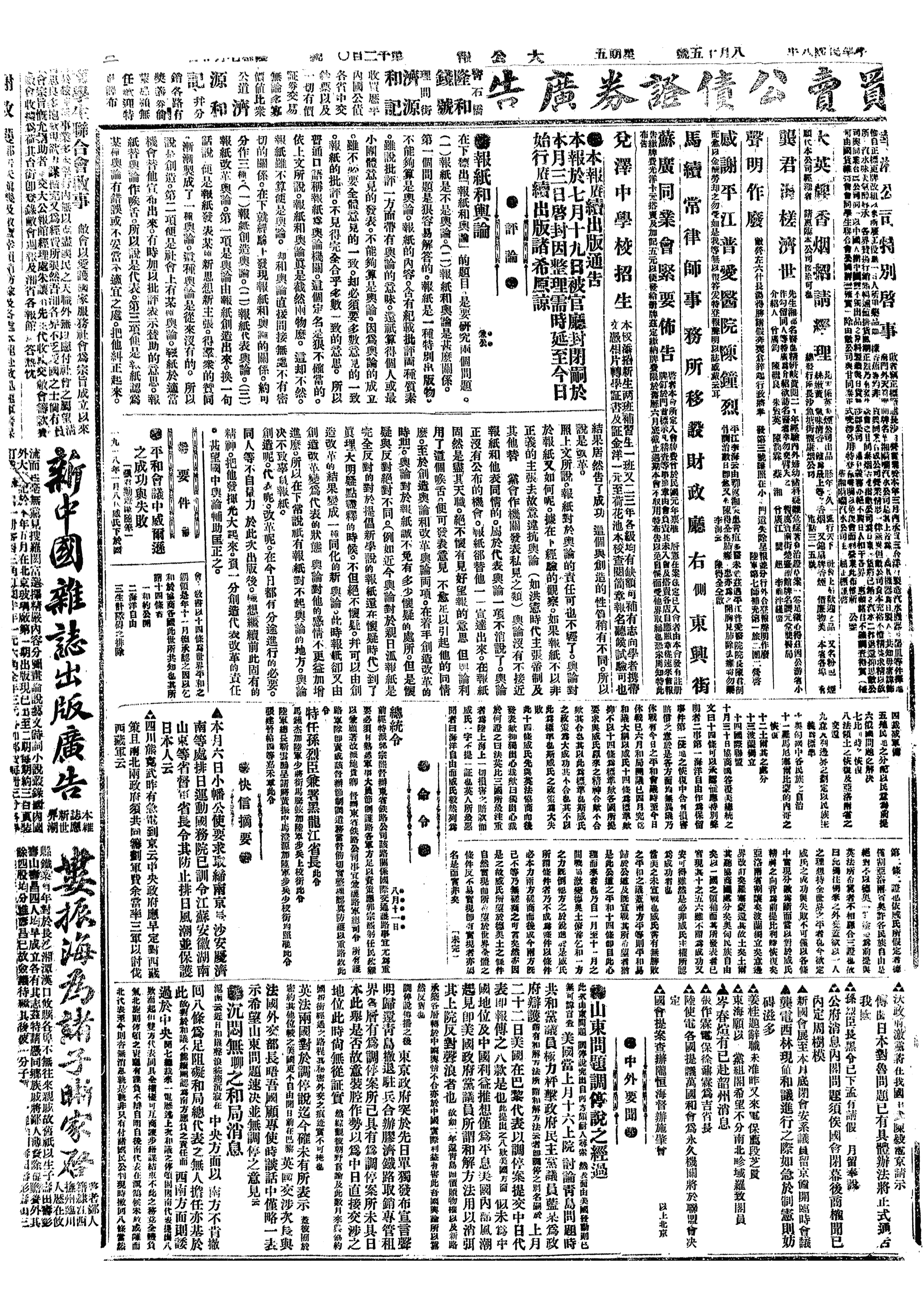 中华民国史大事记>19190815