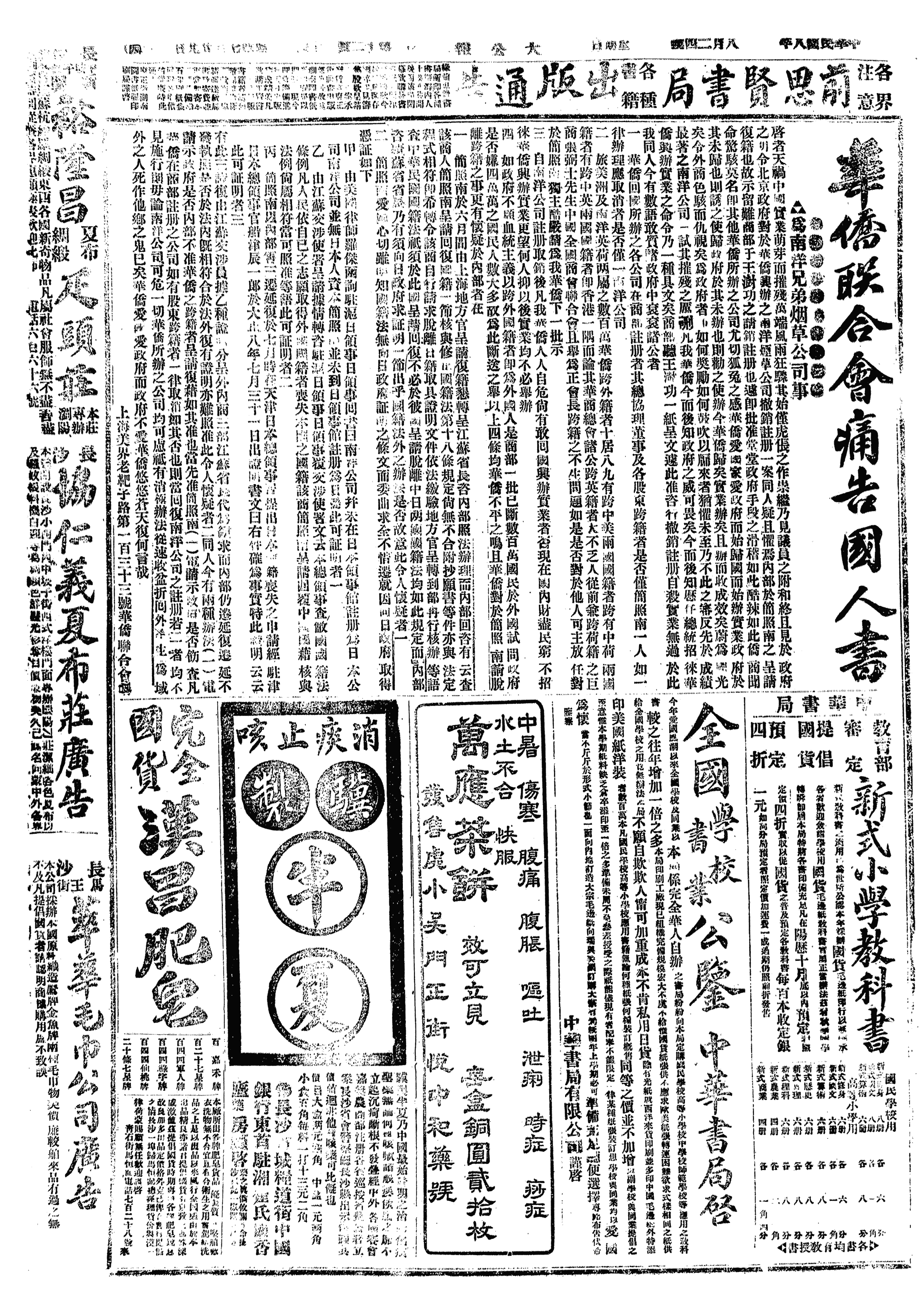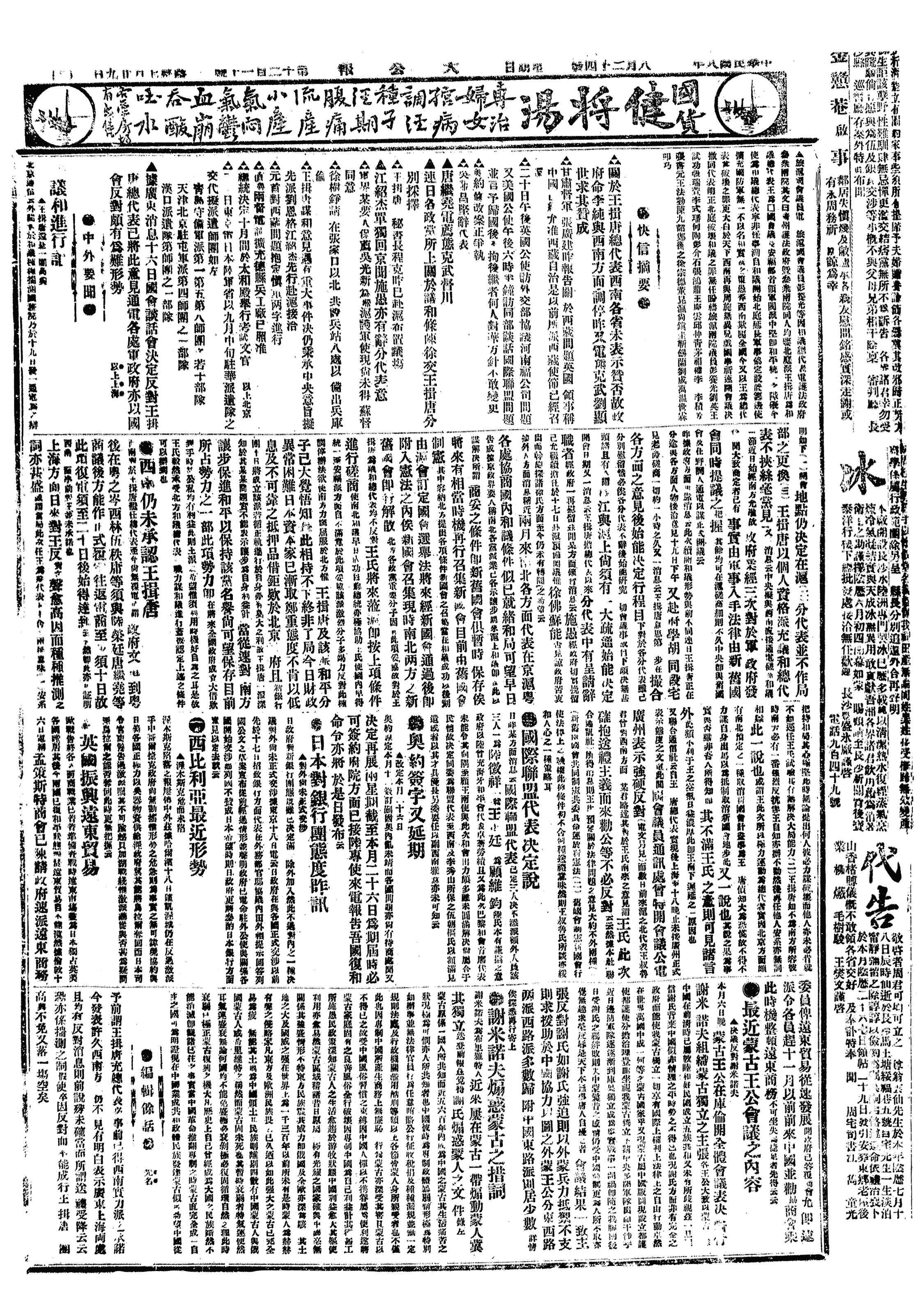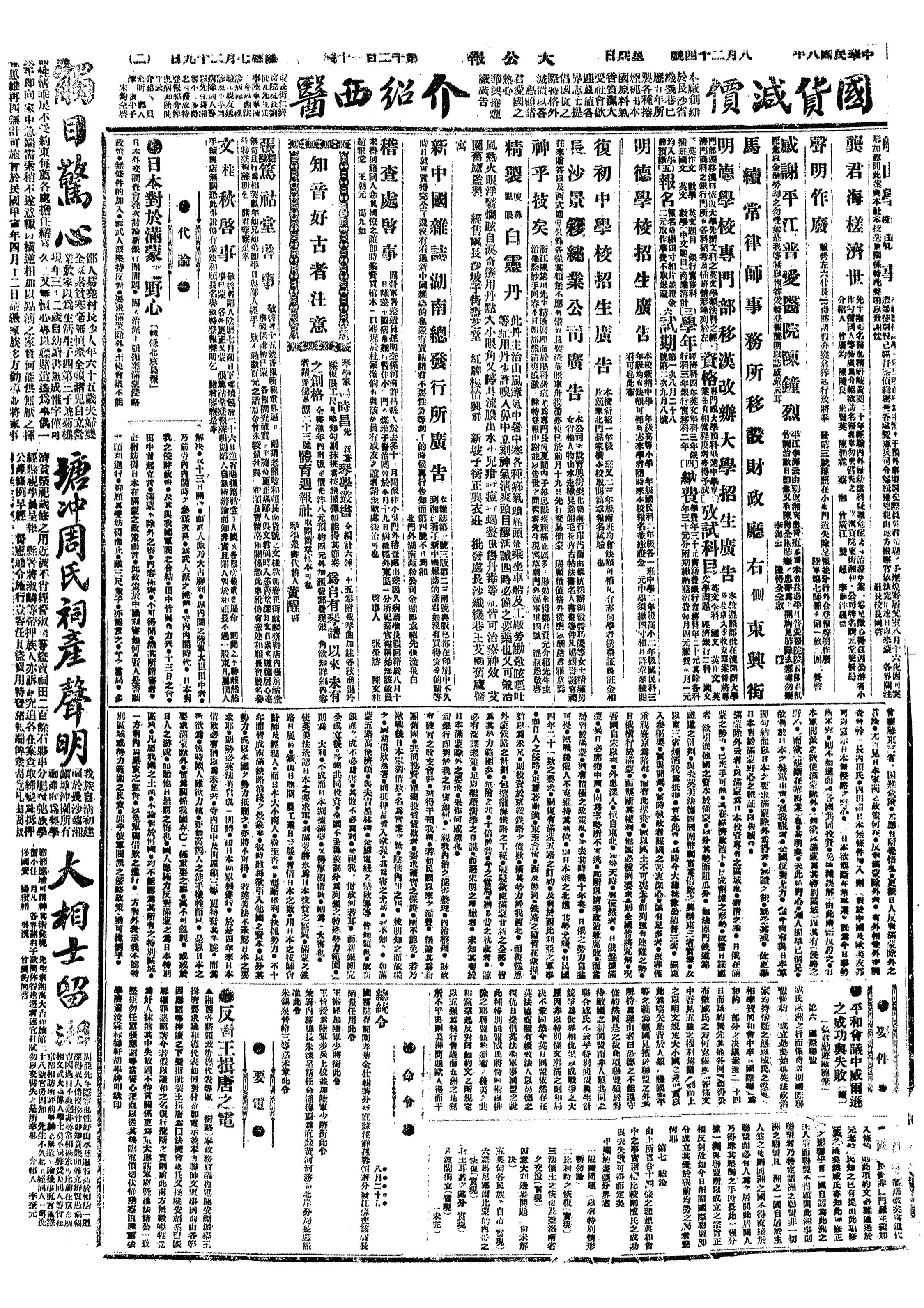 中华民国史大事记>19190824