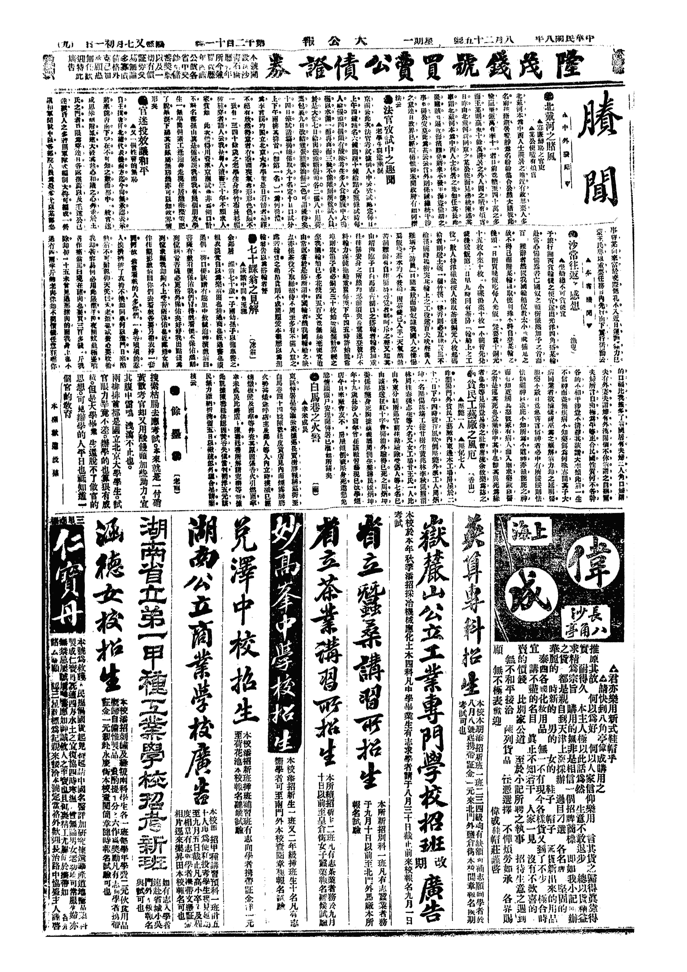 中华民国史大事记>19190825