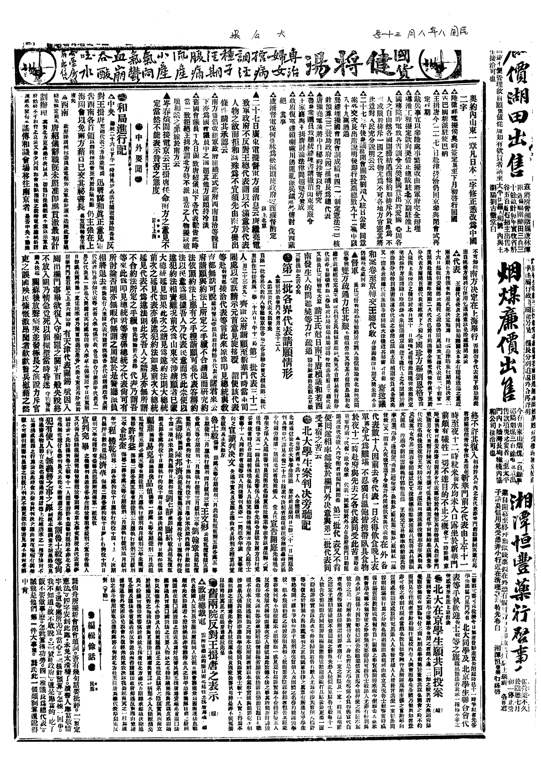 中华民国史大事记>19190831