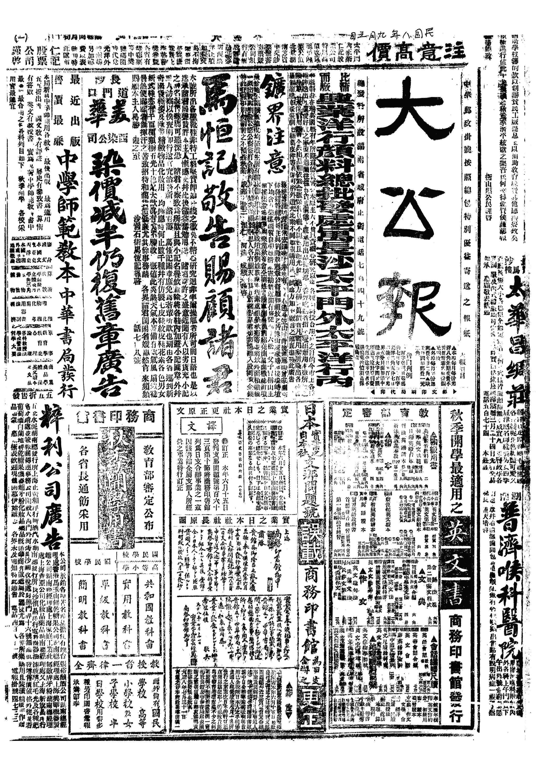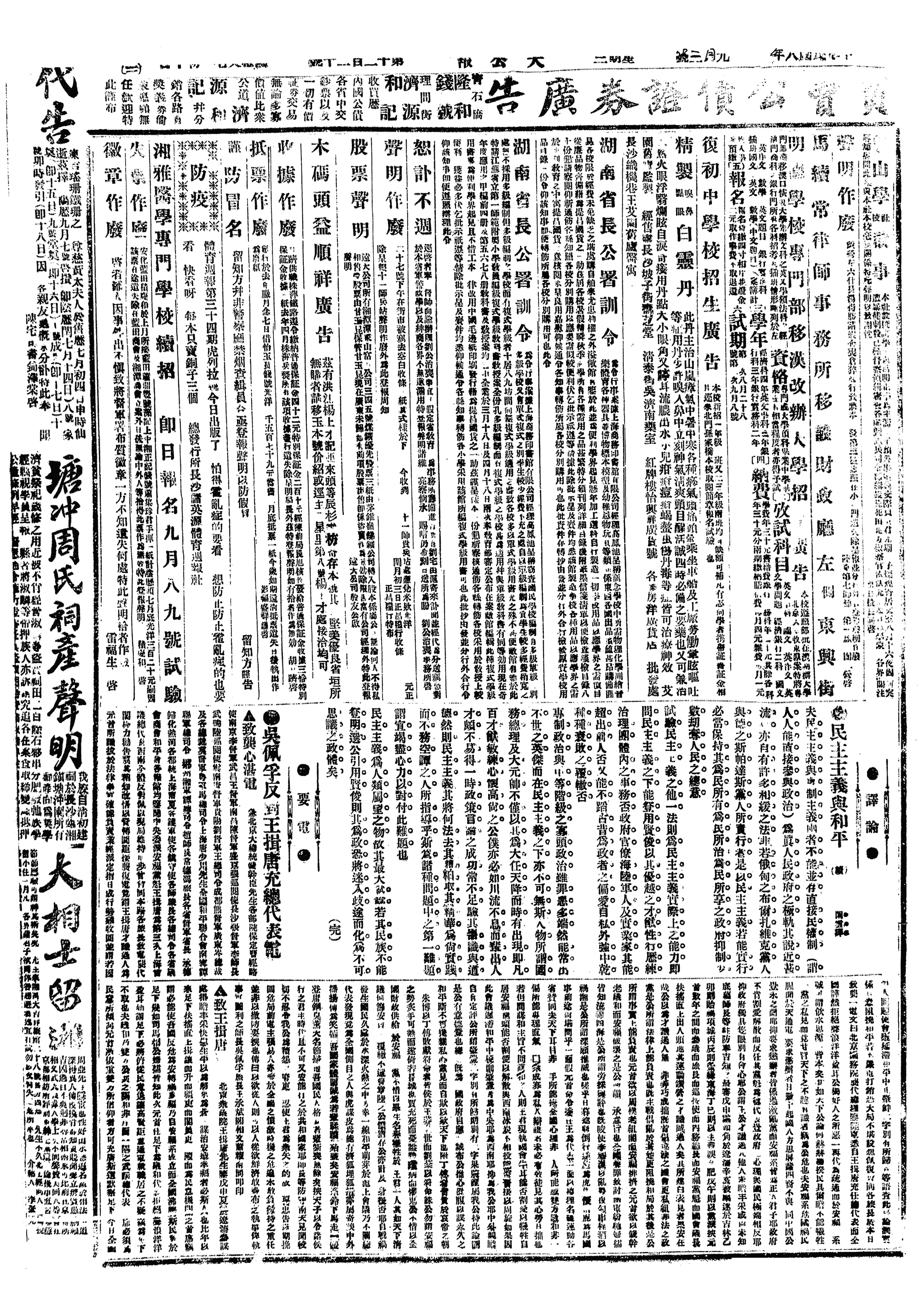 中华民国史大事记>19190903