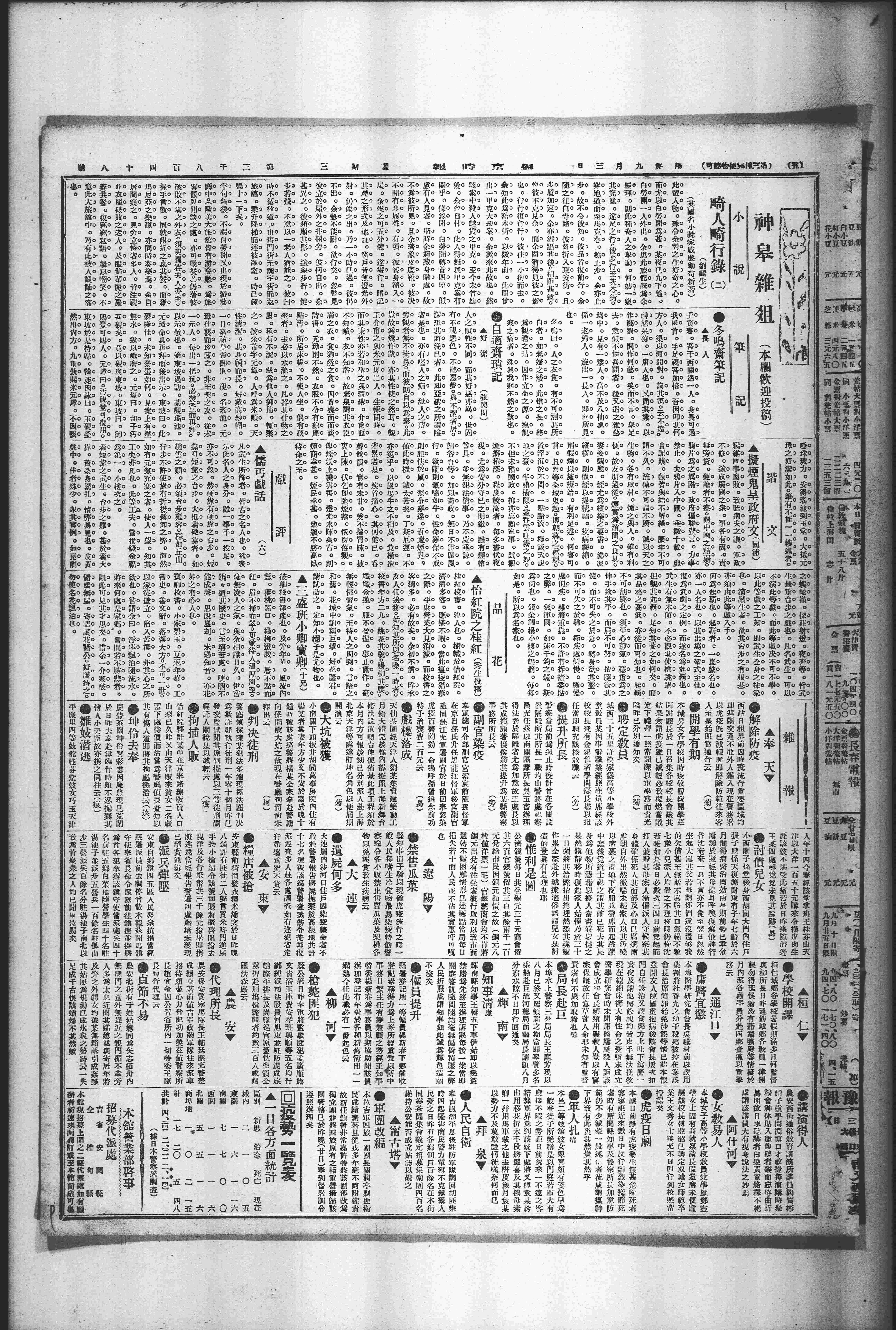 少荆来言,八期《星期日》颇卖得。席文光、萧廷伦来。文光言,刘子立最怕《星期日》。国学校请星五午前十钟茶点。