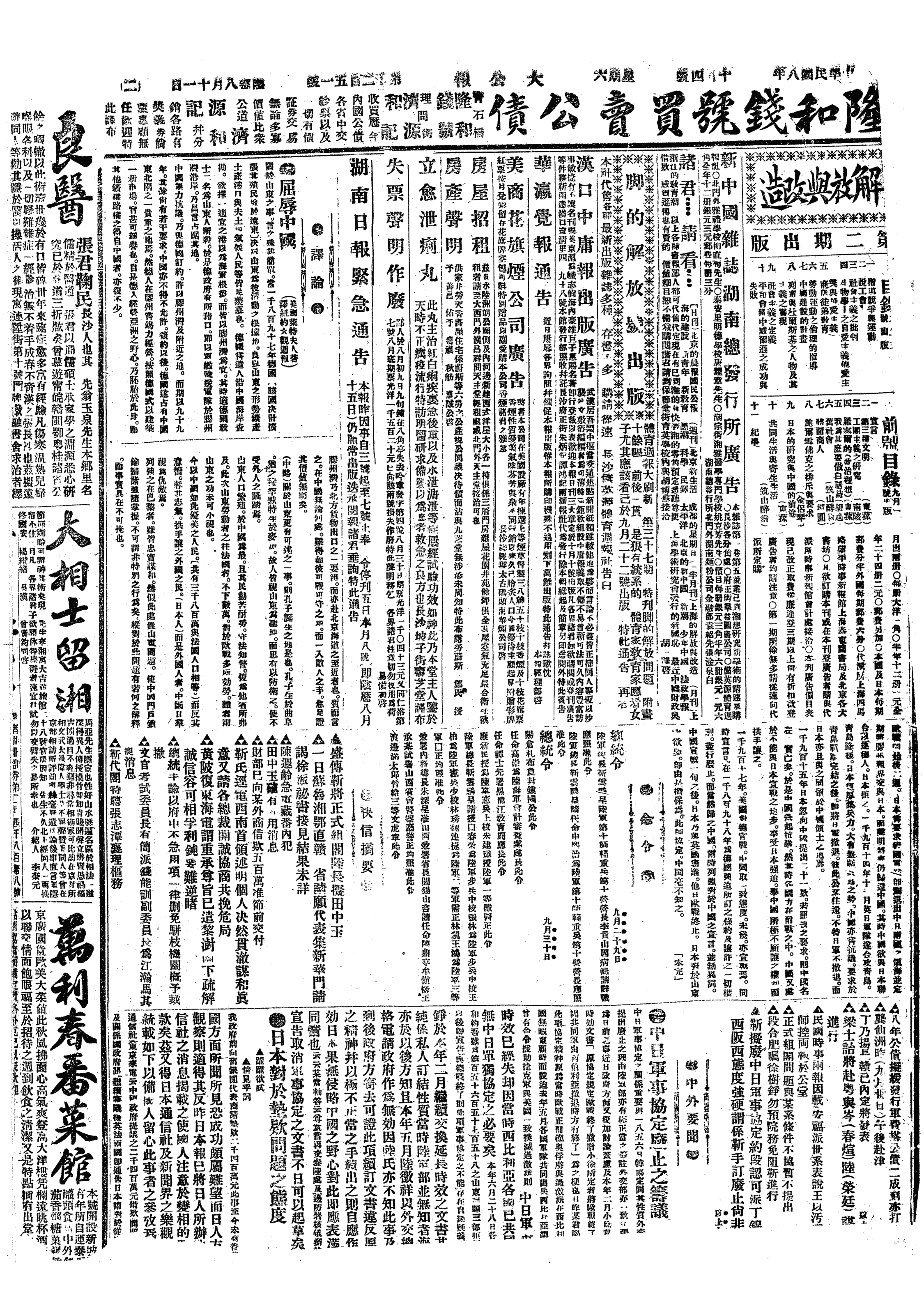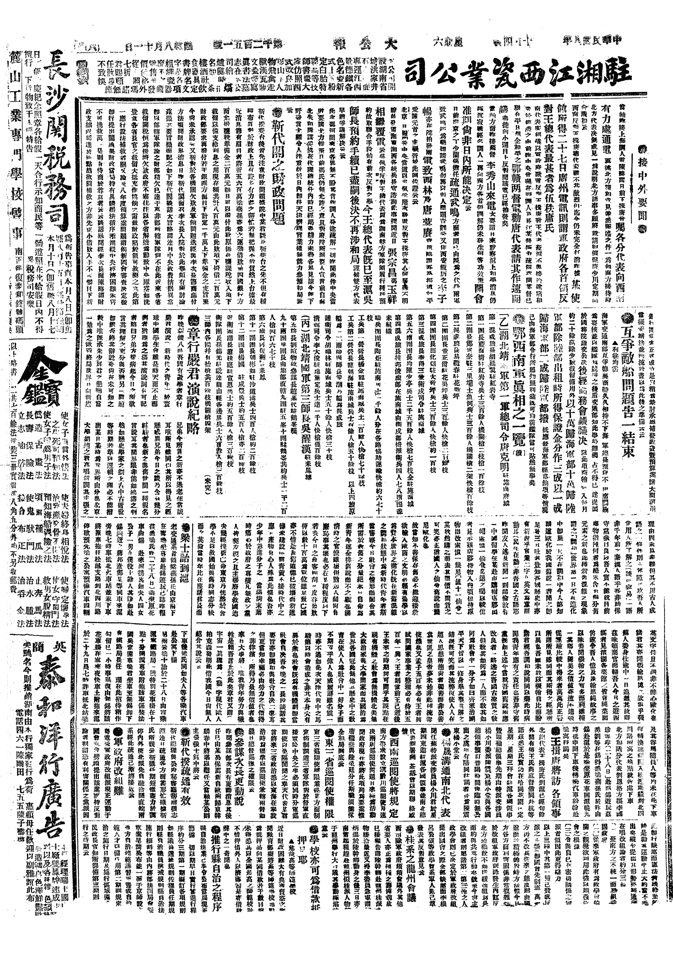 中华民国史大事记>19191004
