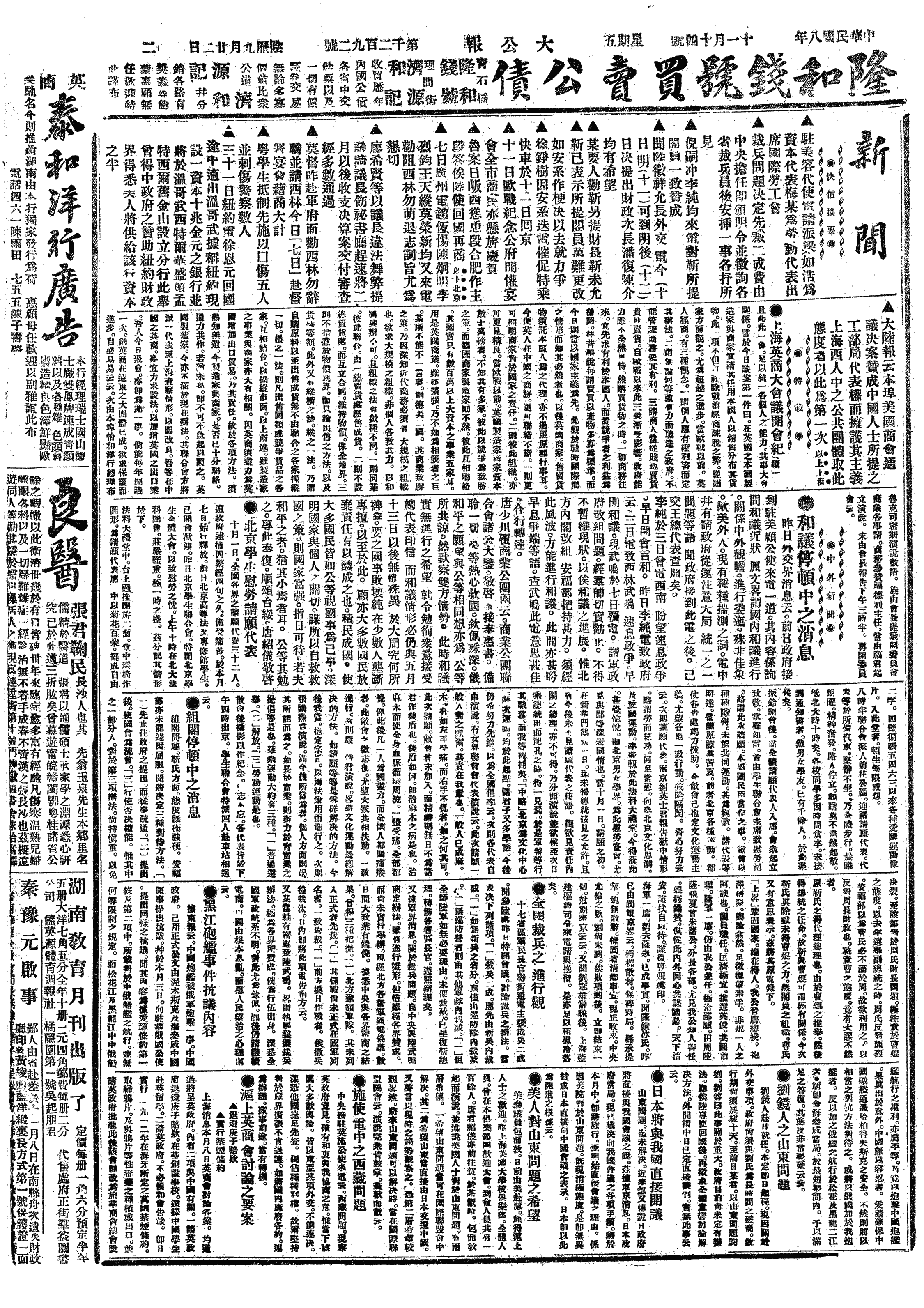 中华民国史大事记>19191114