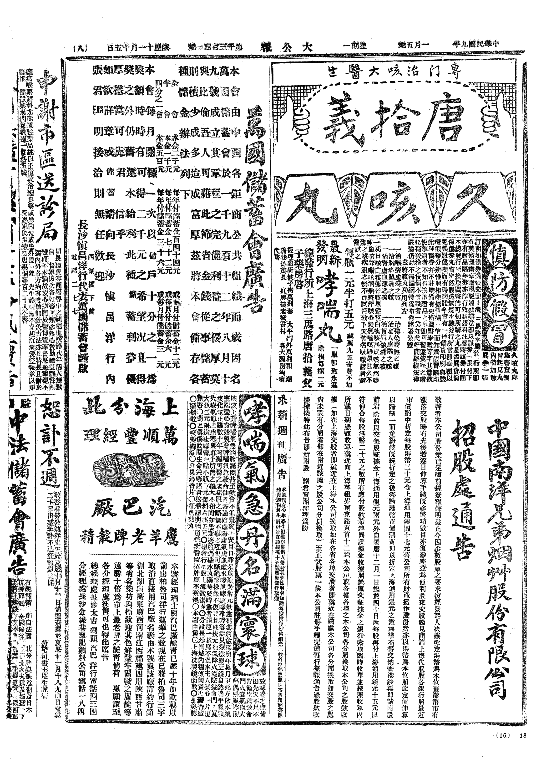 中华民国史大事记>19200105