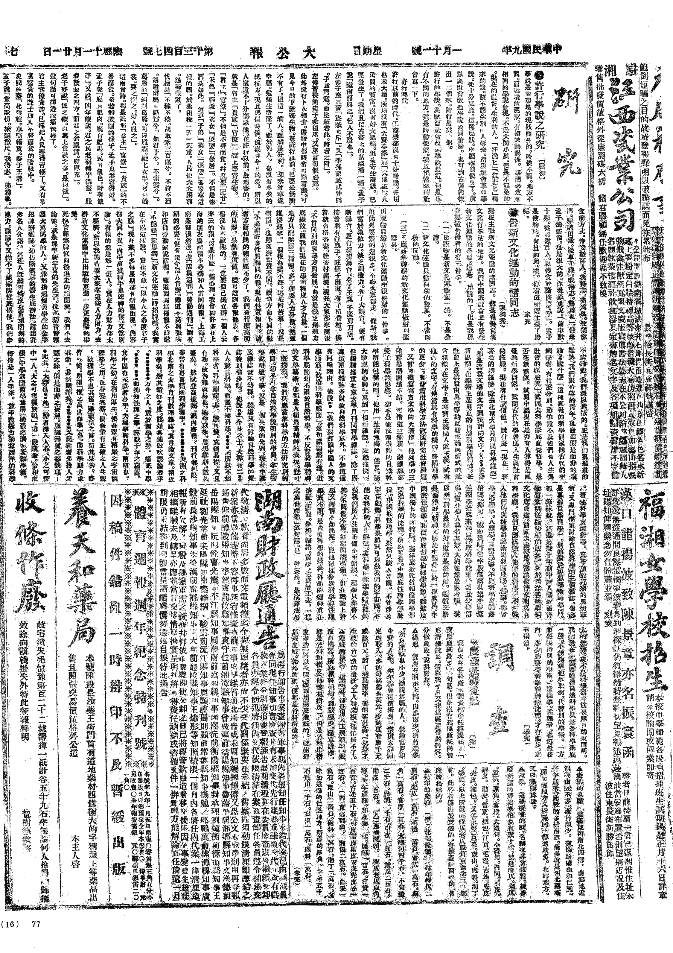 令人往警署请出城票。饭后阴阳来与道秀开路掩殓,予见道秀神气如常,鼻垂玉筋,知其坦然,往生极乐矣。令卫邻与少荆送信去请包丧夫,并还重取之《解放与改造》五号一册去。夏斧私属李文煦来慰问。廖学章来,交来银二十元,谈久之,云赵铁桥、李炳英皆极称予爽直,并不怪。学章携去今日《星期日》及《社会问题》二份。少荆同王二兴来,包夫十二名,送道秀还山,乾包一并在内,价钱十七千文,当用去钱七千干。午饭后同吴老幺游公园散闷去。余啸风送纸钱十斤,象腿一付,赏钱四十文。今日将毛女所积钱六千一百五十文佐成银元三大元,交吴四哥,又令张佃将道秀存菜子银十一元交吴四哥手,共作银十两,下欠六分,予补吴四哥钱一百八十文,作为退吴四哥押钱十两,即为道秀与毛女存款,每年收谷五斗五升足。少荆送金刚经二百张,香烛一份。