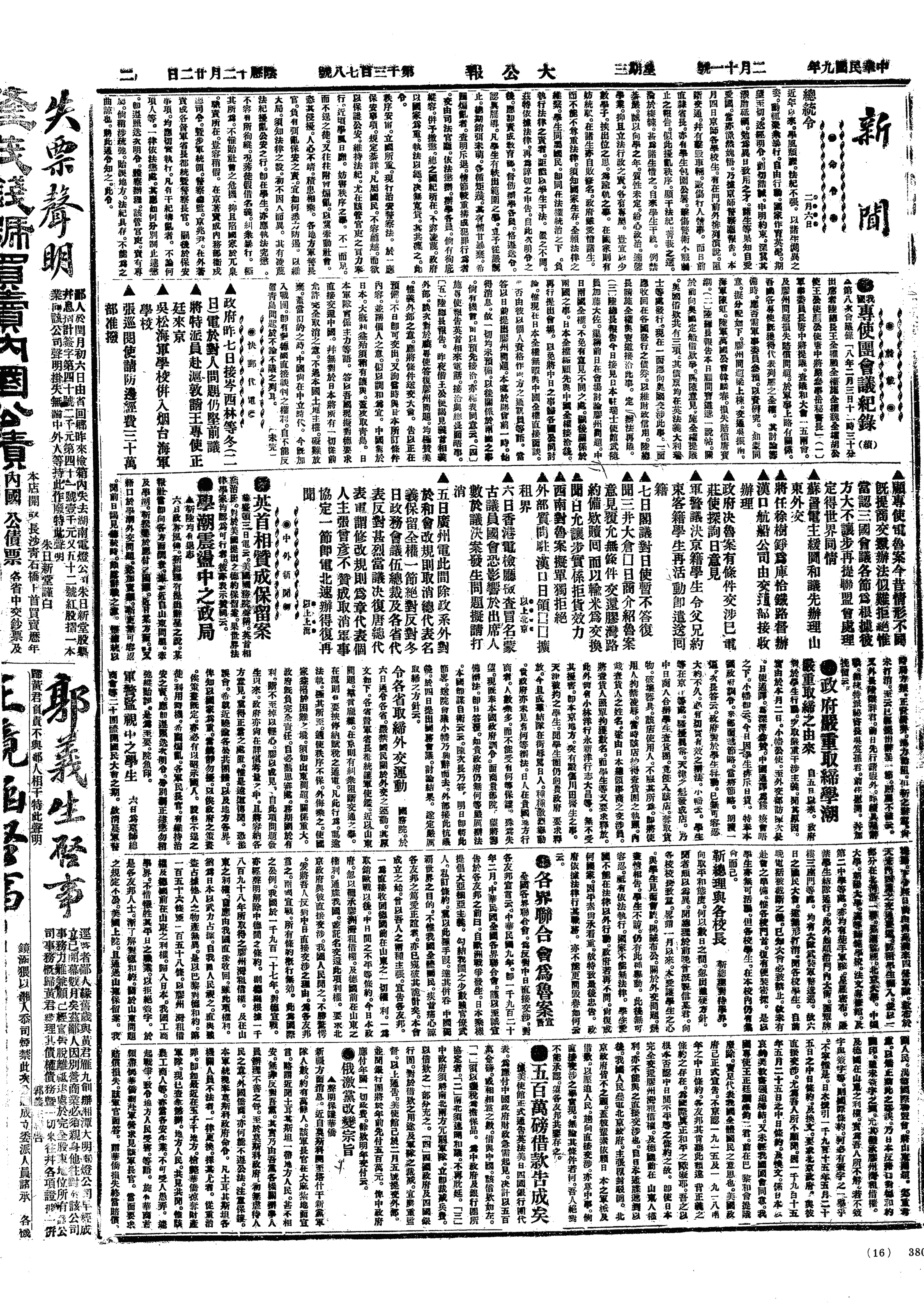 中华民国史大事记>19200211