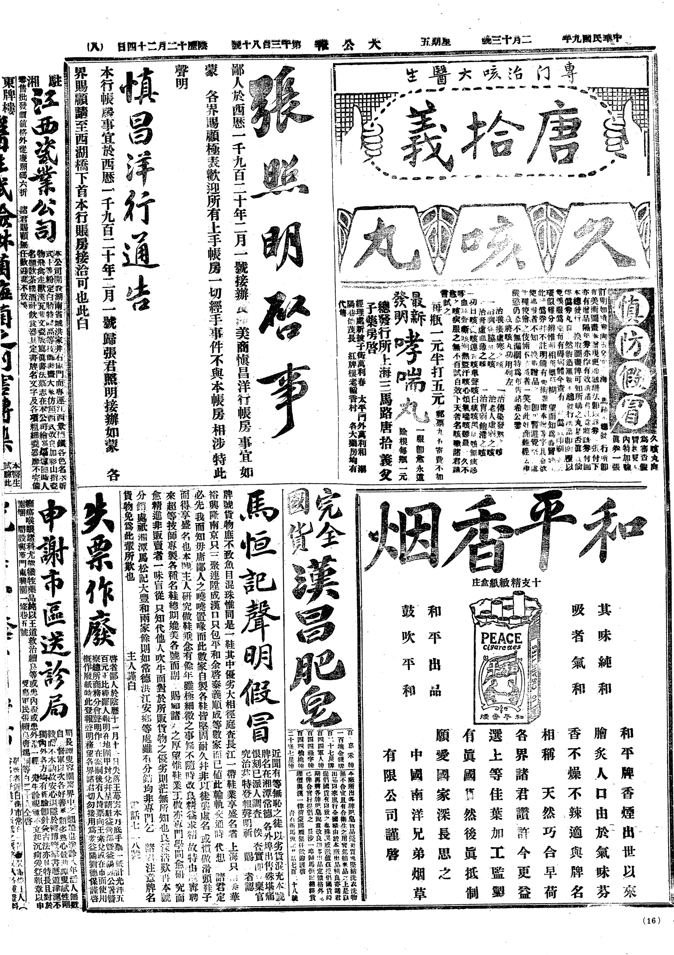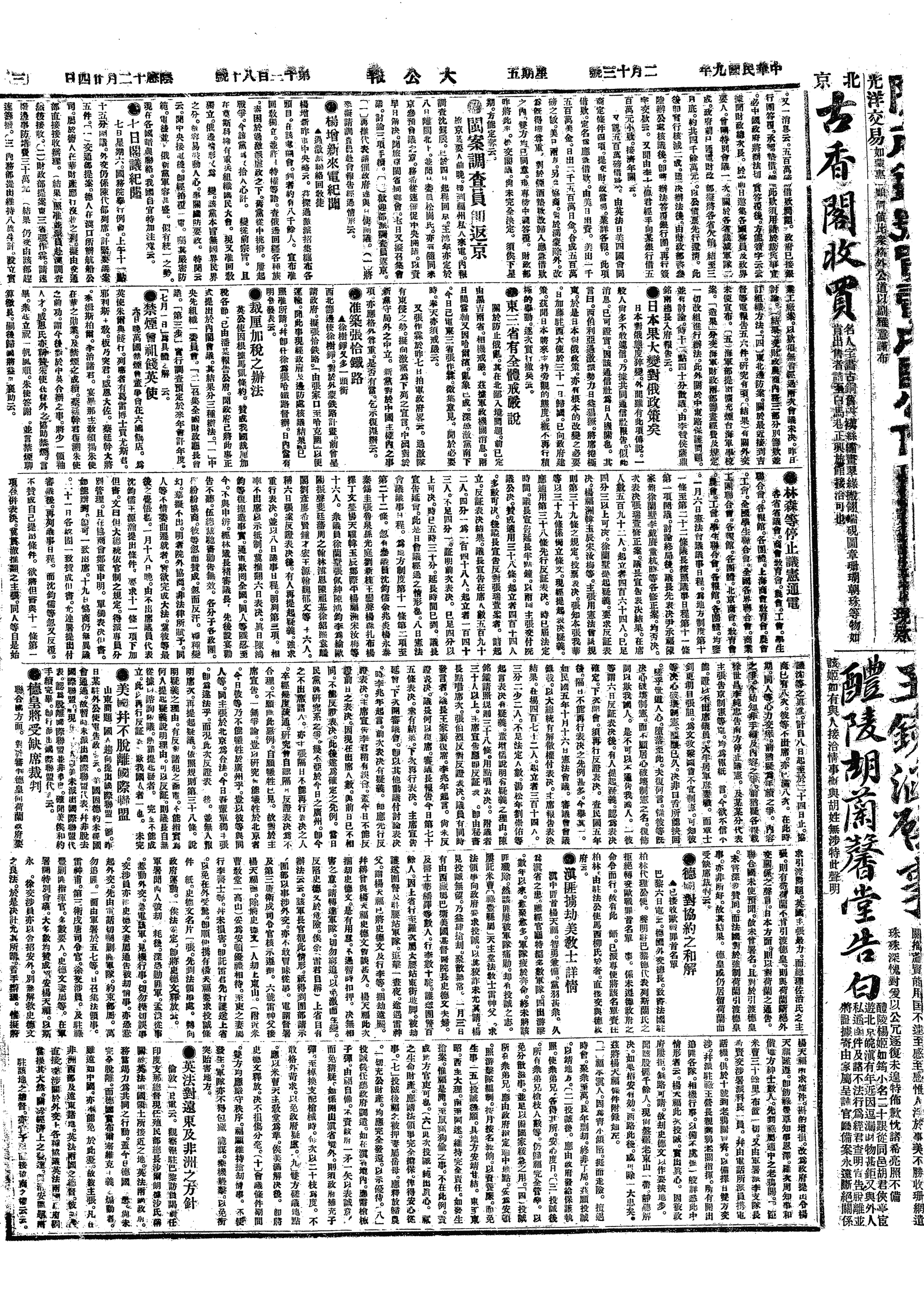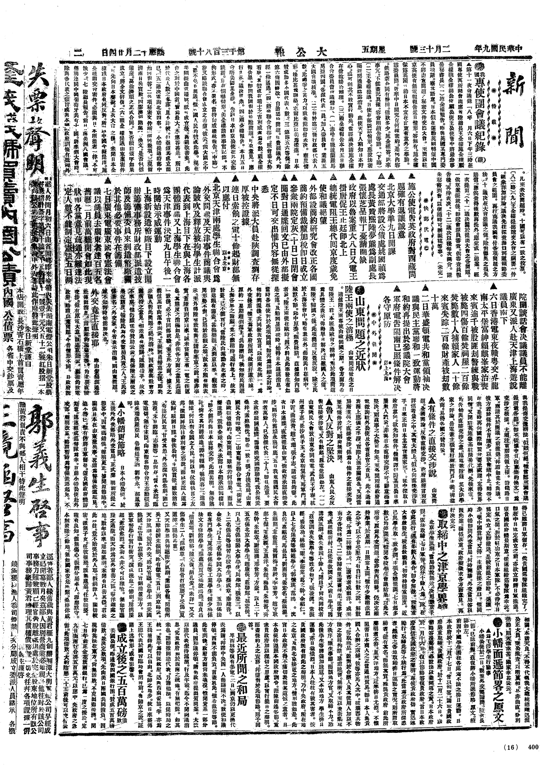 中华民国史大事记>19200213