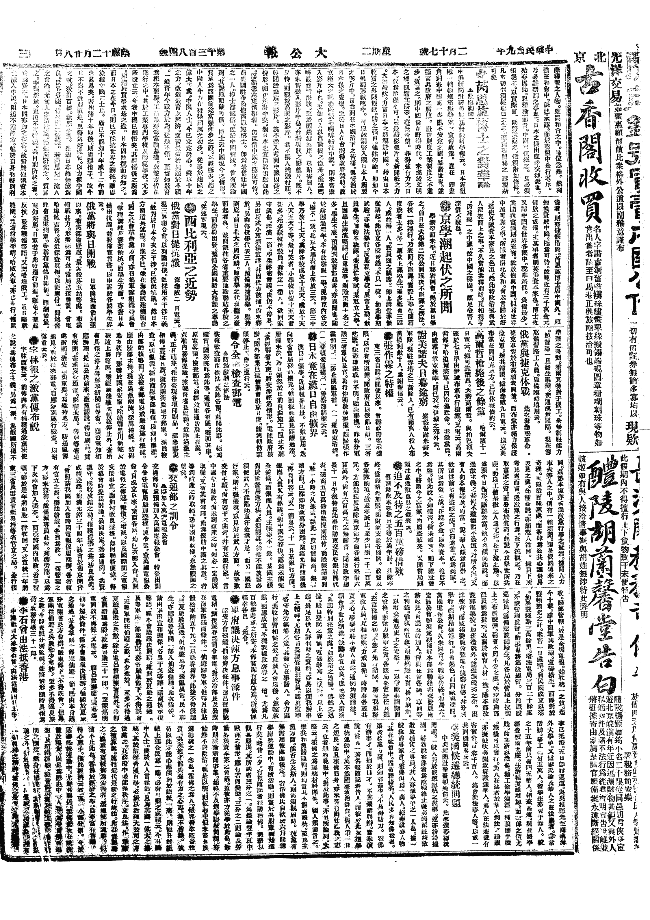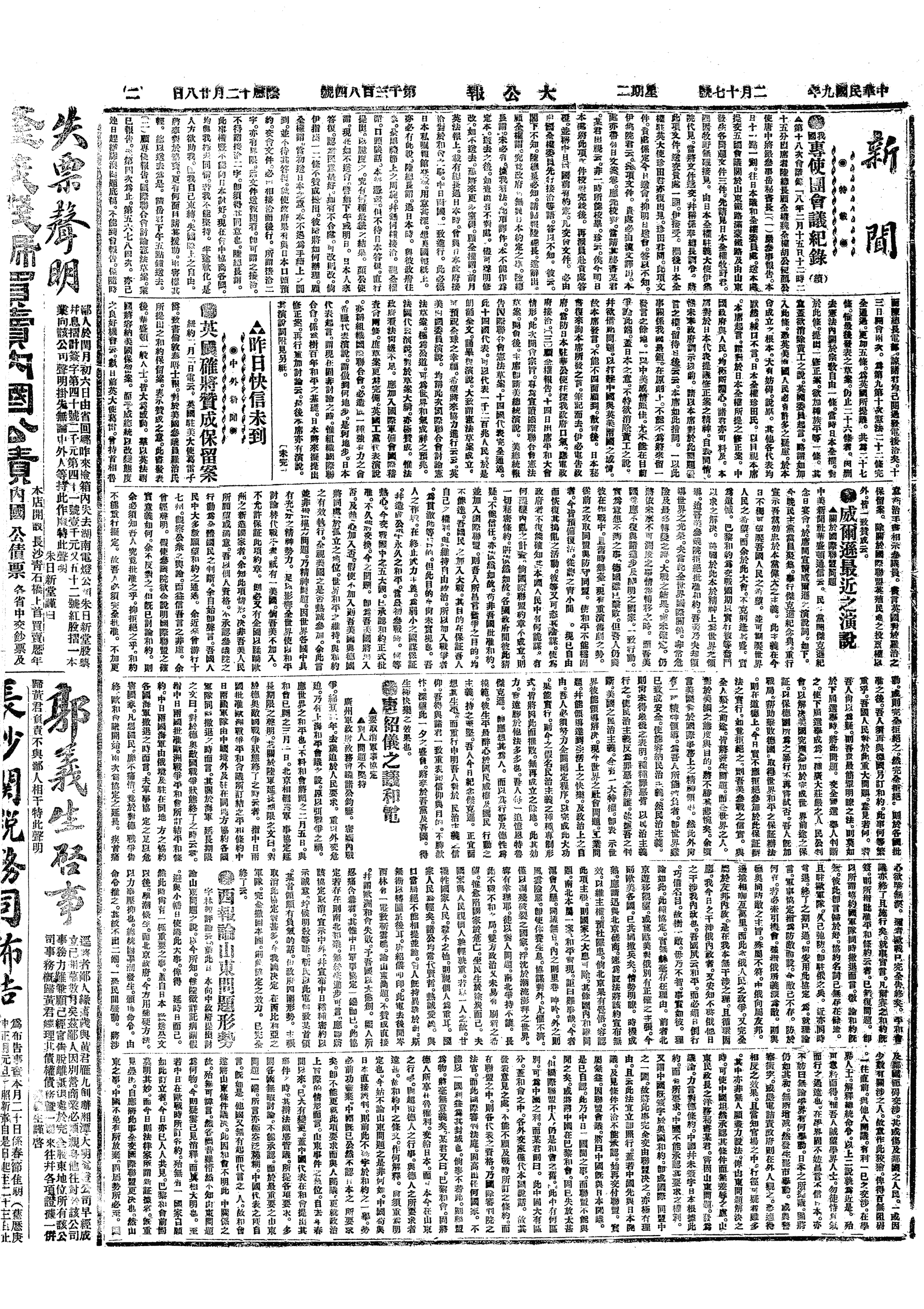 中华民国史大事记>19200217