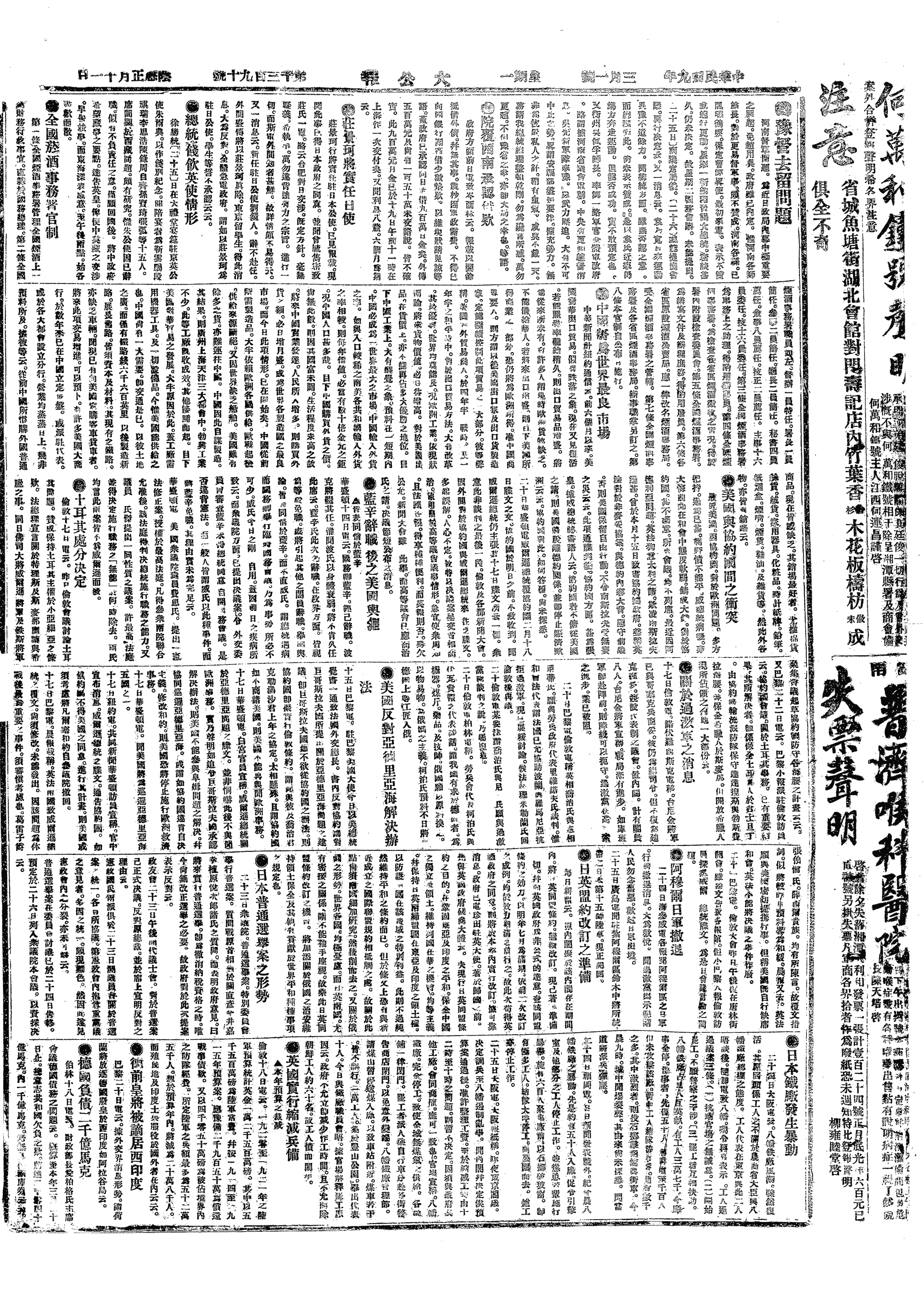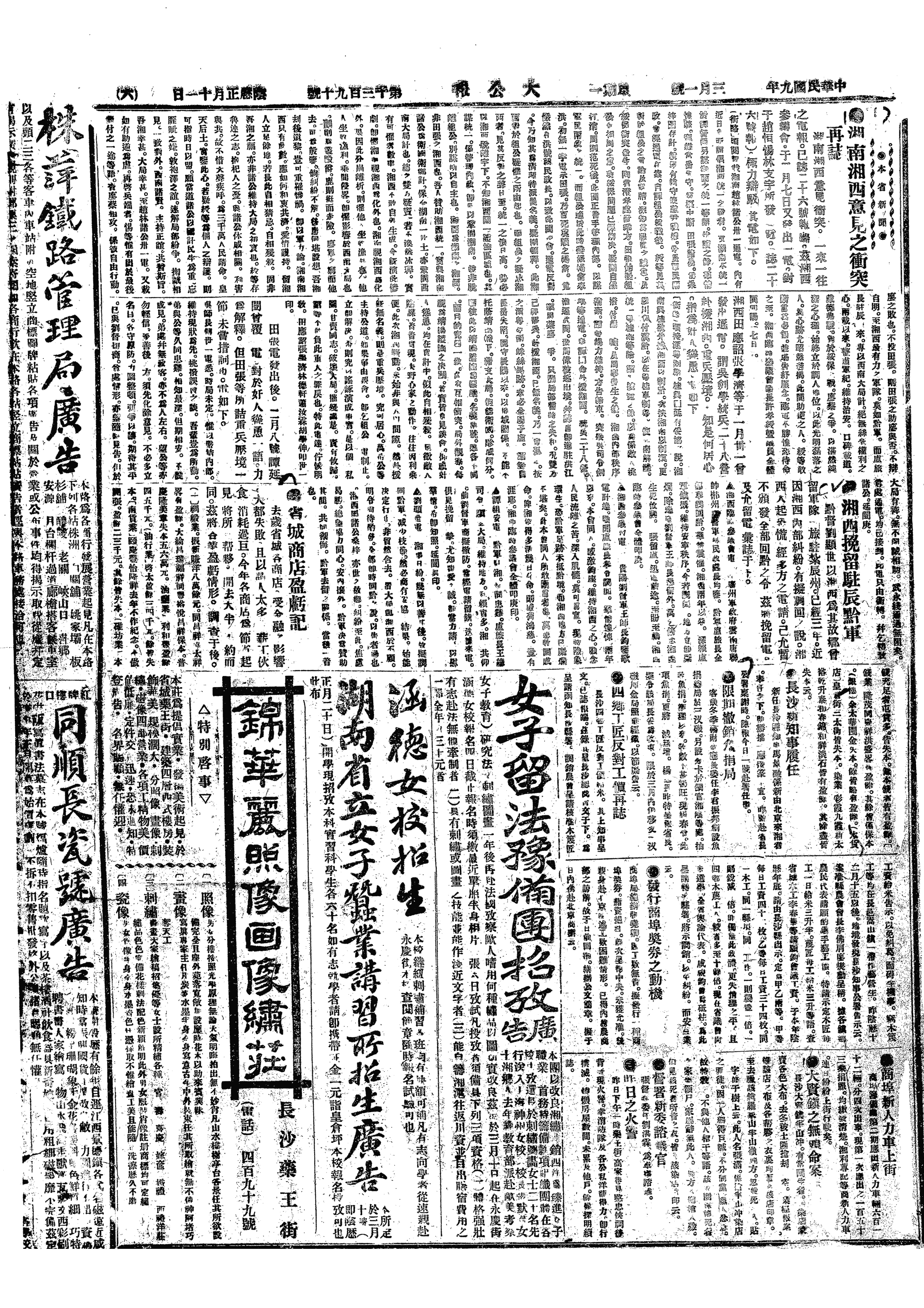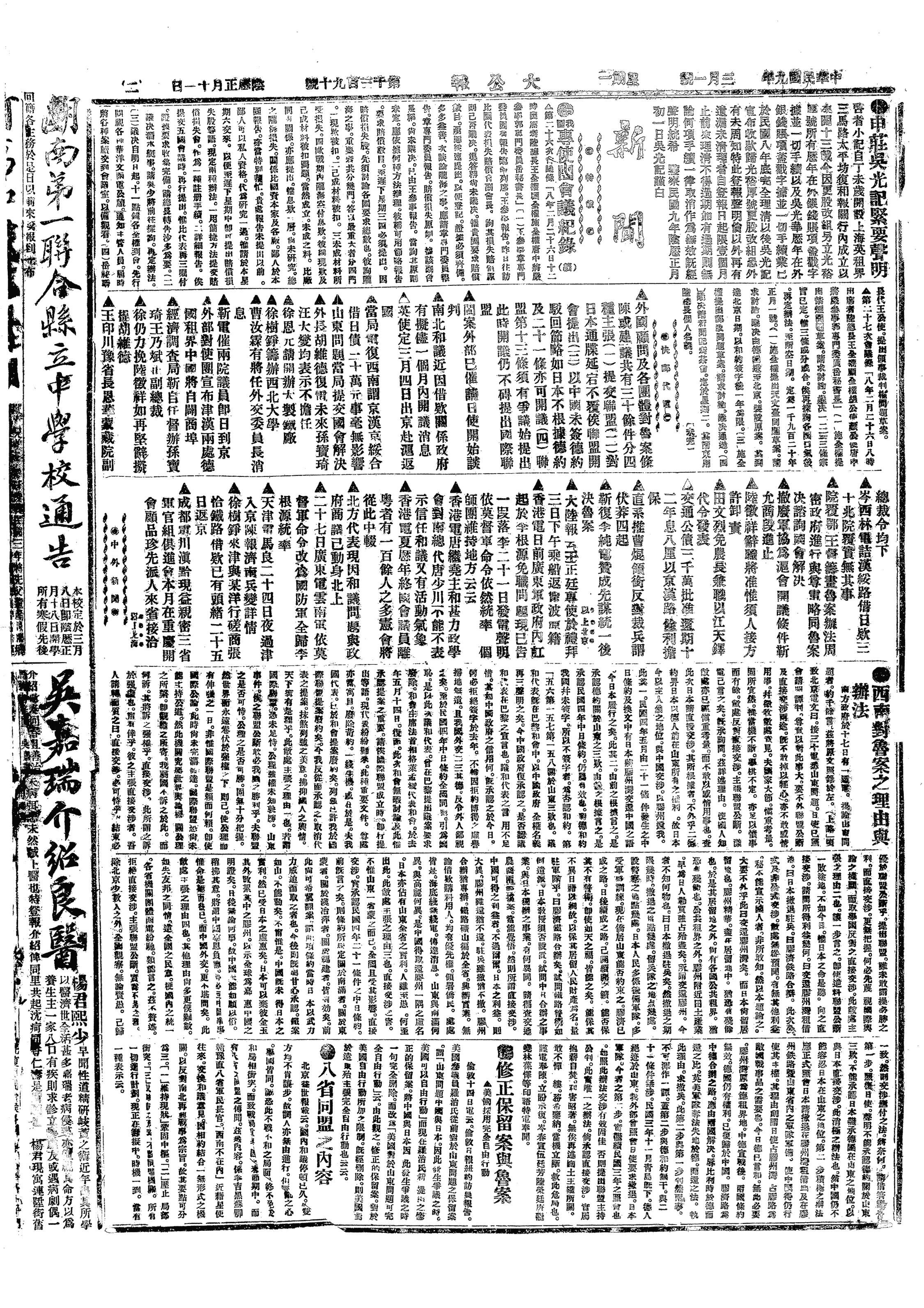 中华民国史大事记>19200301