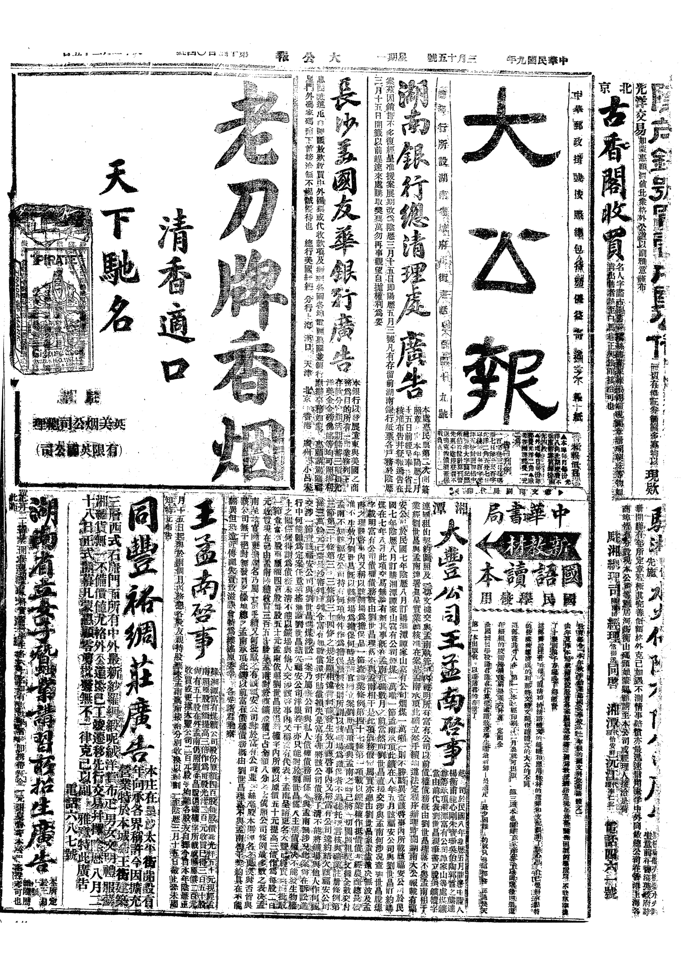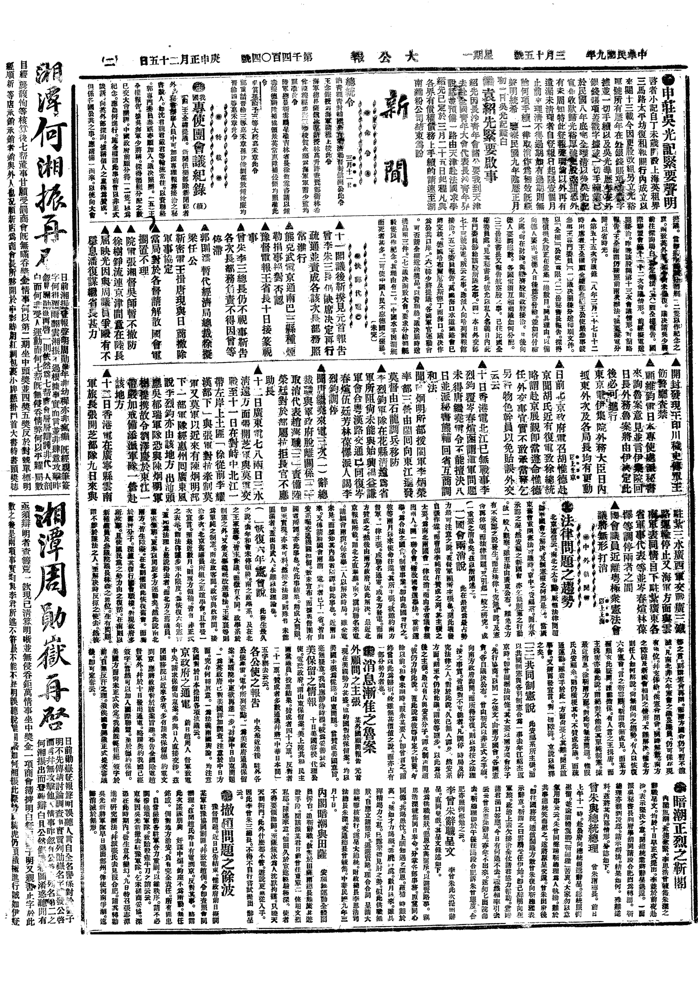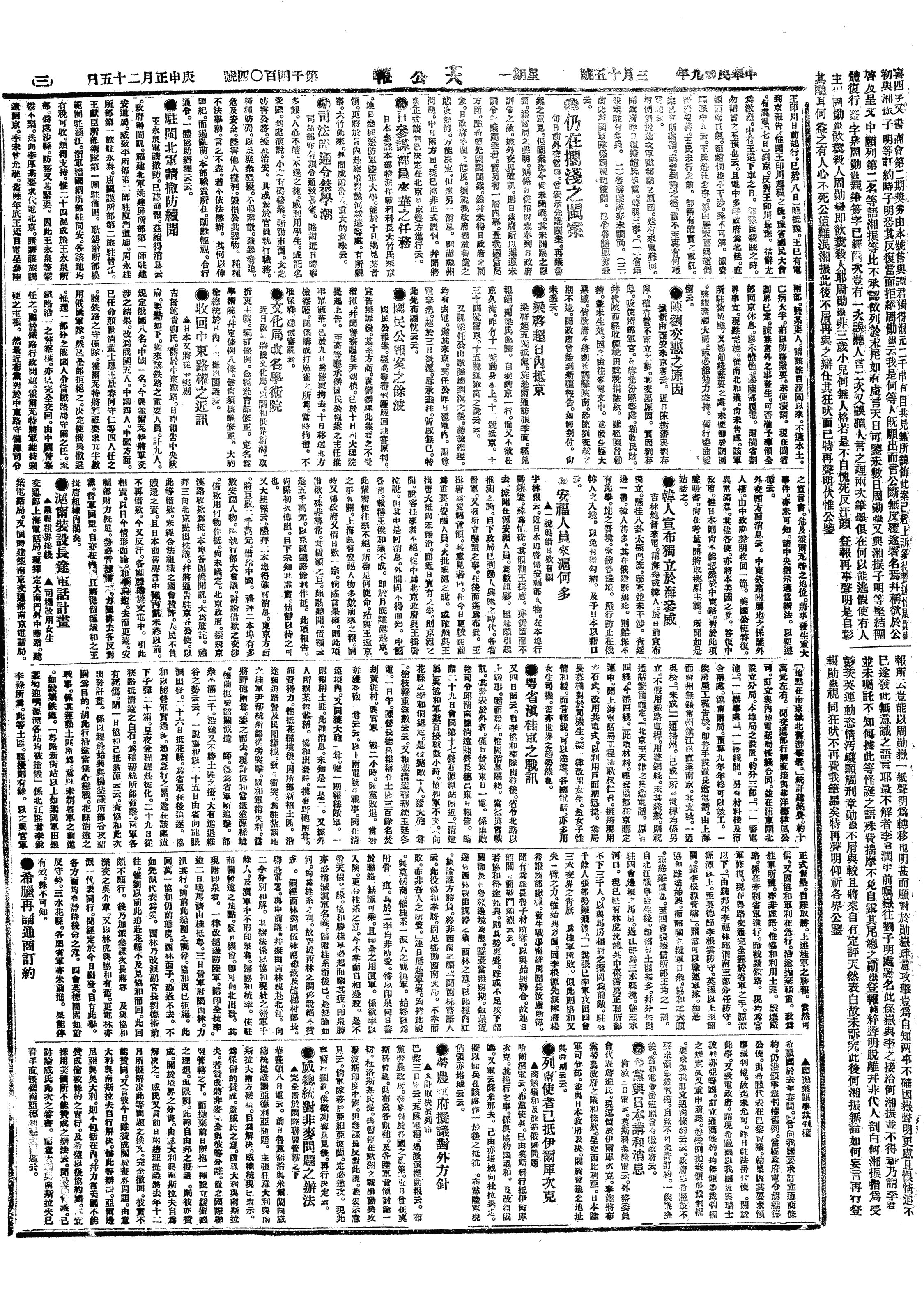中华民国史大事记>19200315