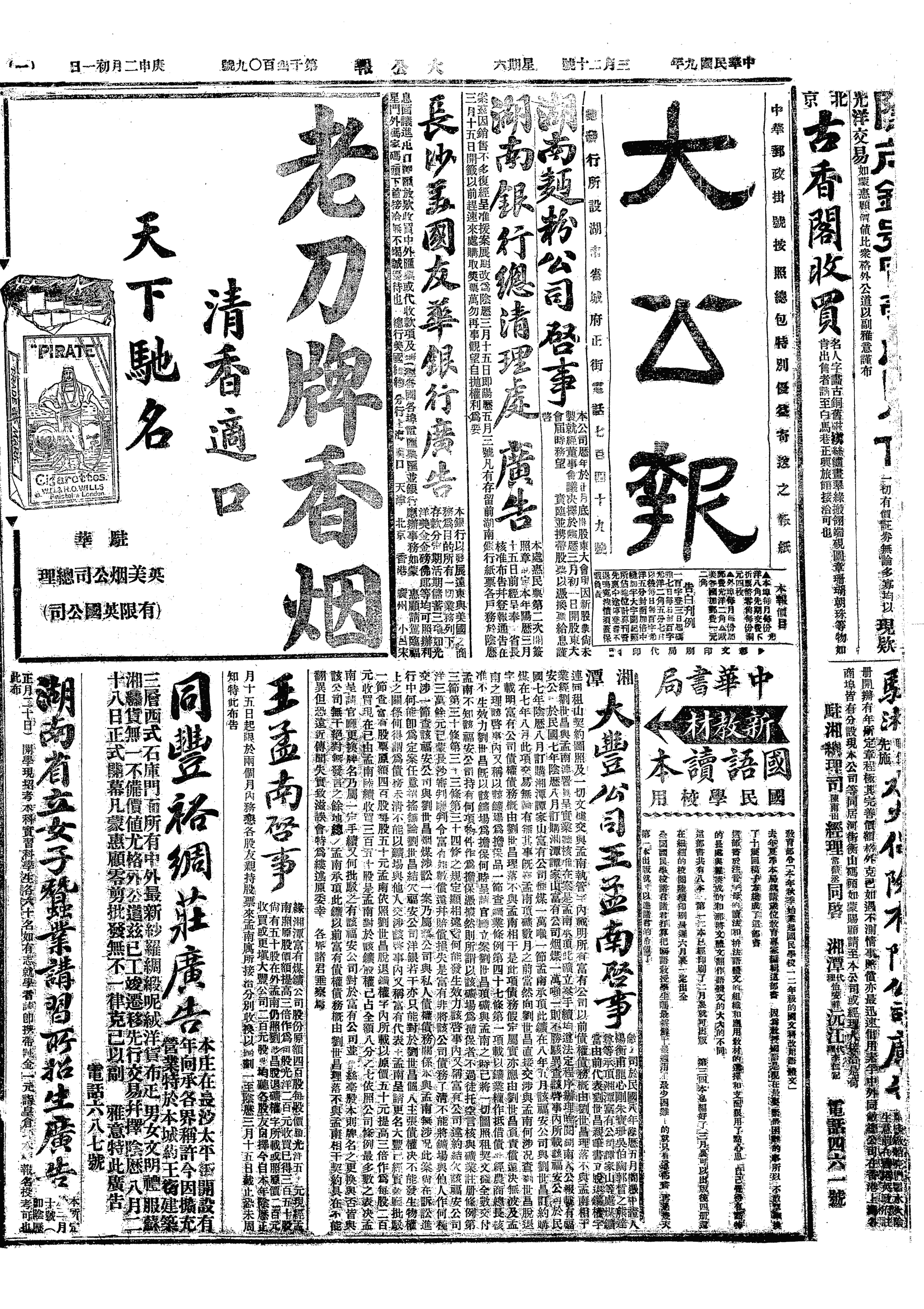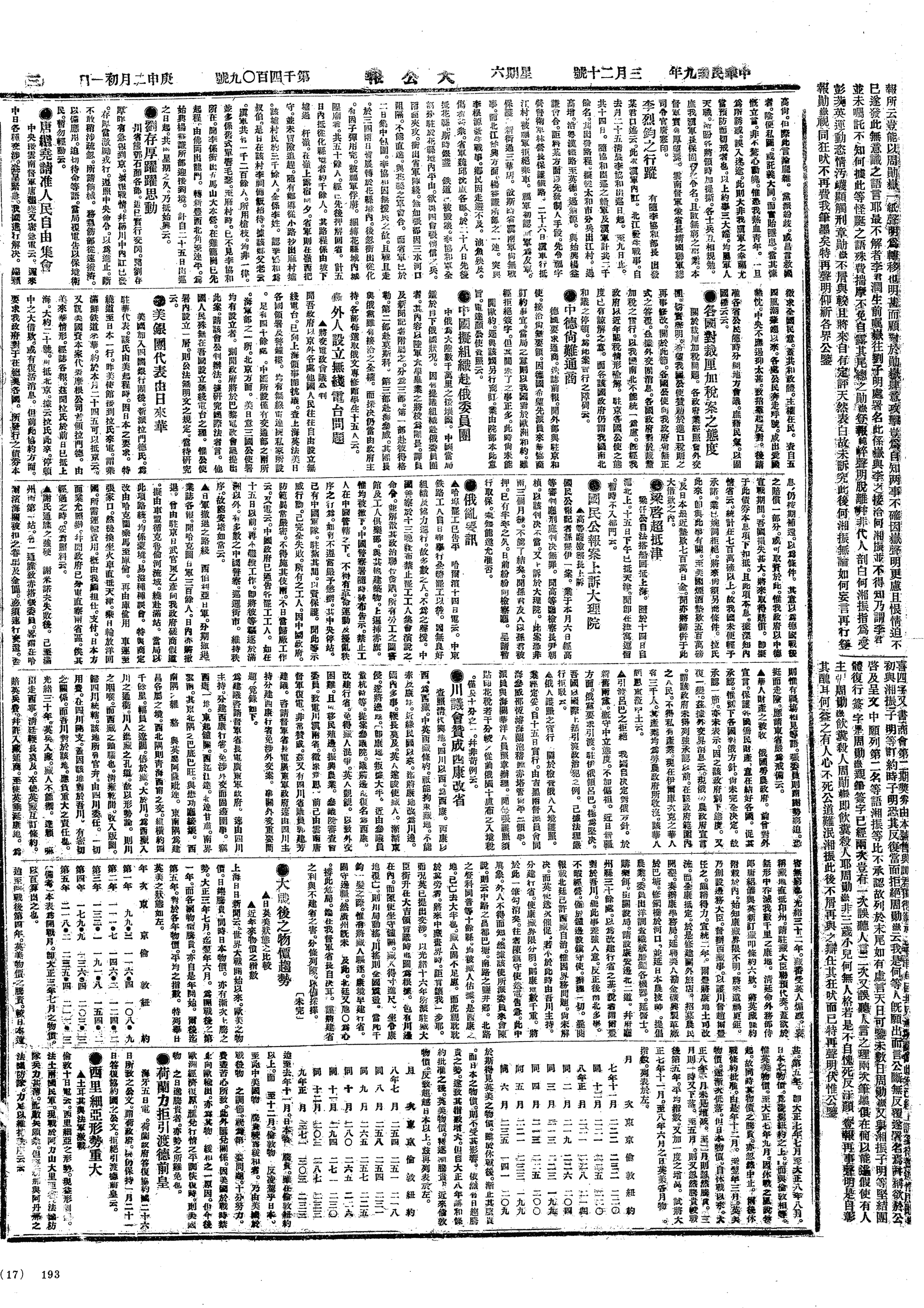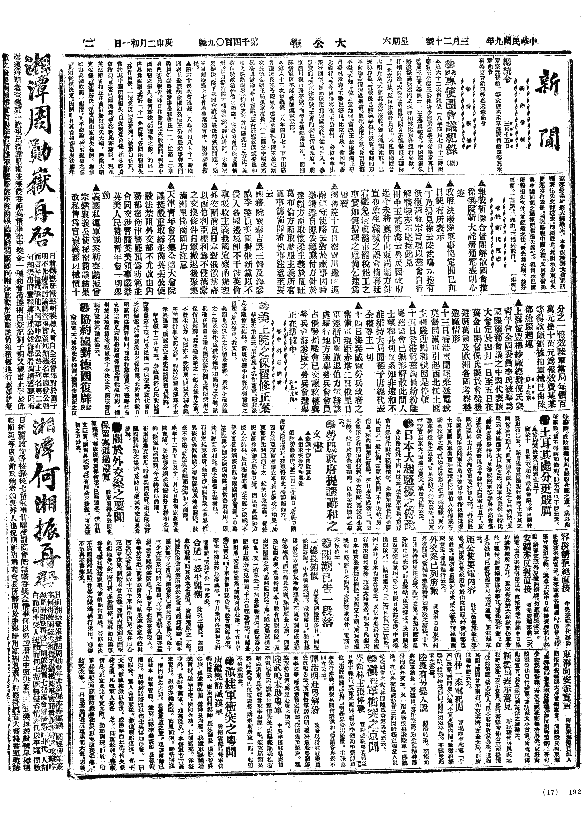 中华民国史大事记>19200320