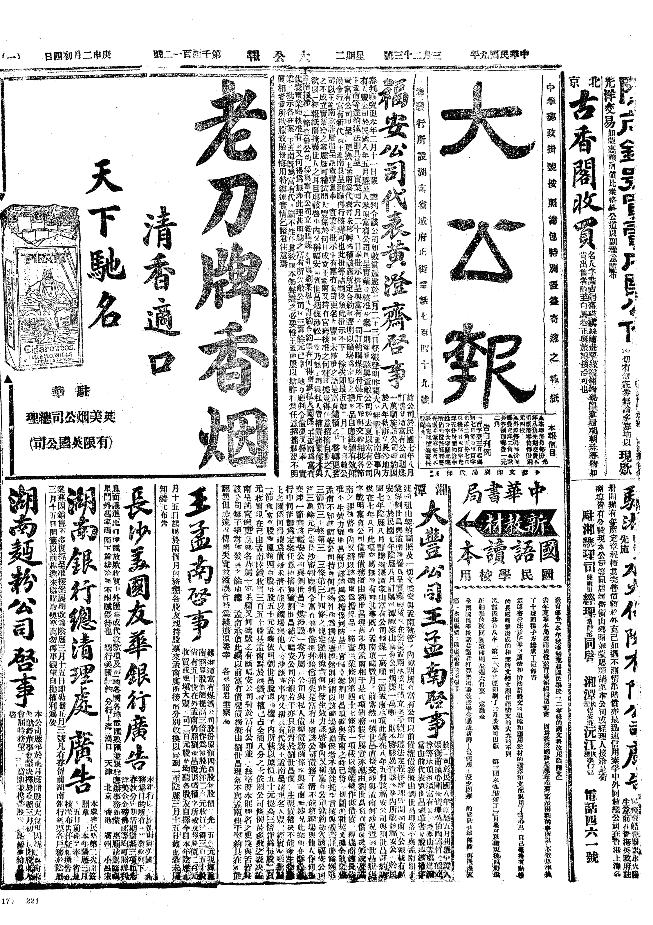 中华民国史大事记>19200323