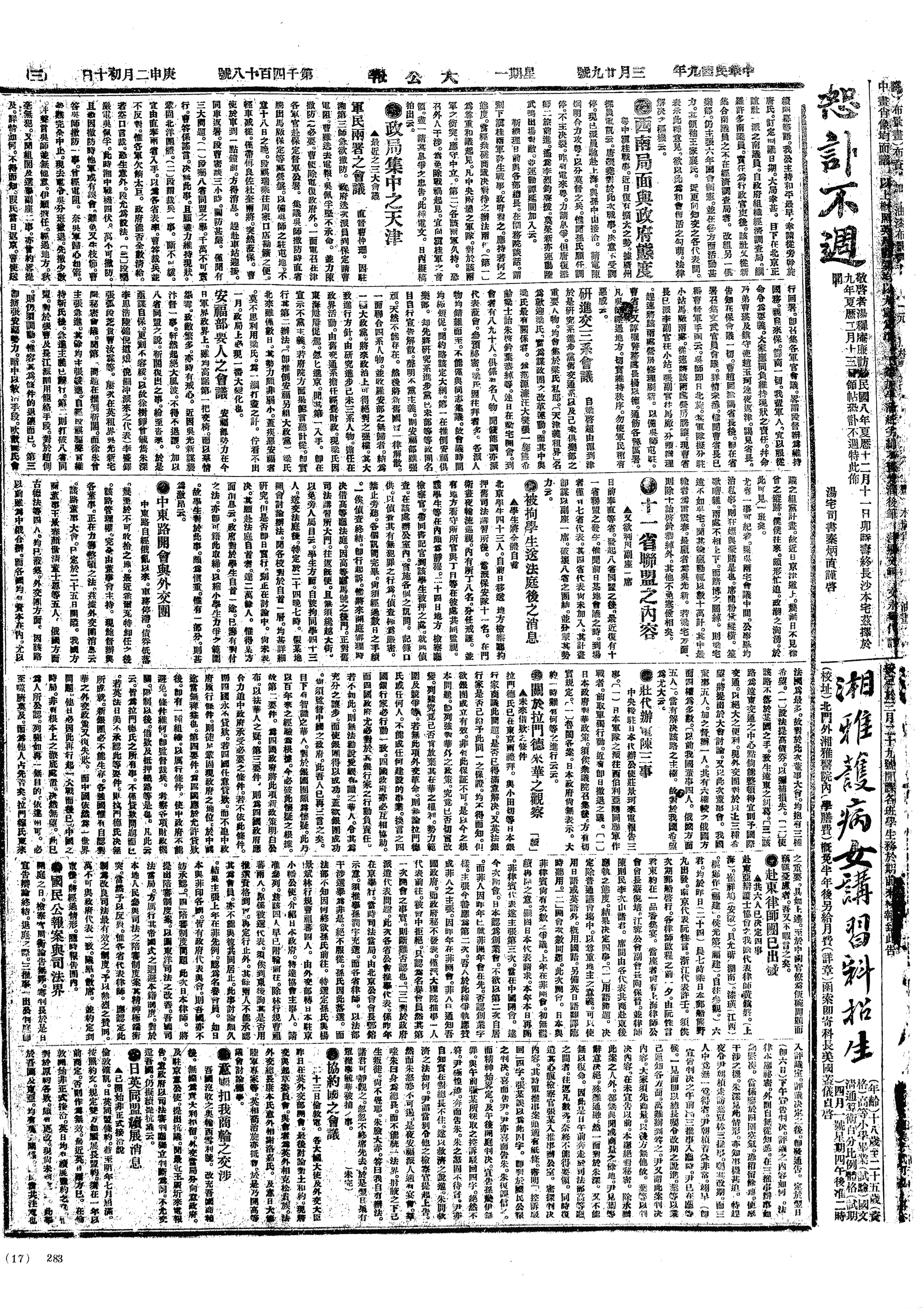 中华民国史大事记>19200329