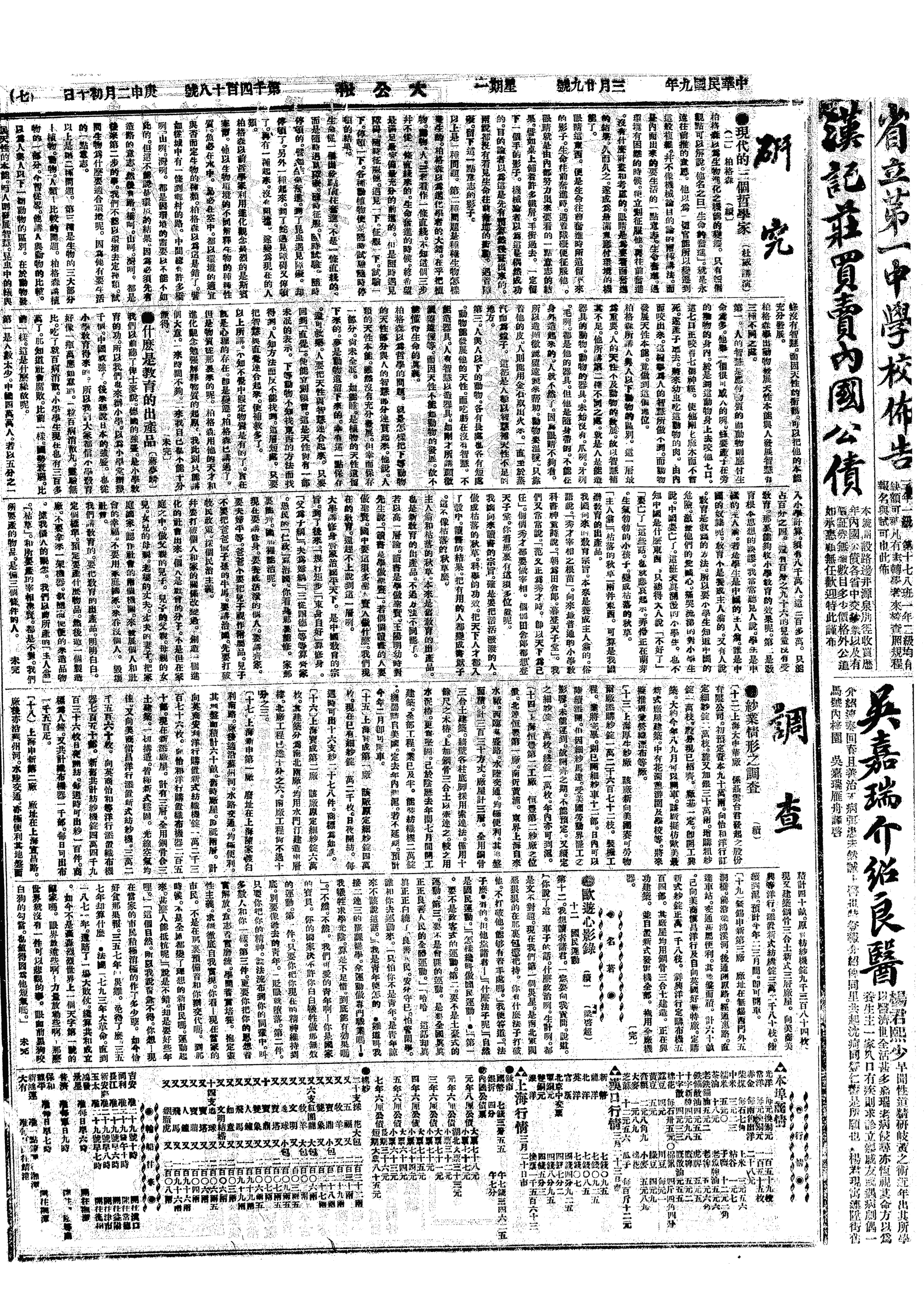 △ 暨南学校校长赵正平等发起在上海创设商科大学,是日开会讨论进行方法,推黄炎培为筹备处主任。