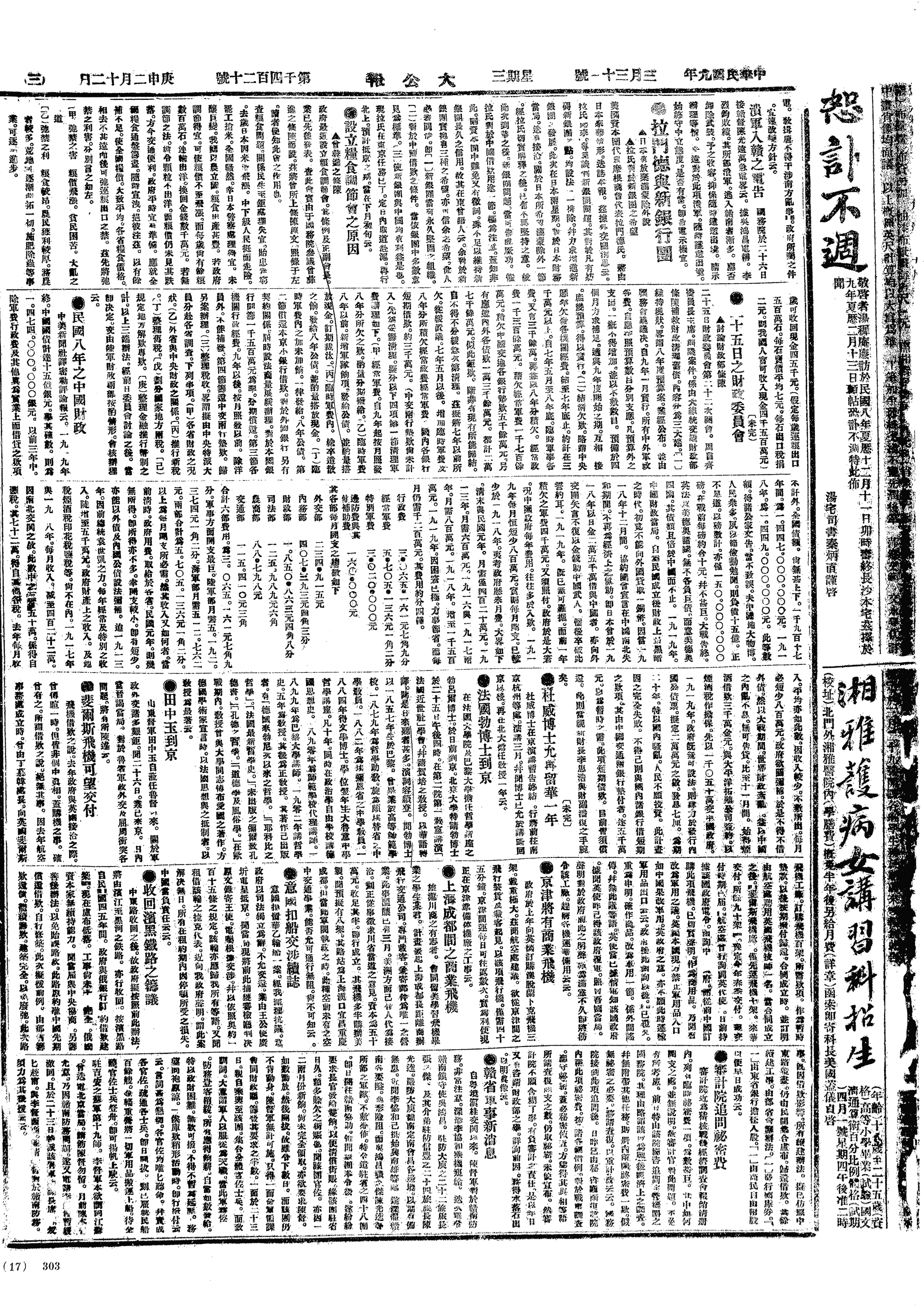 中华民国史大事记>19200331
