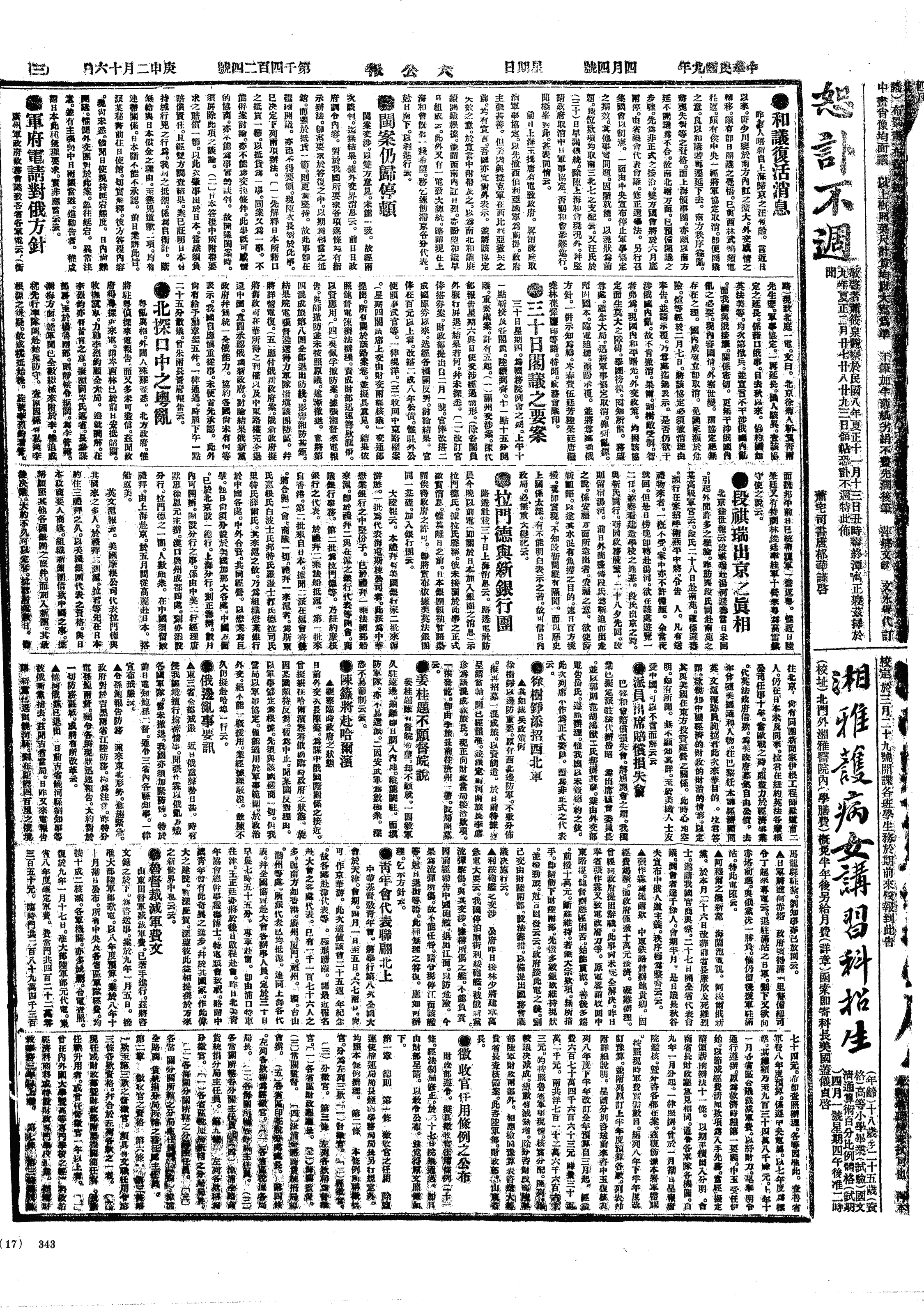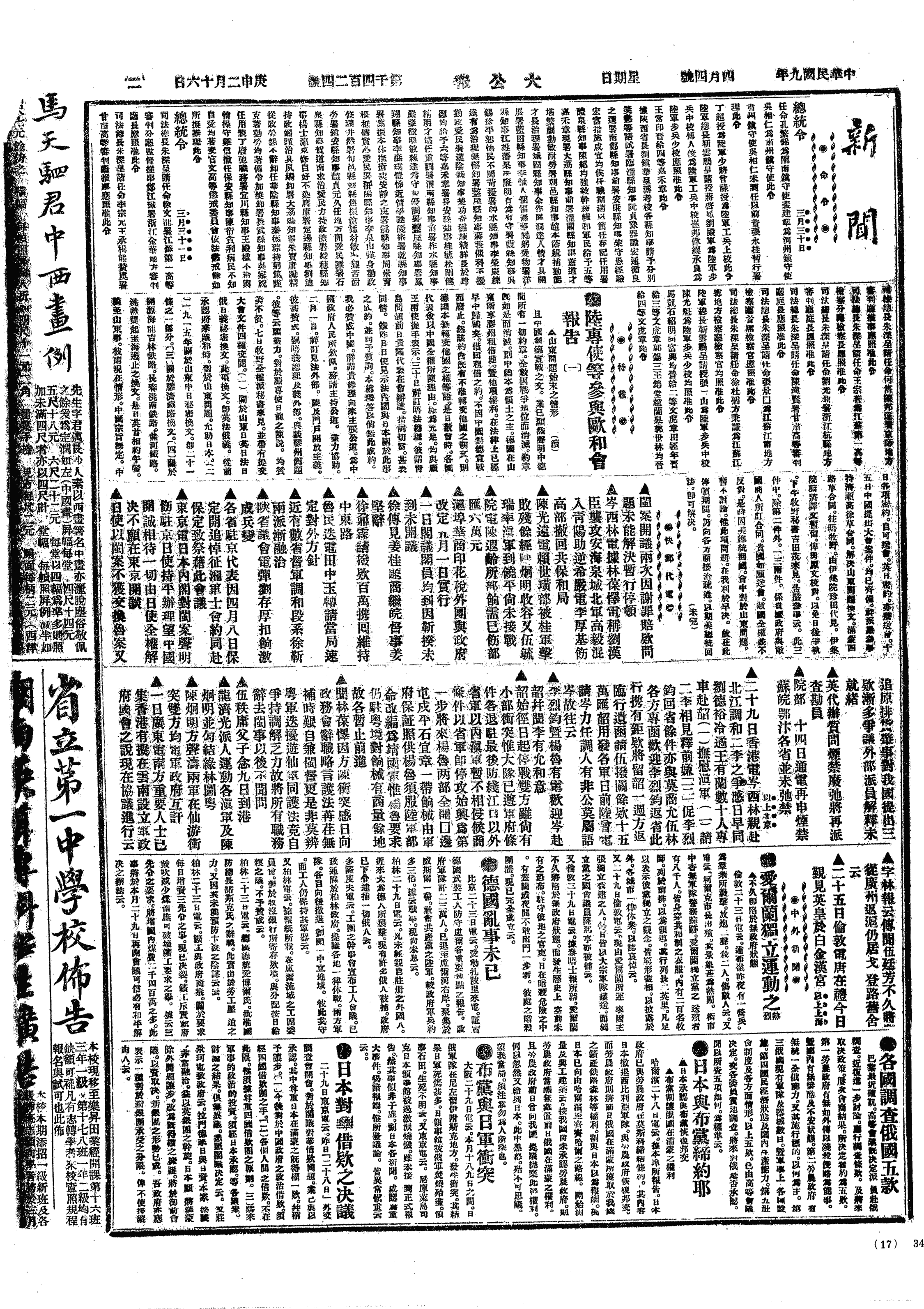 中华民国史大事记>19200404
