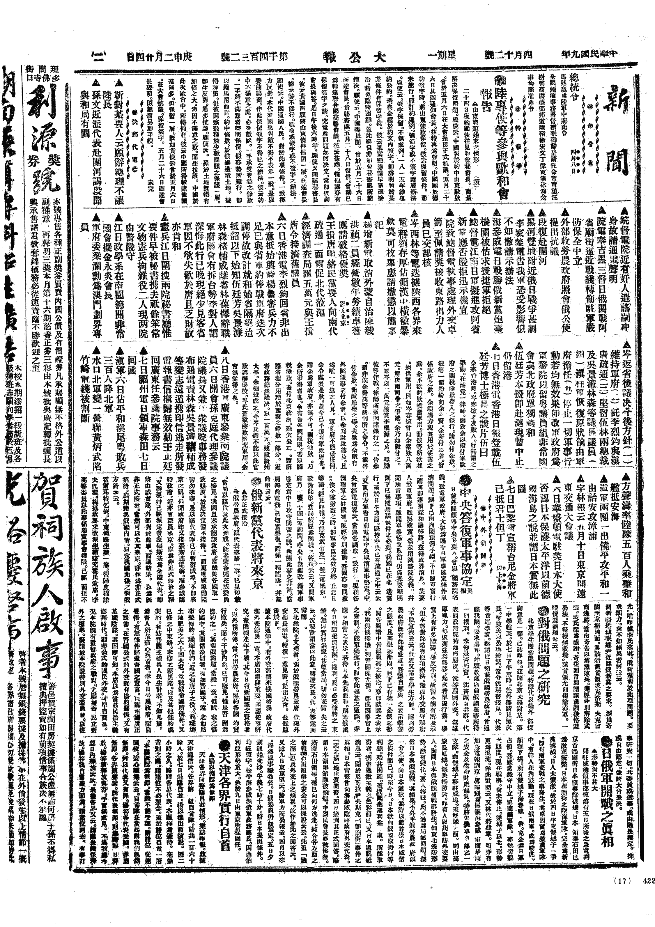 中华民国史大事记>19200412