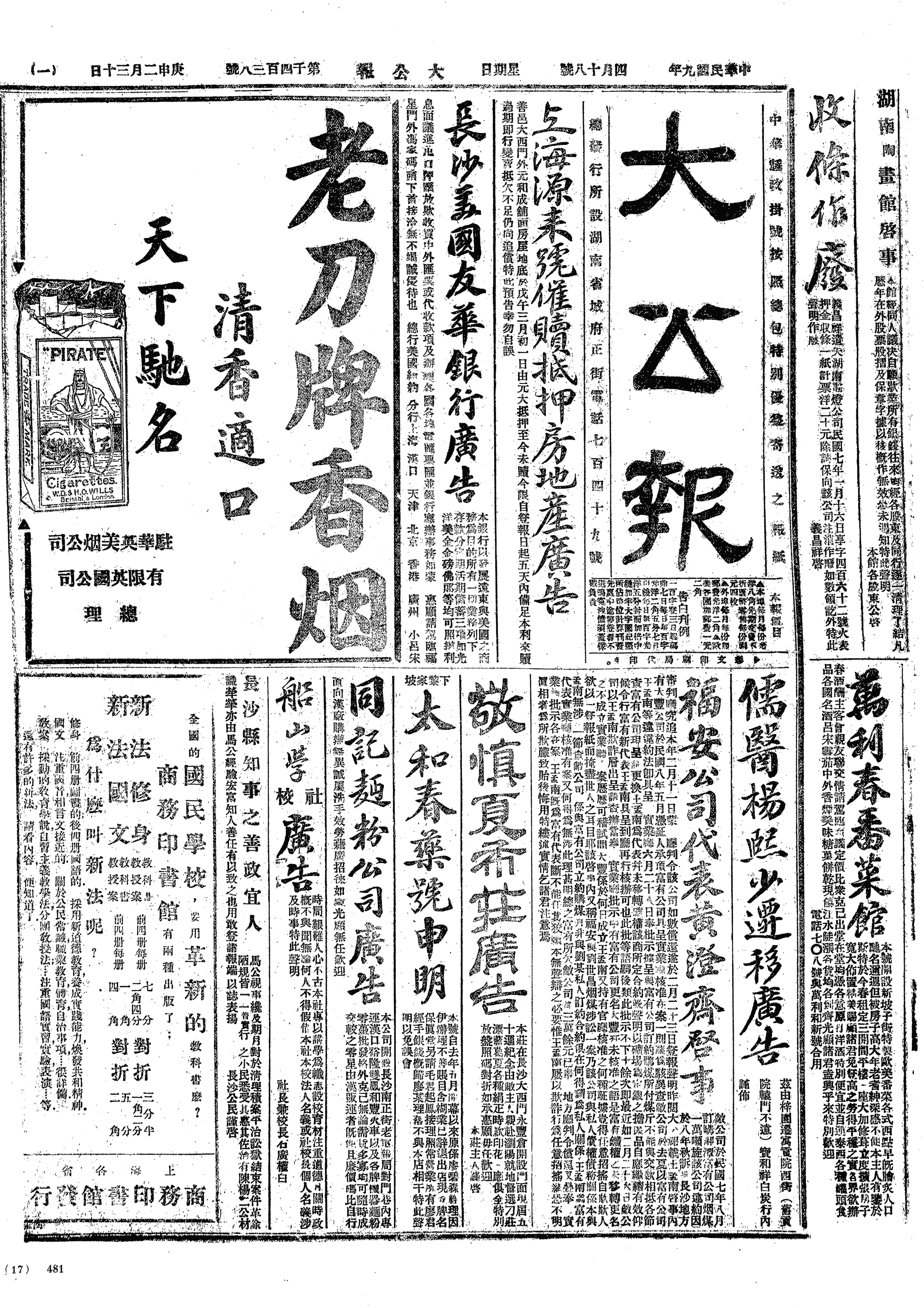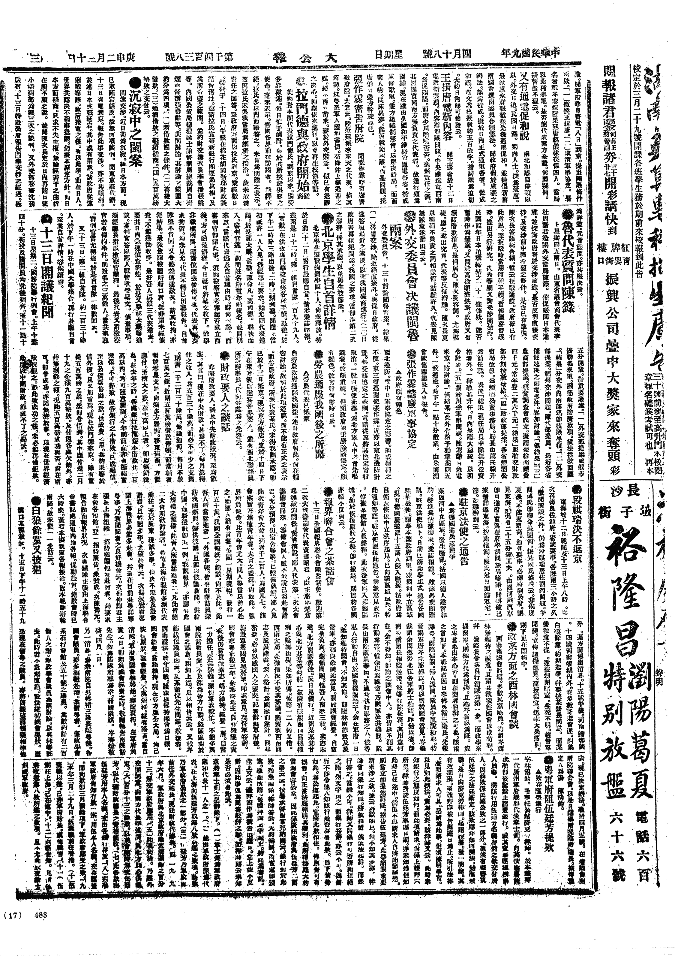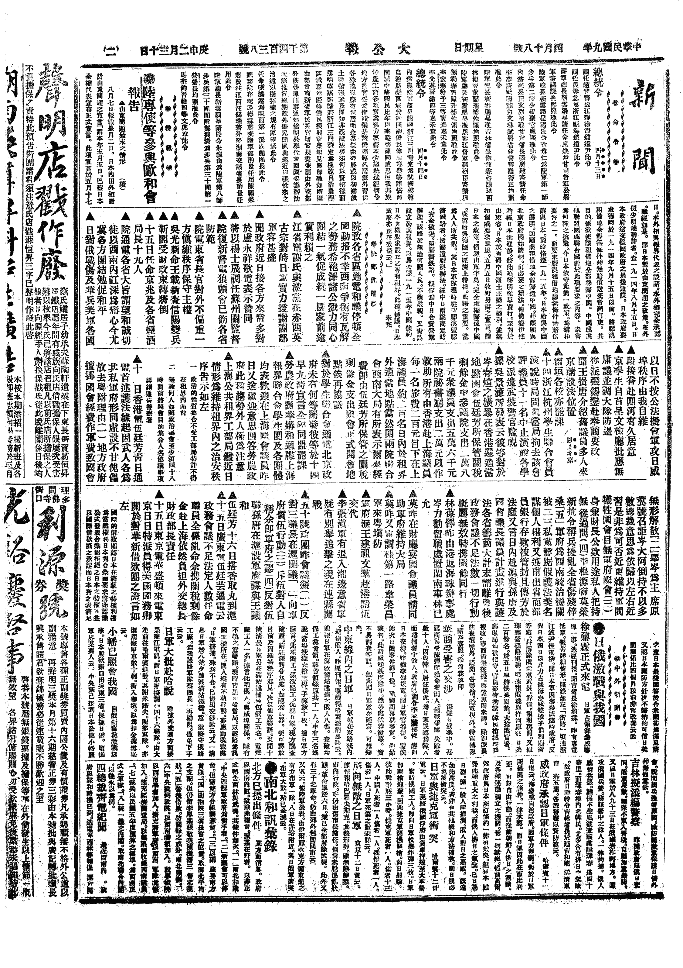 中华民国史大事记>19200418