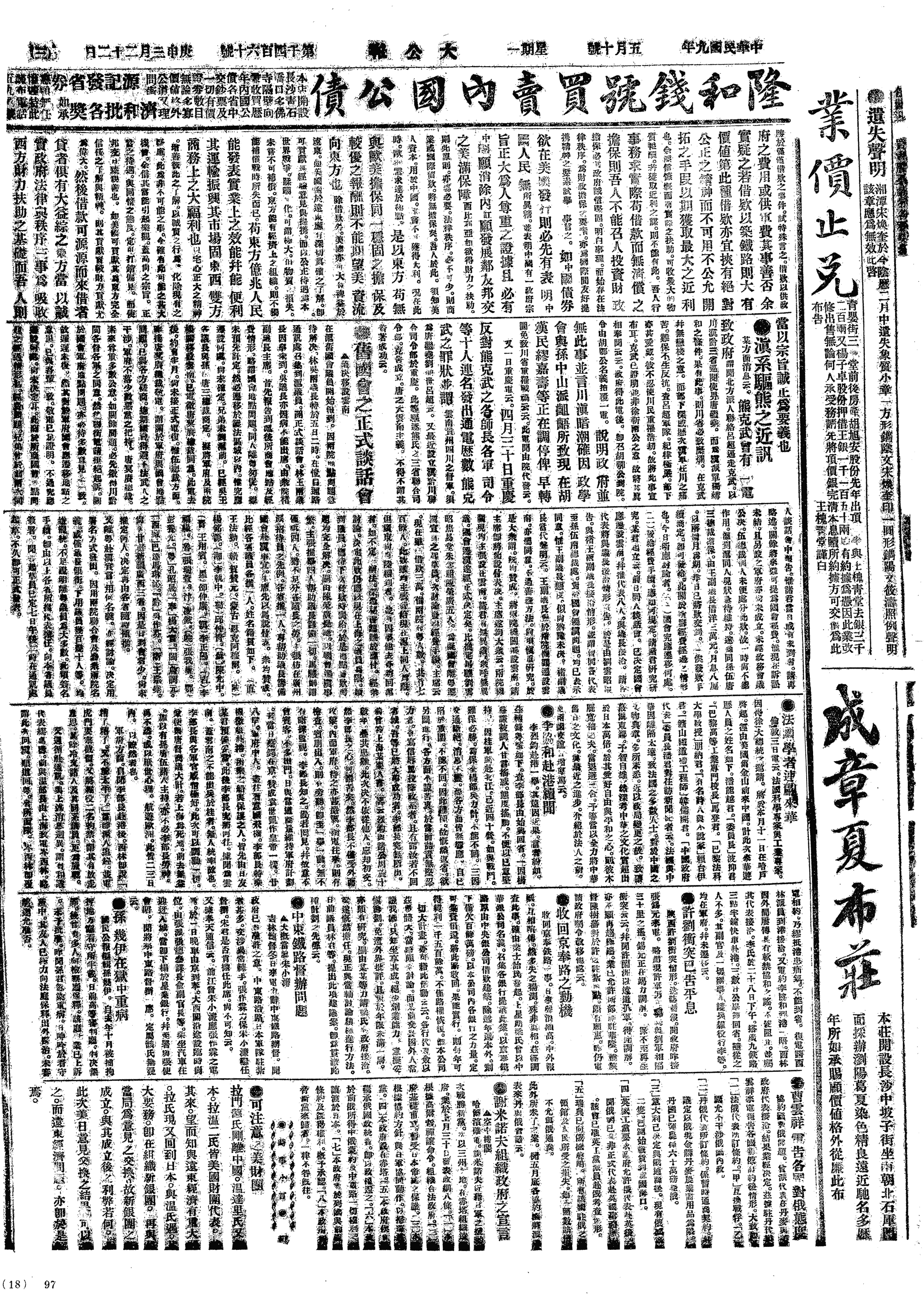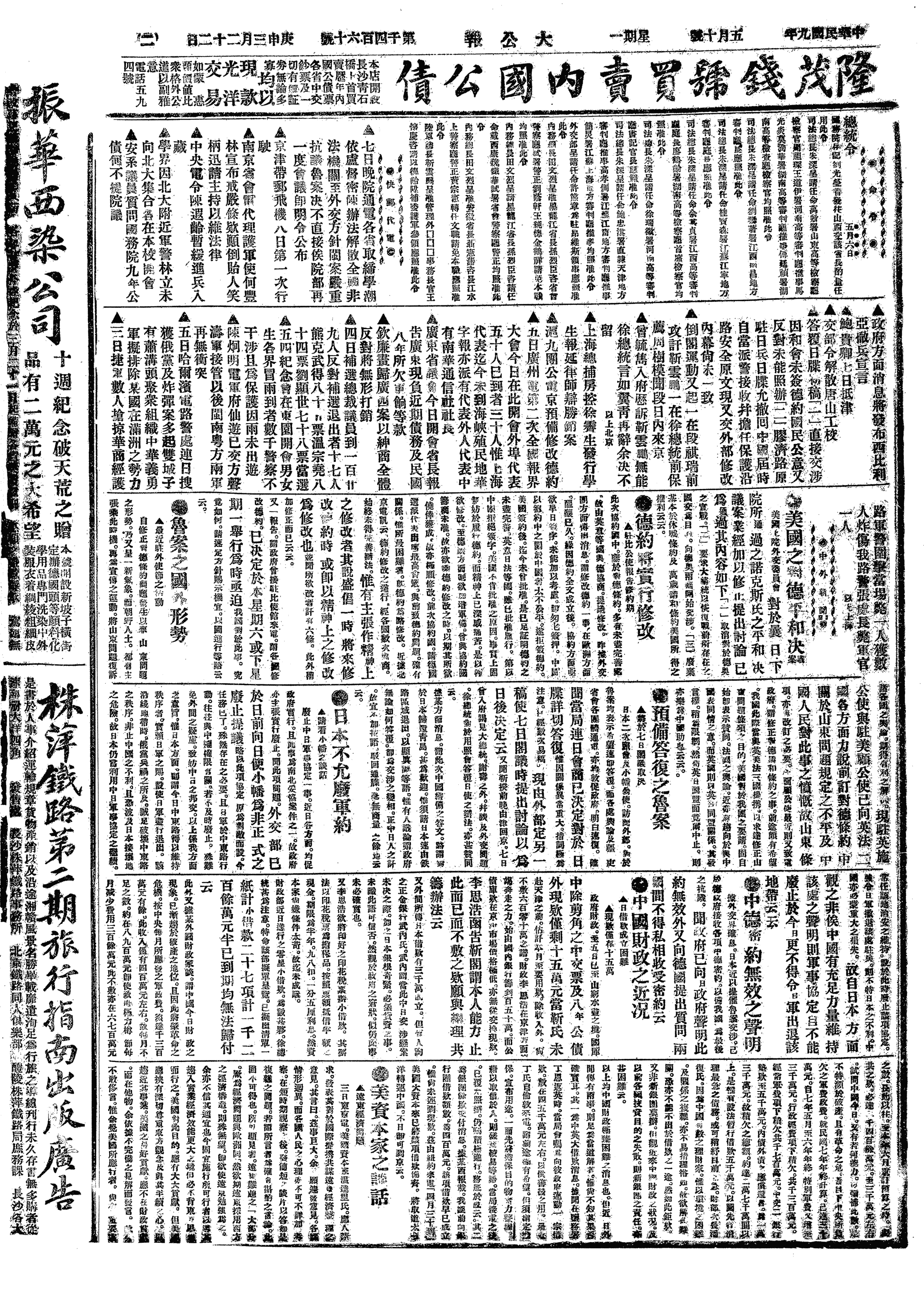 中华民国史大事记>19200510