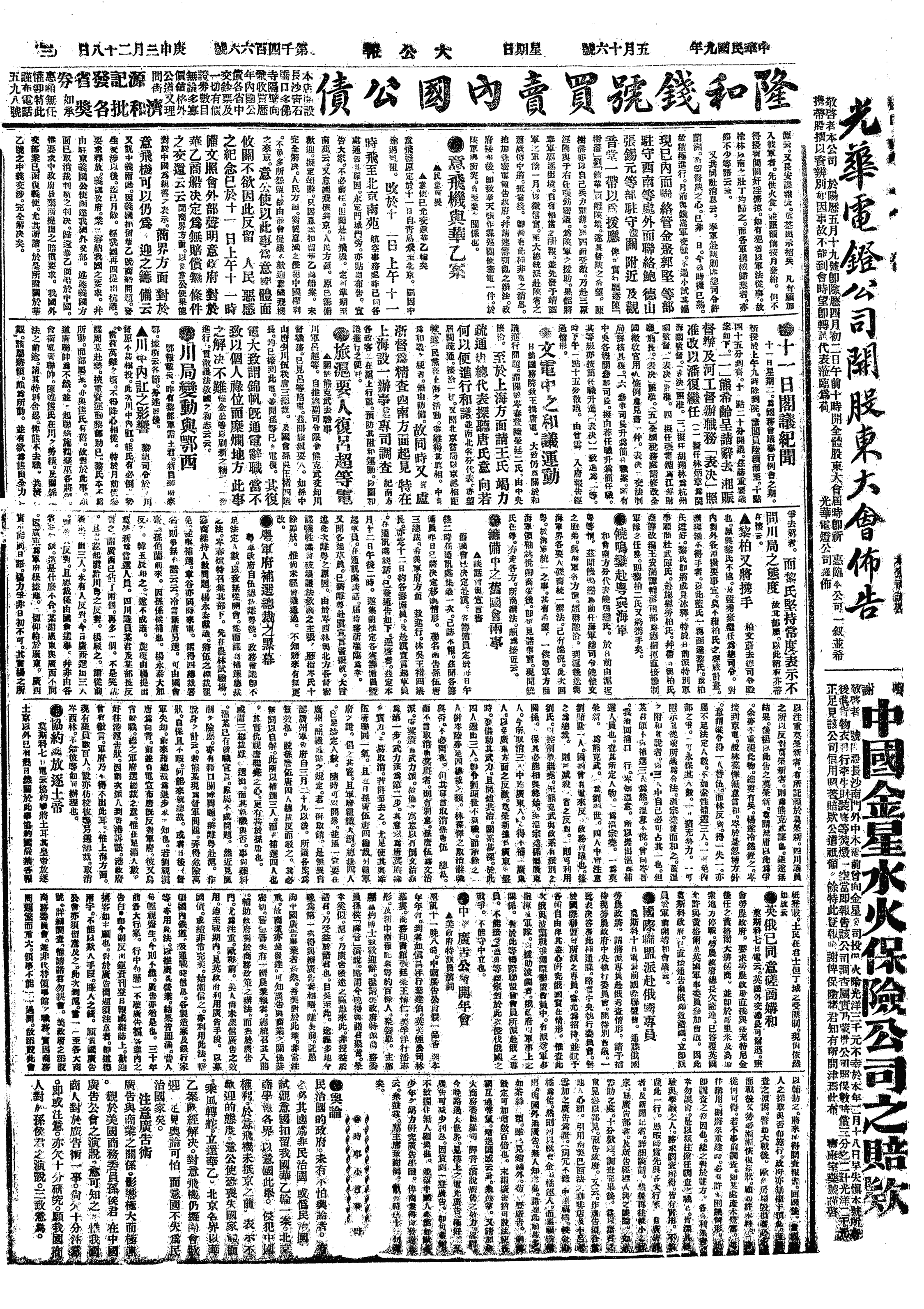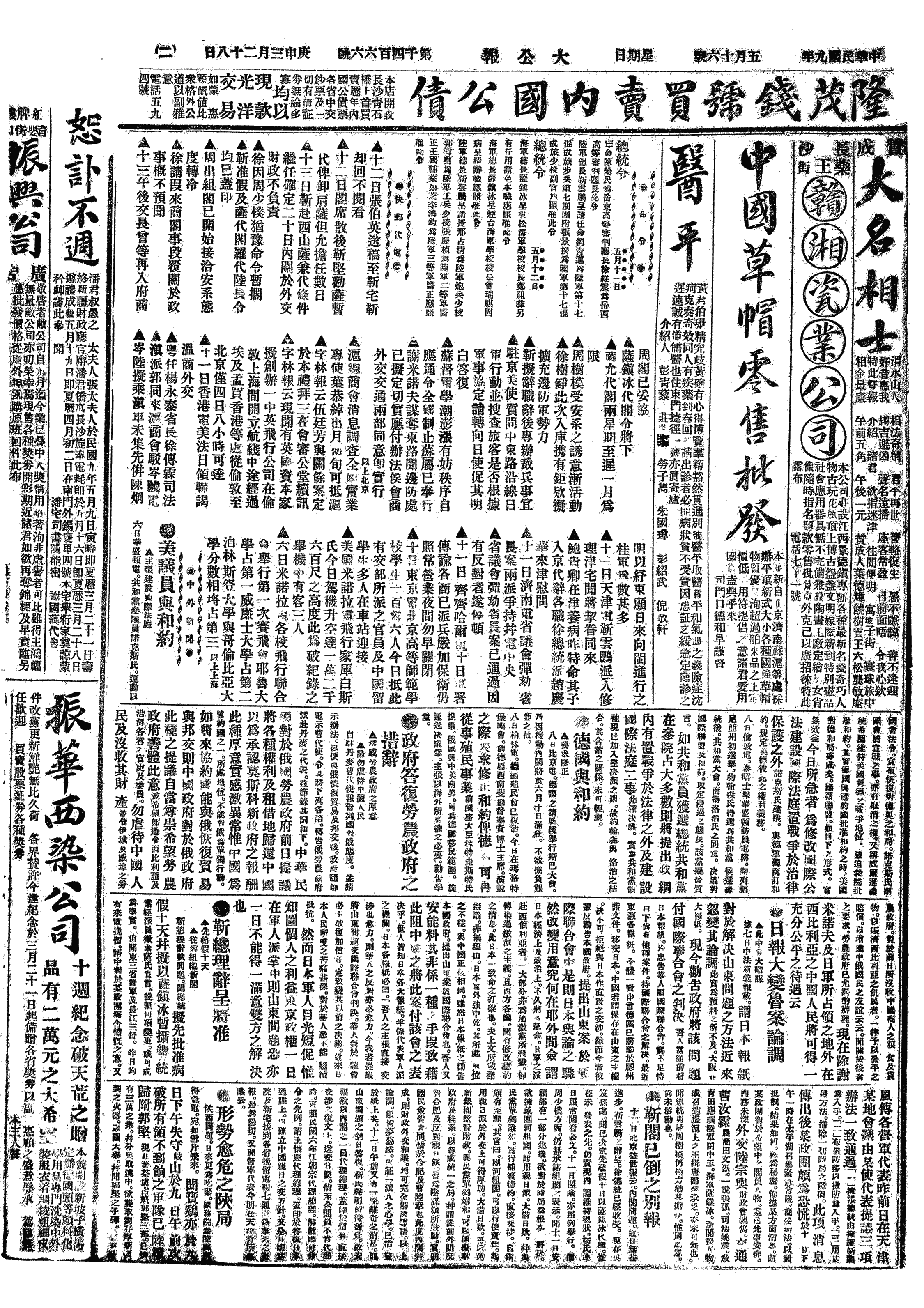 中华民国史大事记>19200516