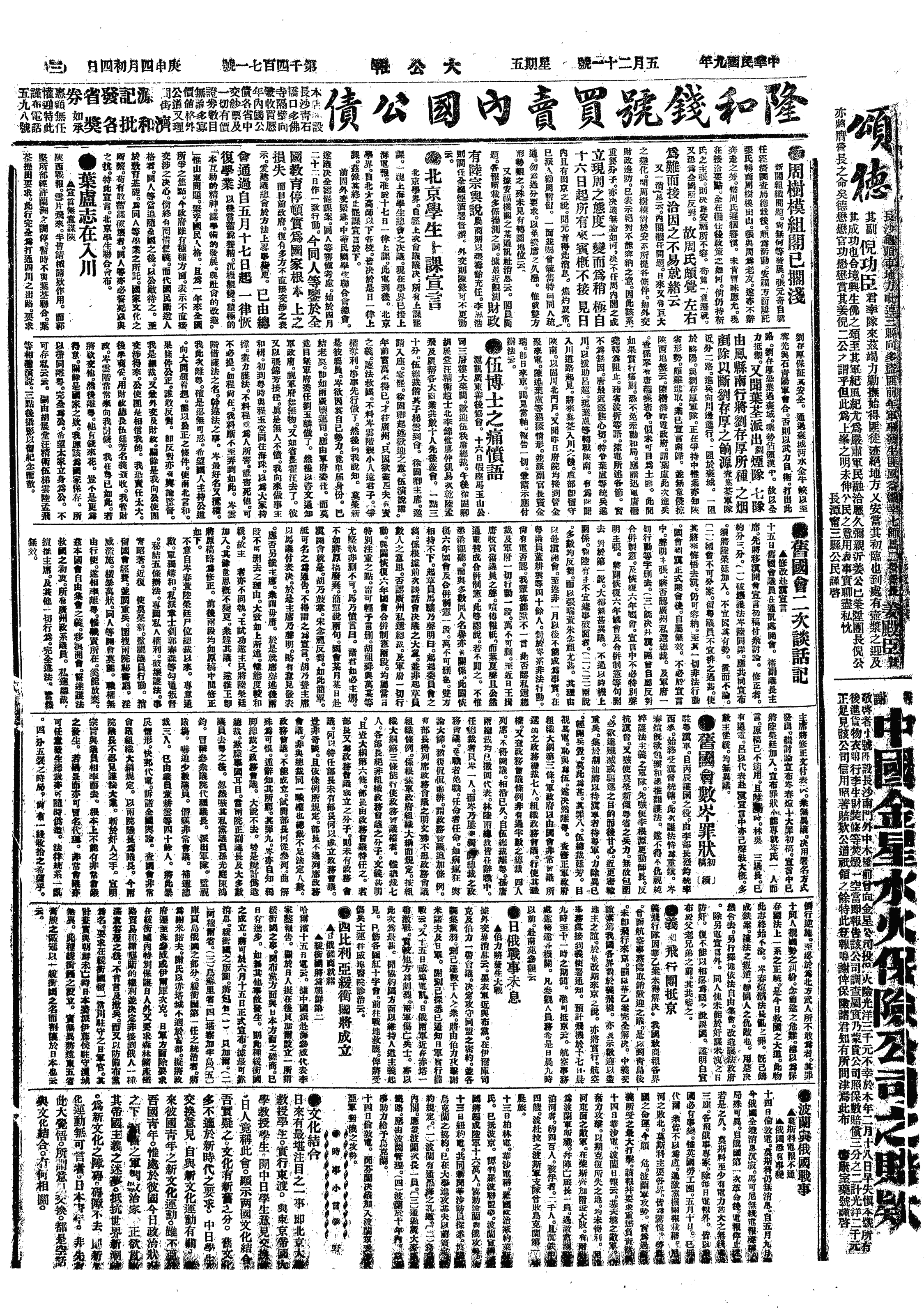 中华民国史大事记>19200521