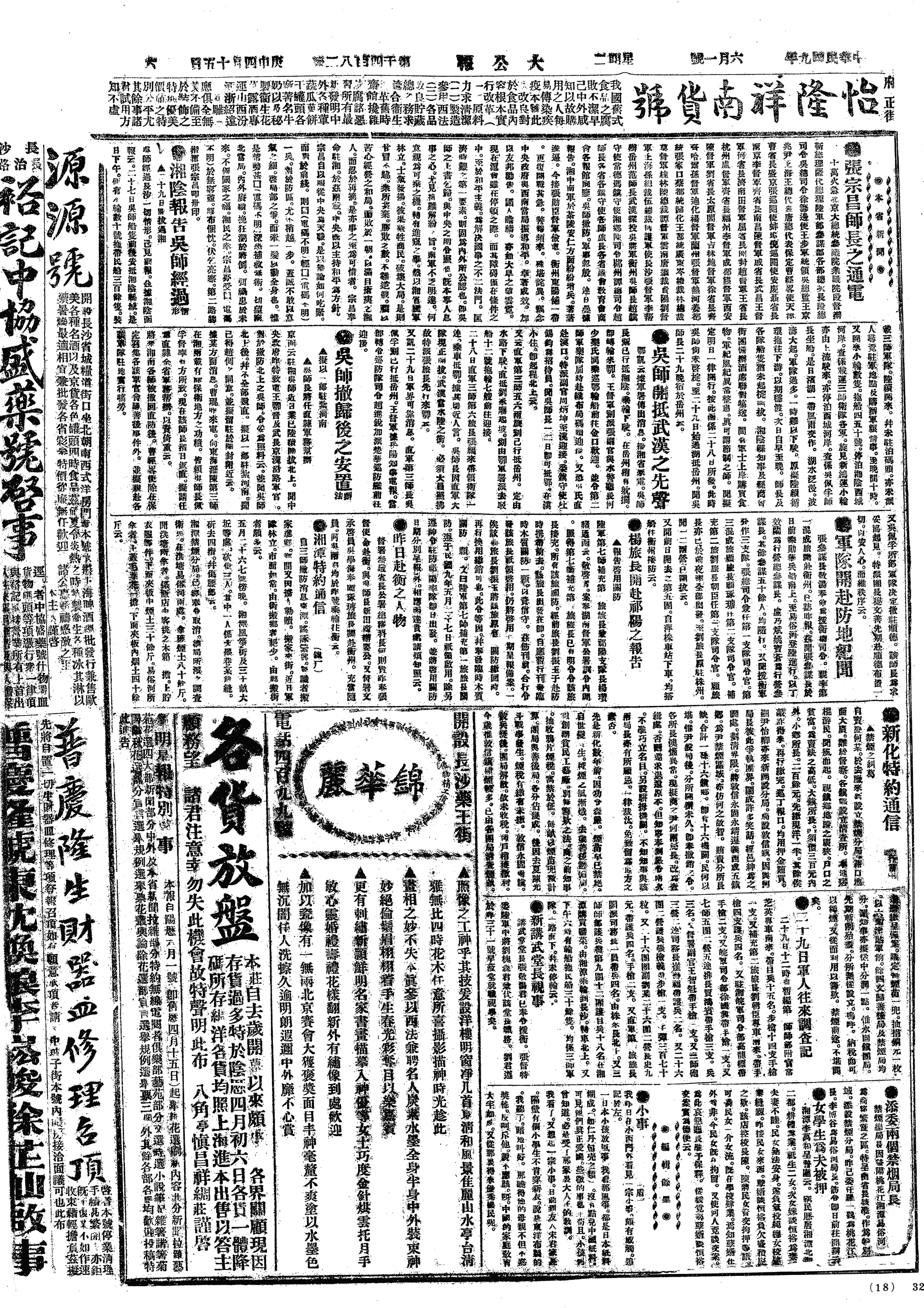 中华民国史大事记>19200601