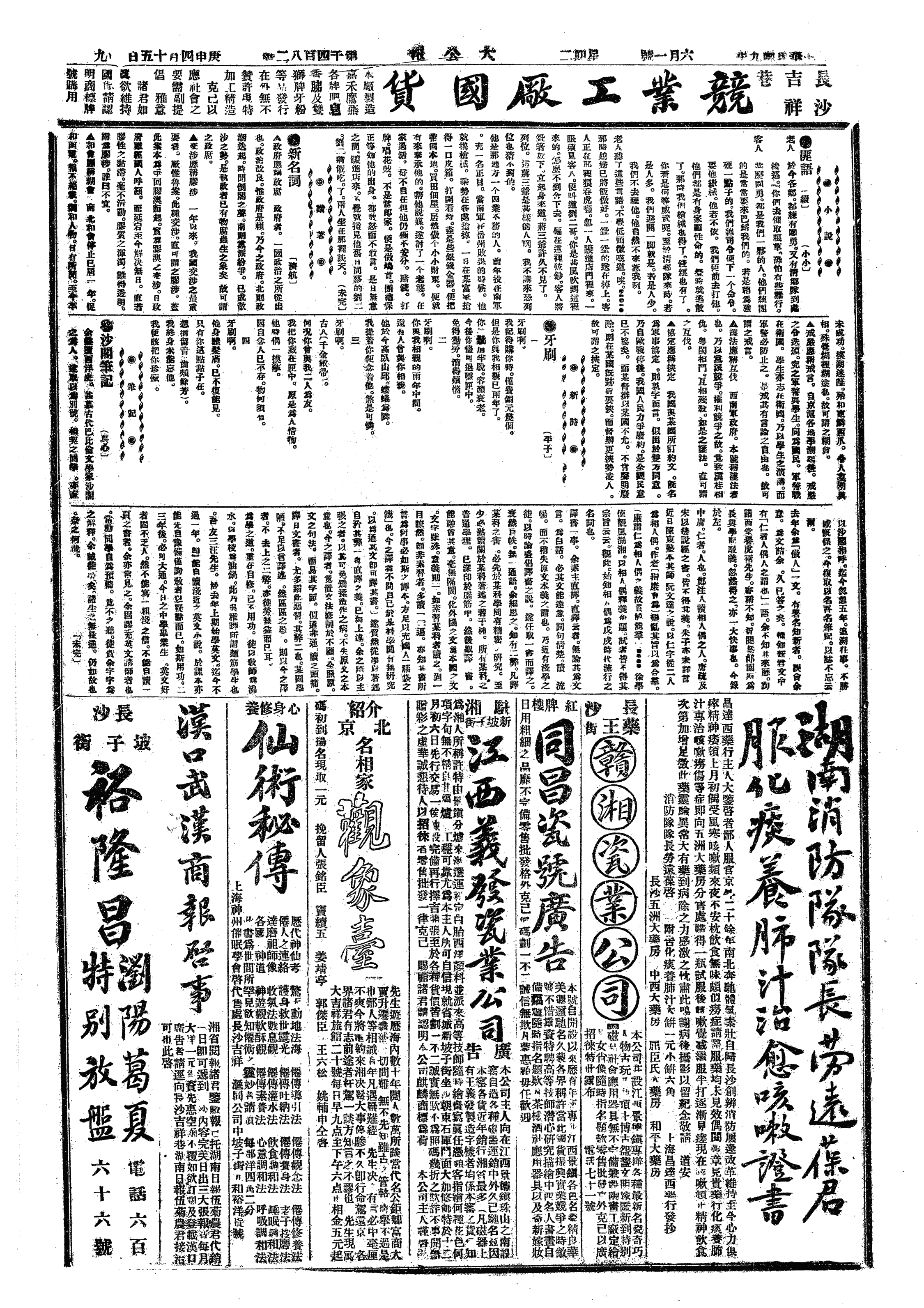 △ 江西督军陈光远因湘省发生战事,与赣有唇齿关系,是日宣布实行戒严,无论何种军队,不许进入赣省。