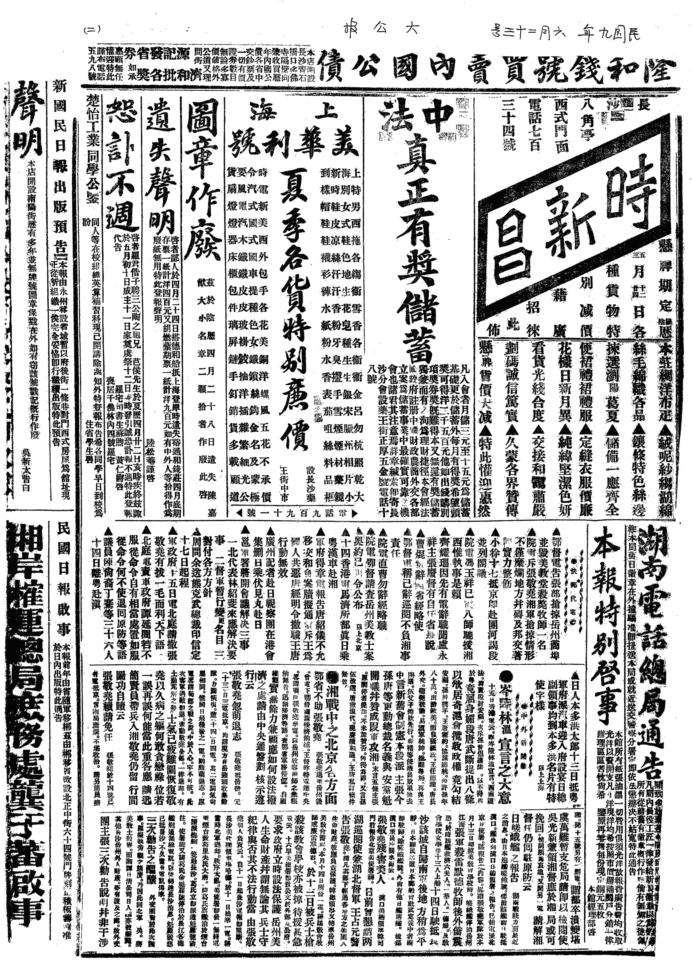 中华民国史大事记>19200623