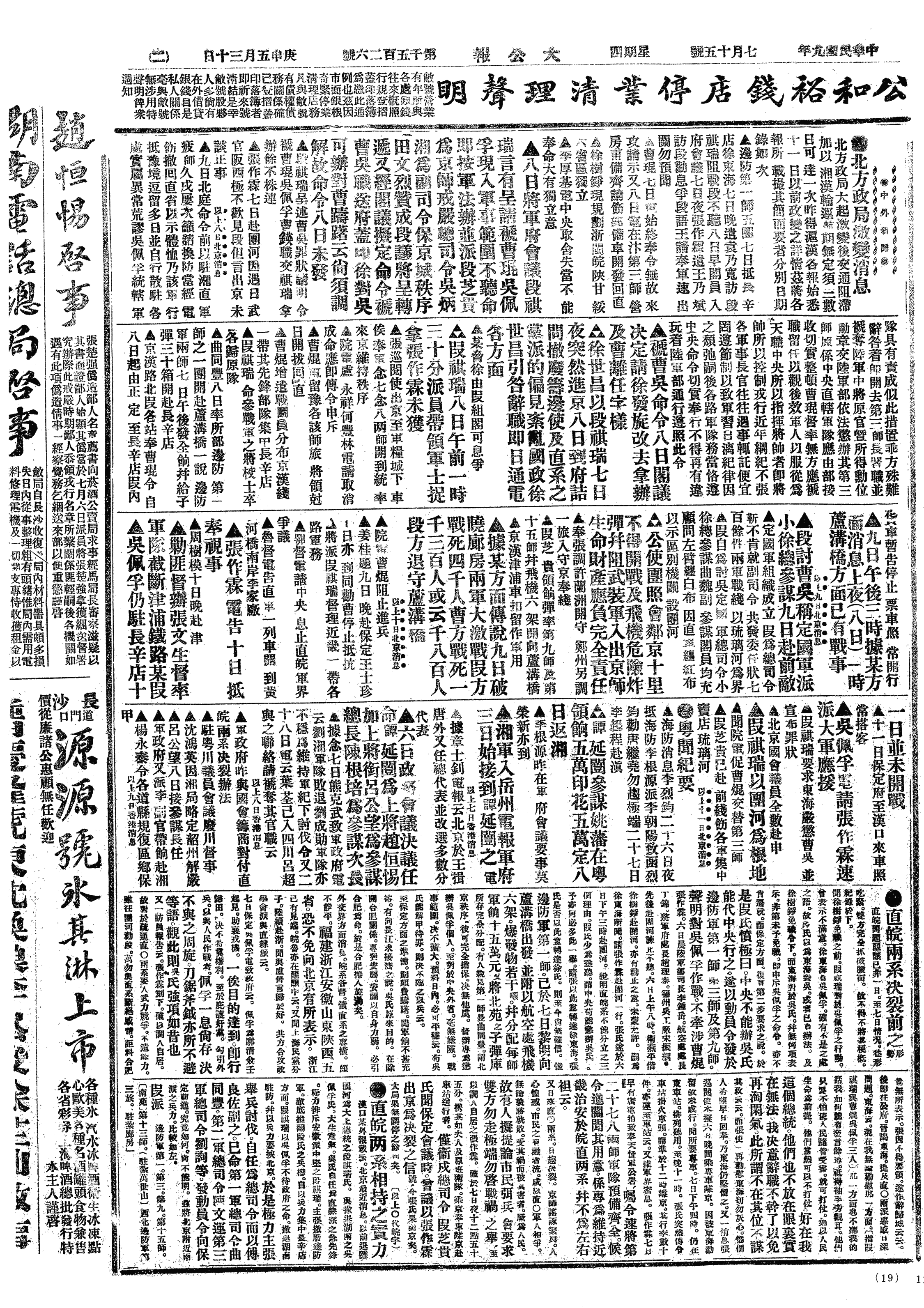 中华民国史大事记>19200715