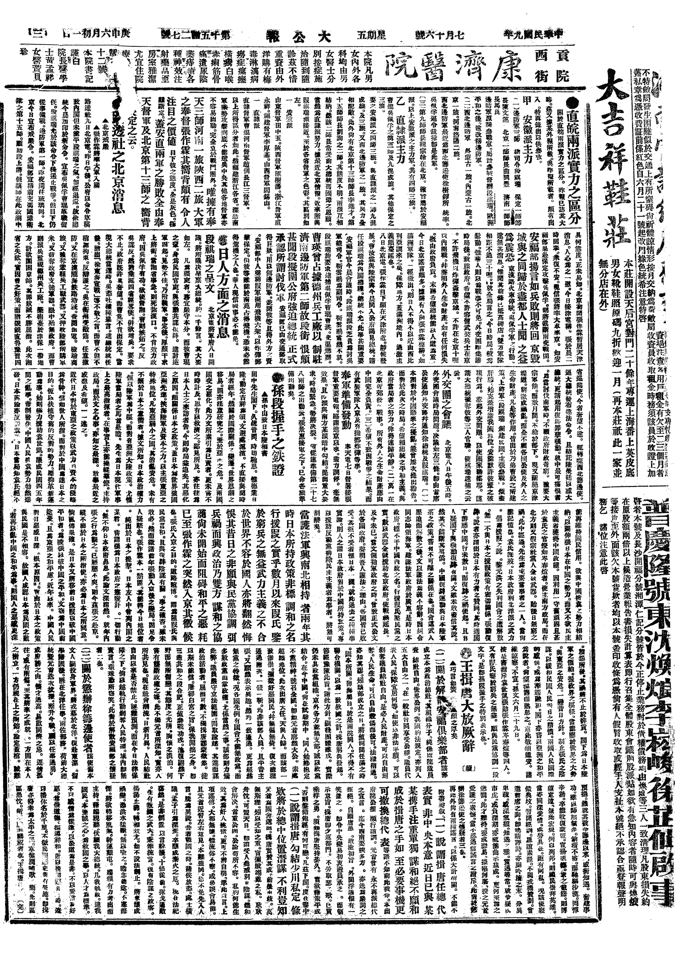 中华民国史大事记>19200716