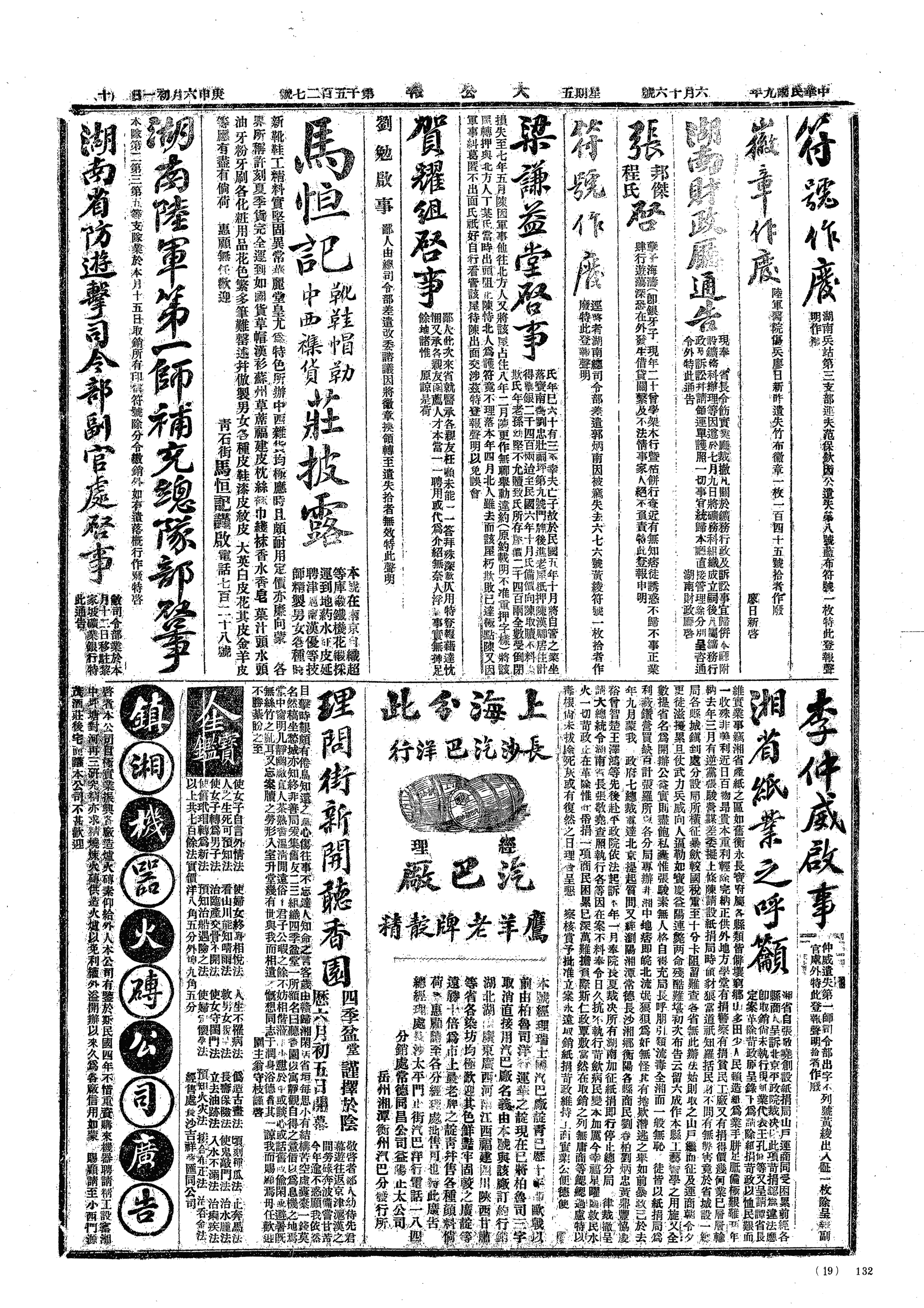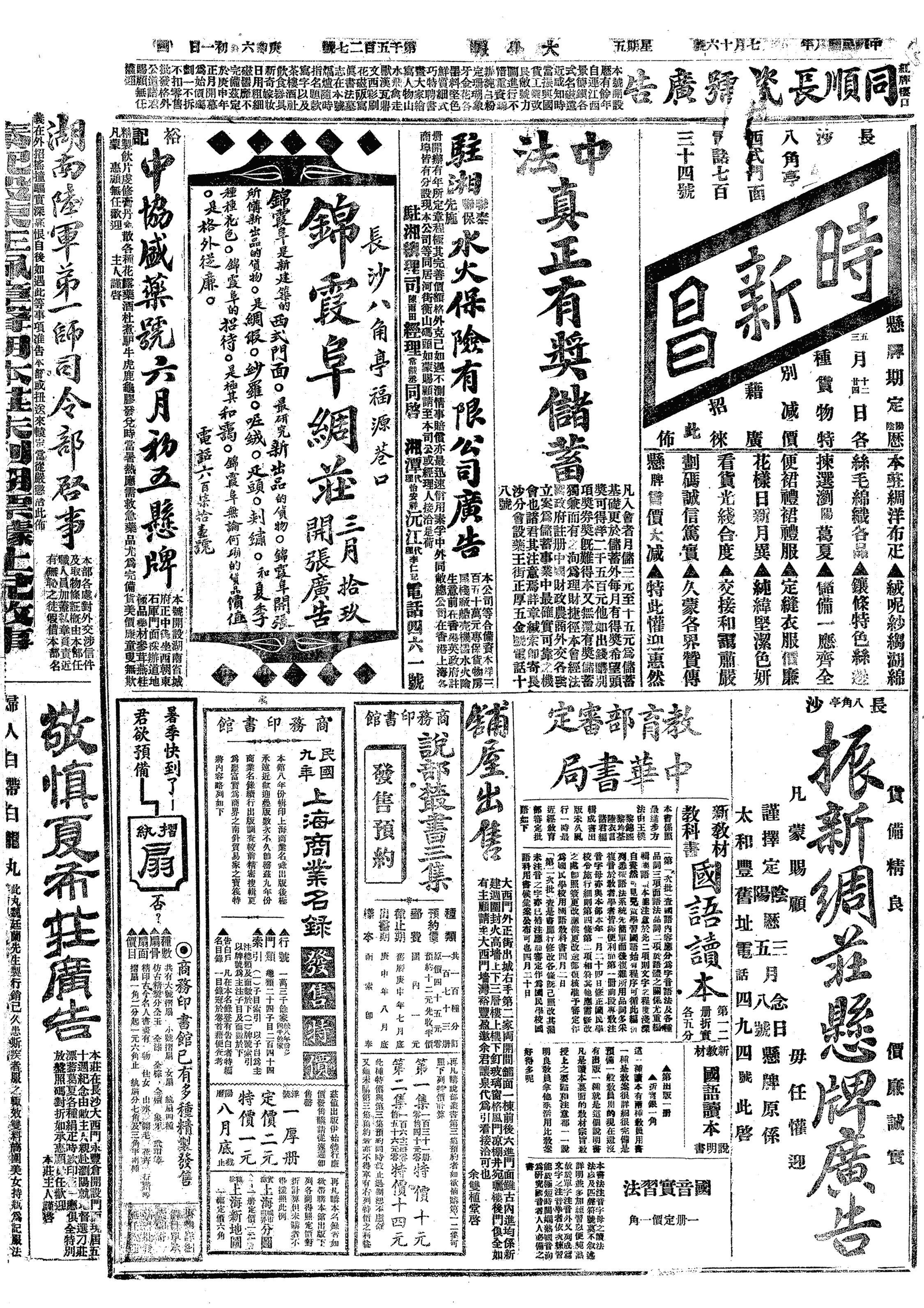 △ 长江上游总司令、新任湖南督军吴光新在武昌湖北省署被王占元扣留,其驻扎汉口卫队千余人亦被缴械。
