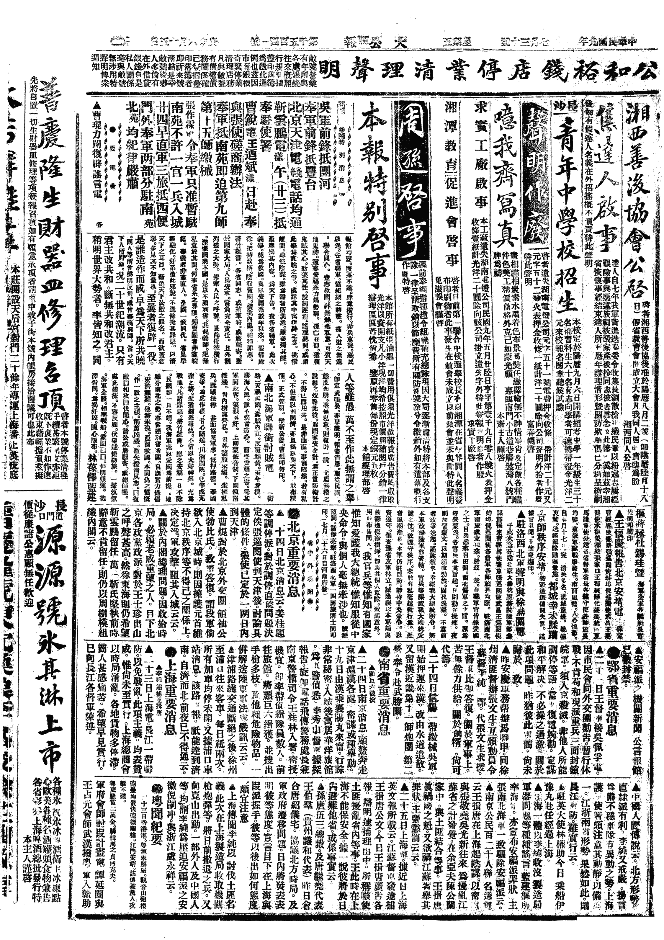 中华民国史事日志>19200730