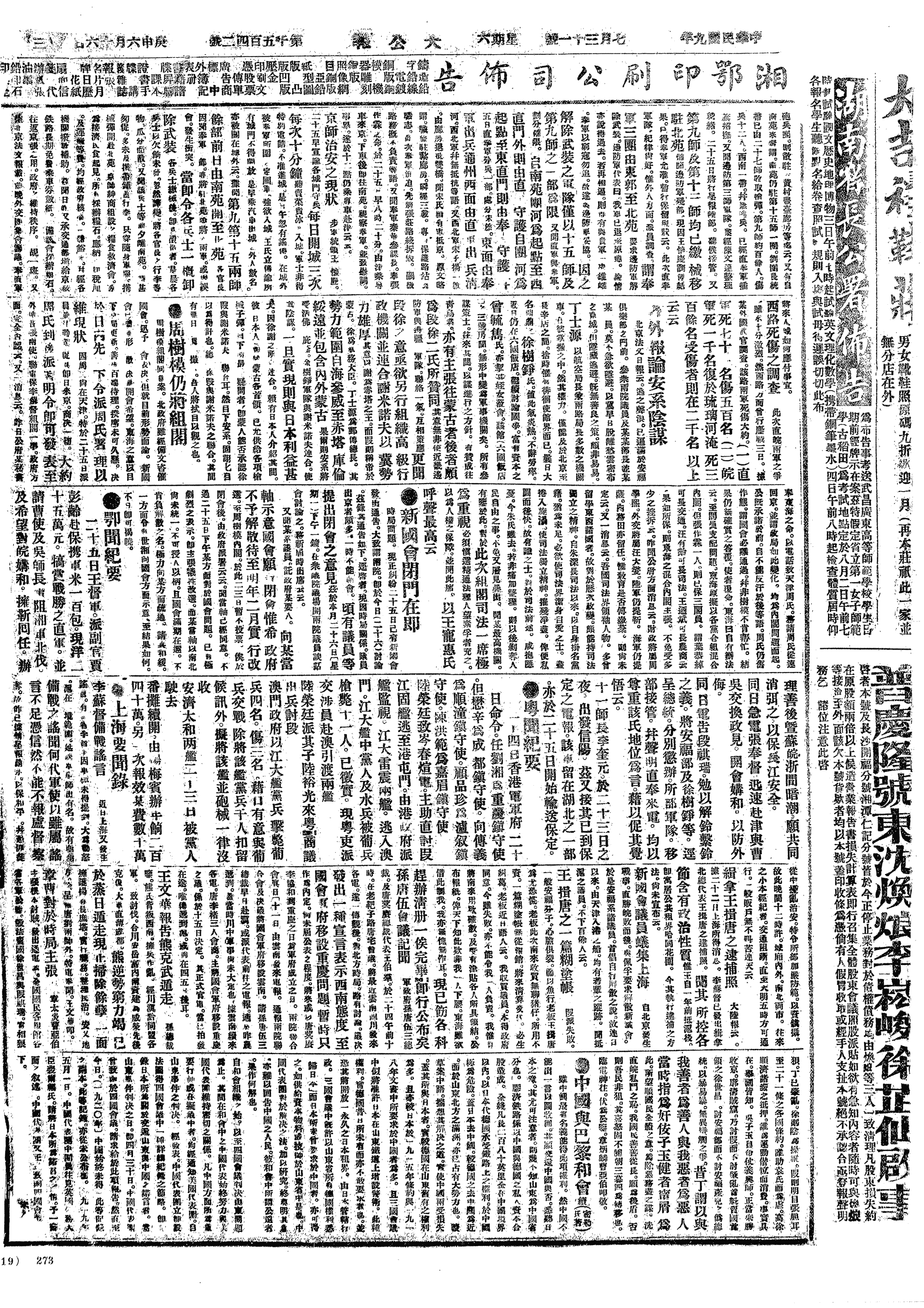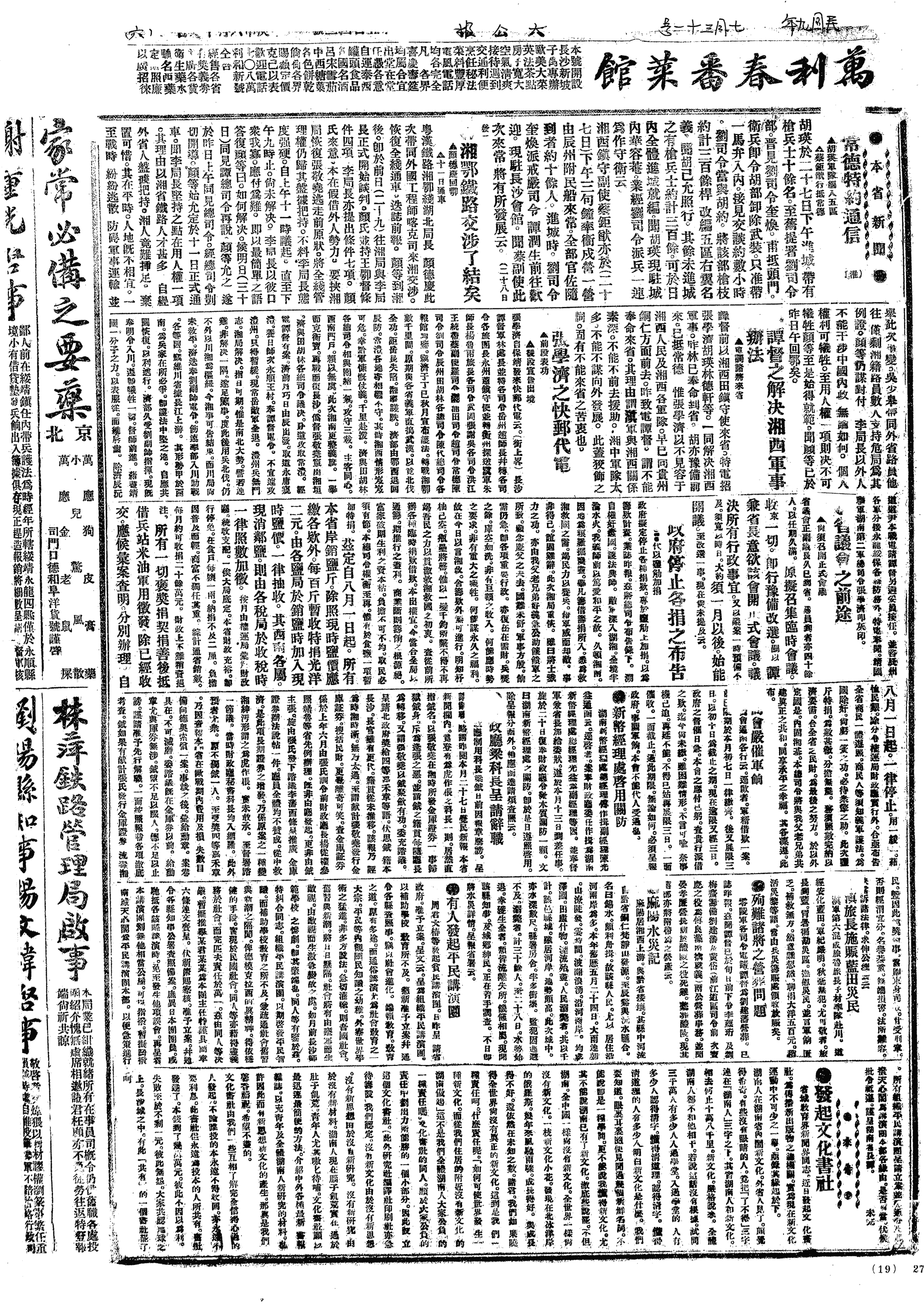 中华民国史大事记>19200731