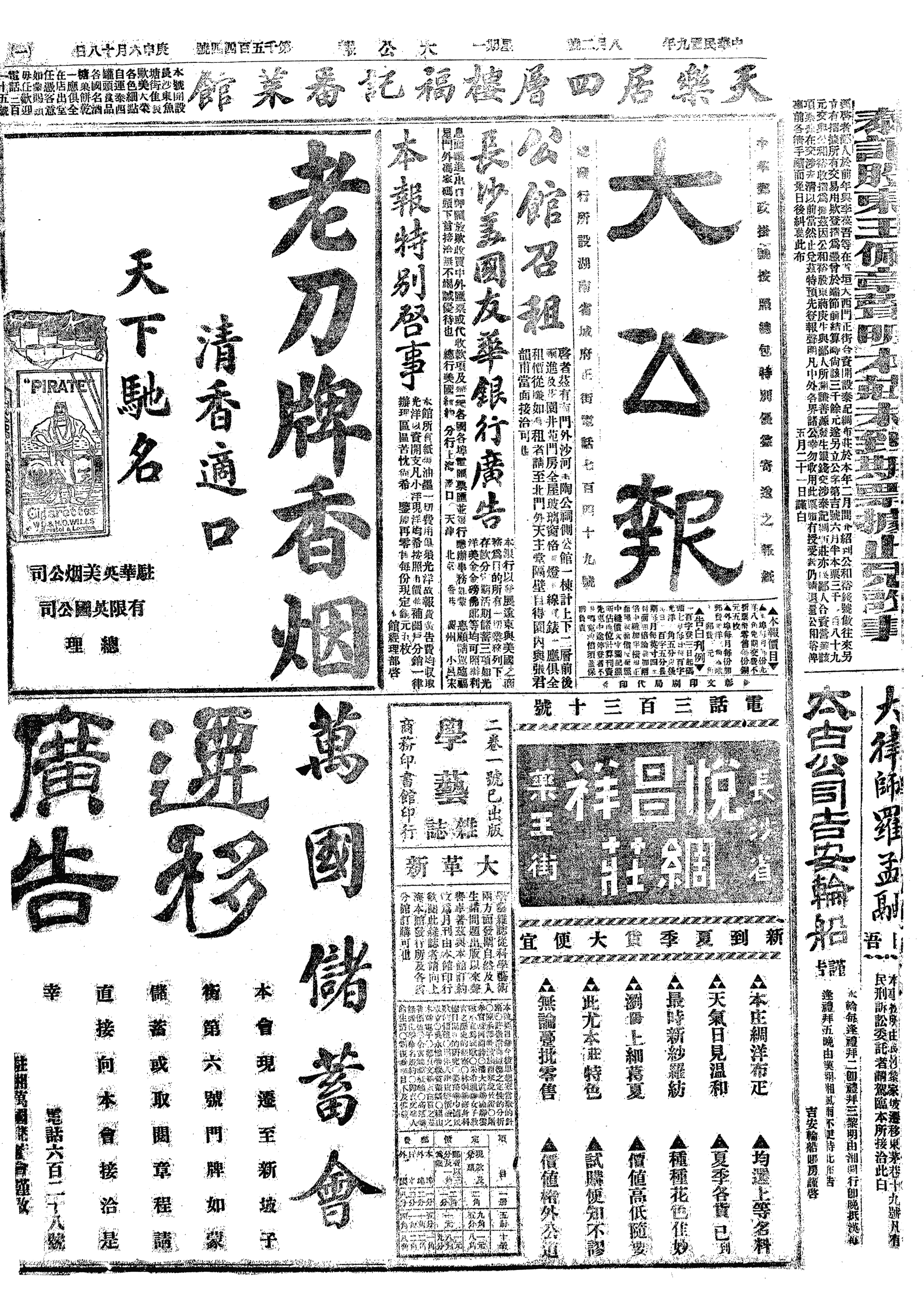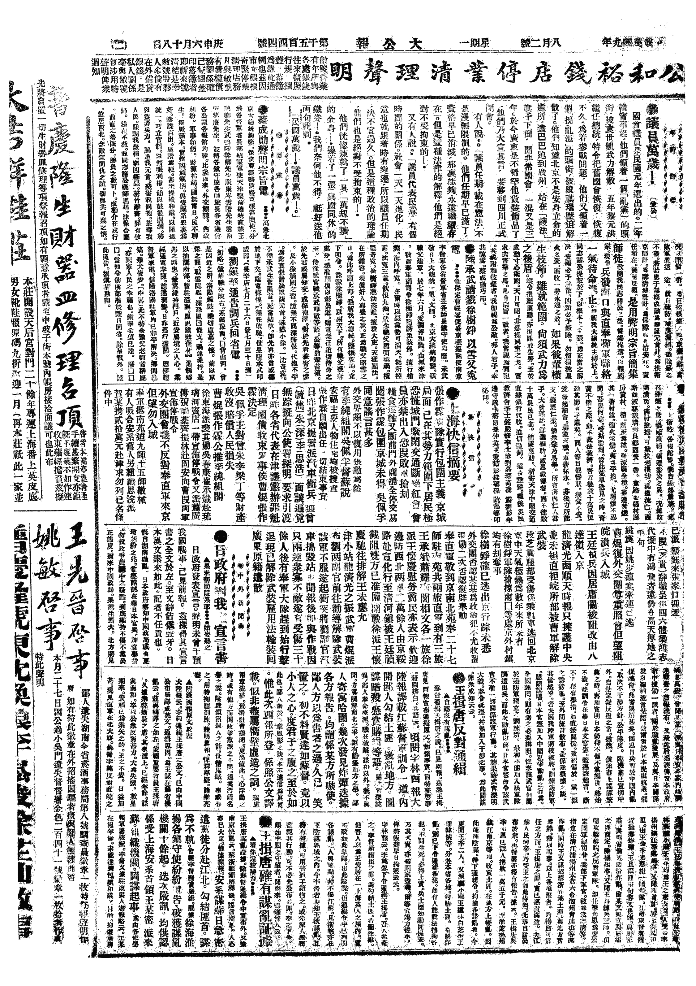 中华民国史大事记>19200802