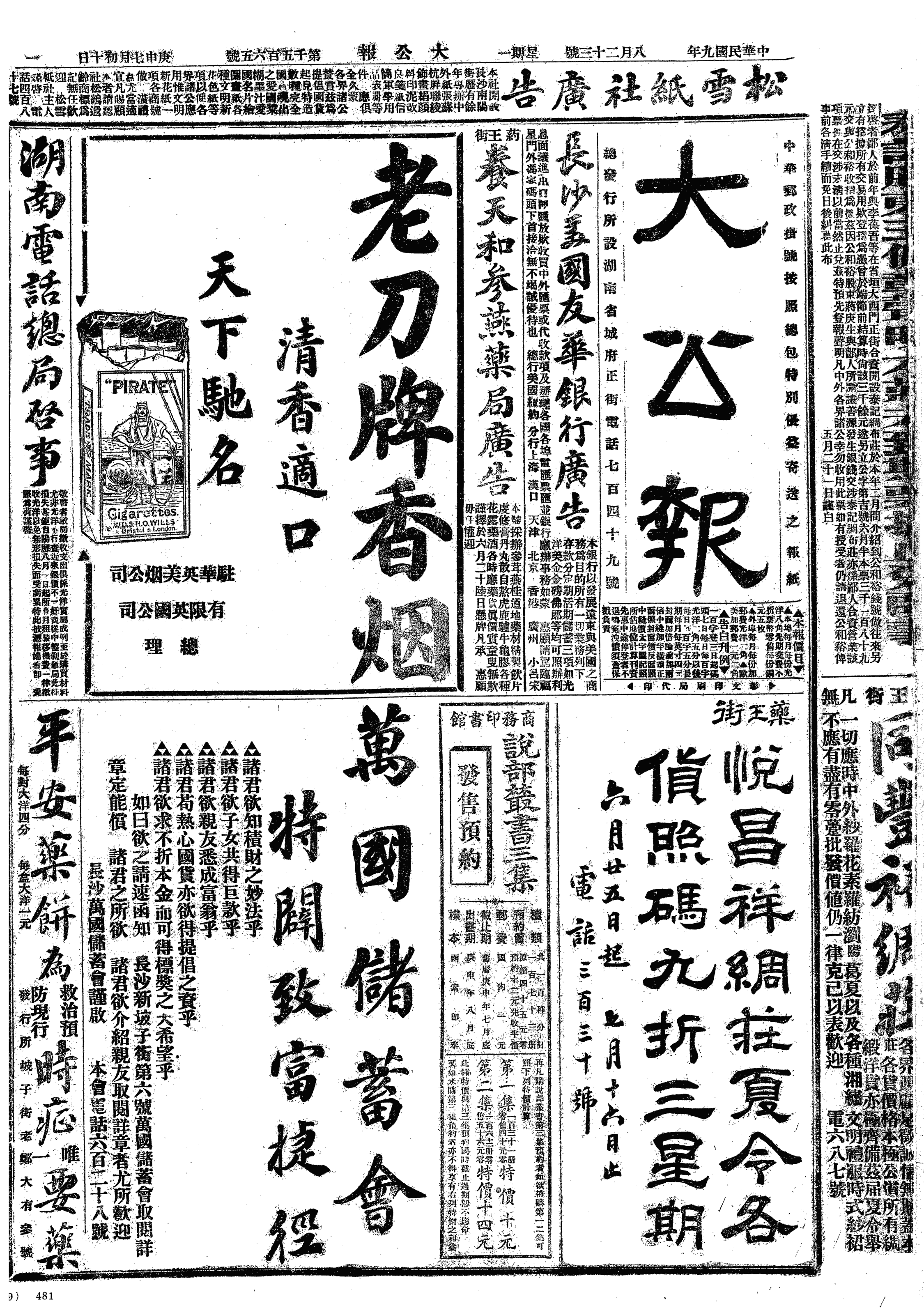 中华民国史事日志>19200823