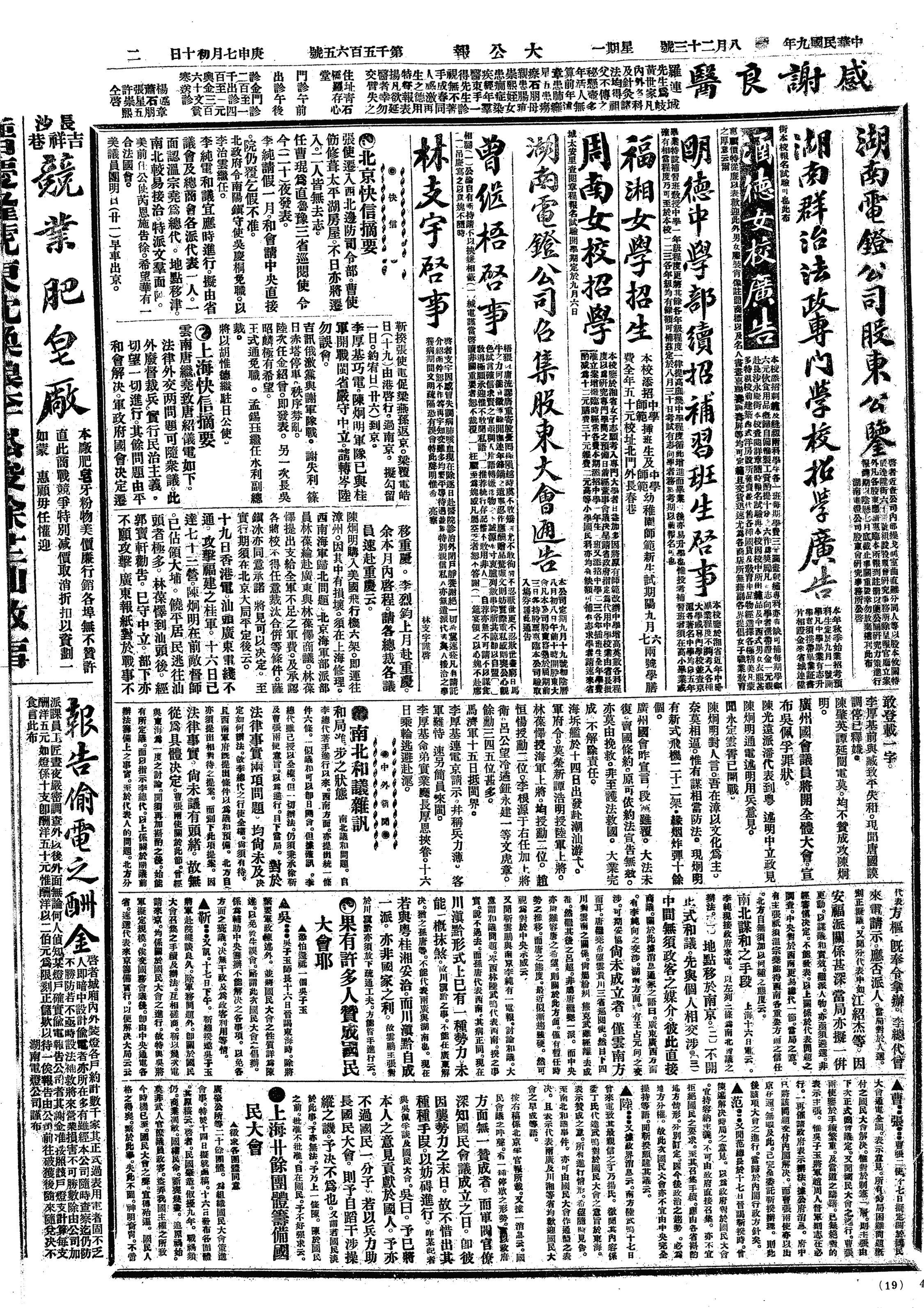 中华民国史大事记>19200823