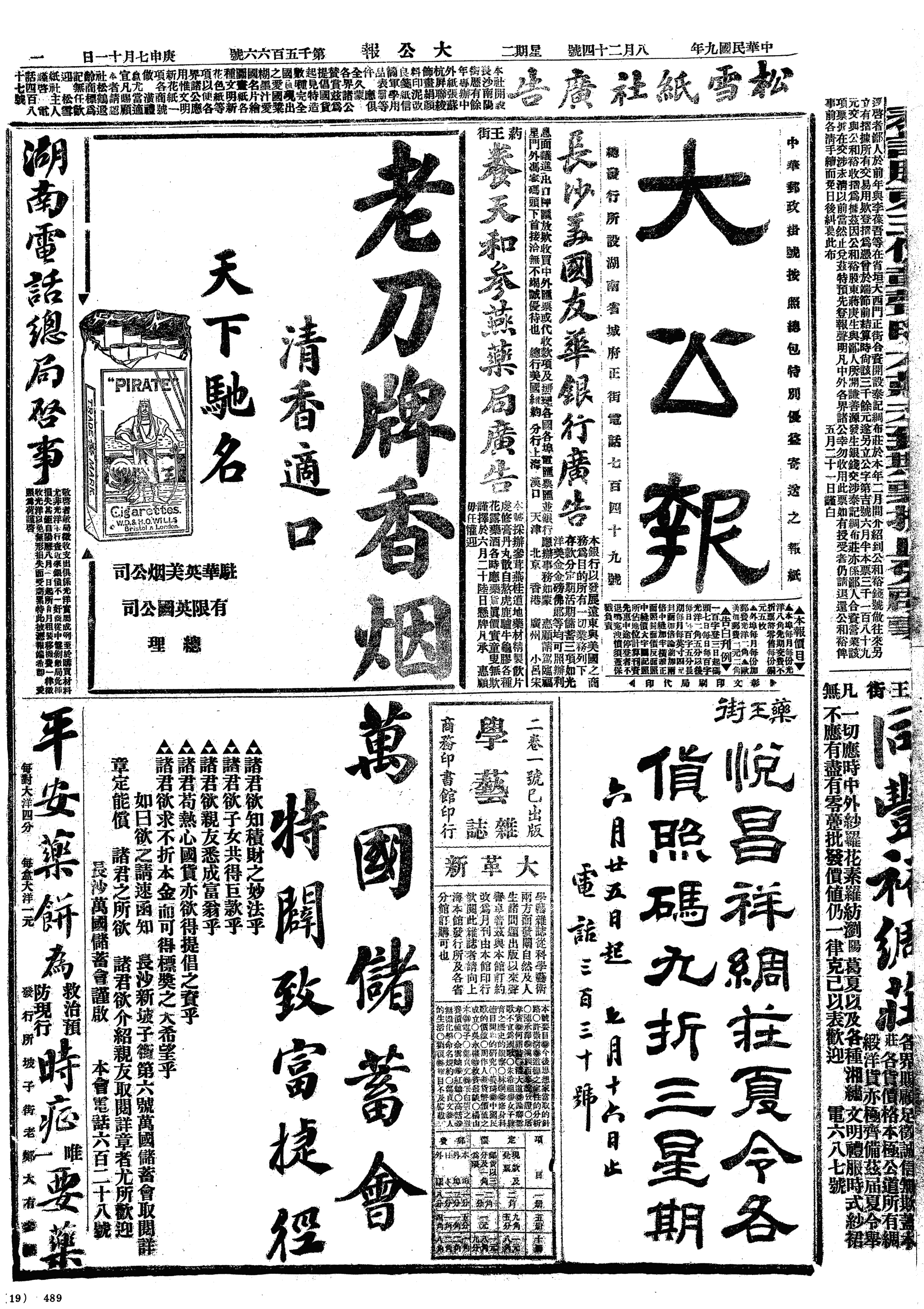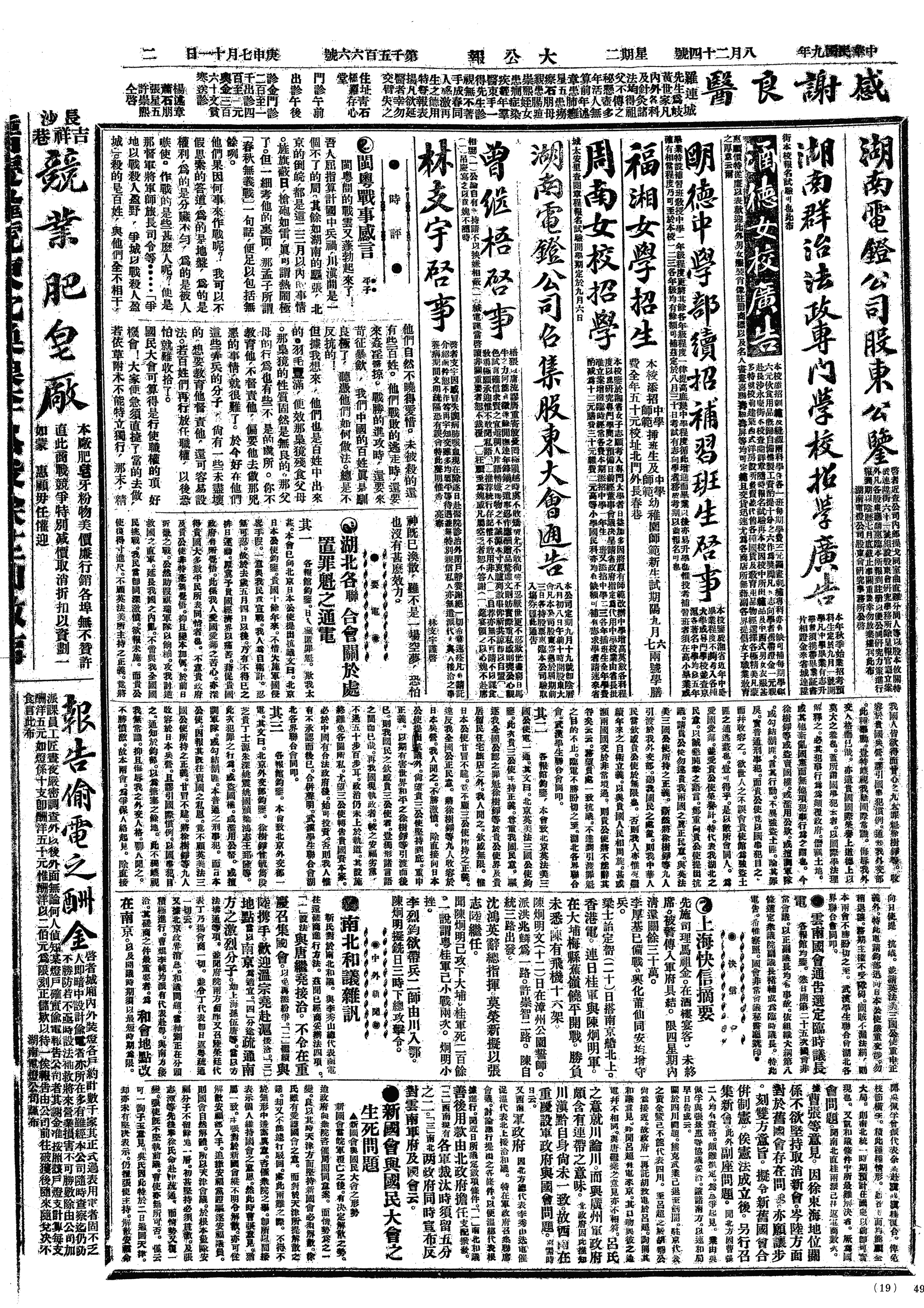 中华民国史大事记>19200824