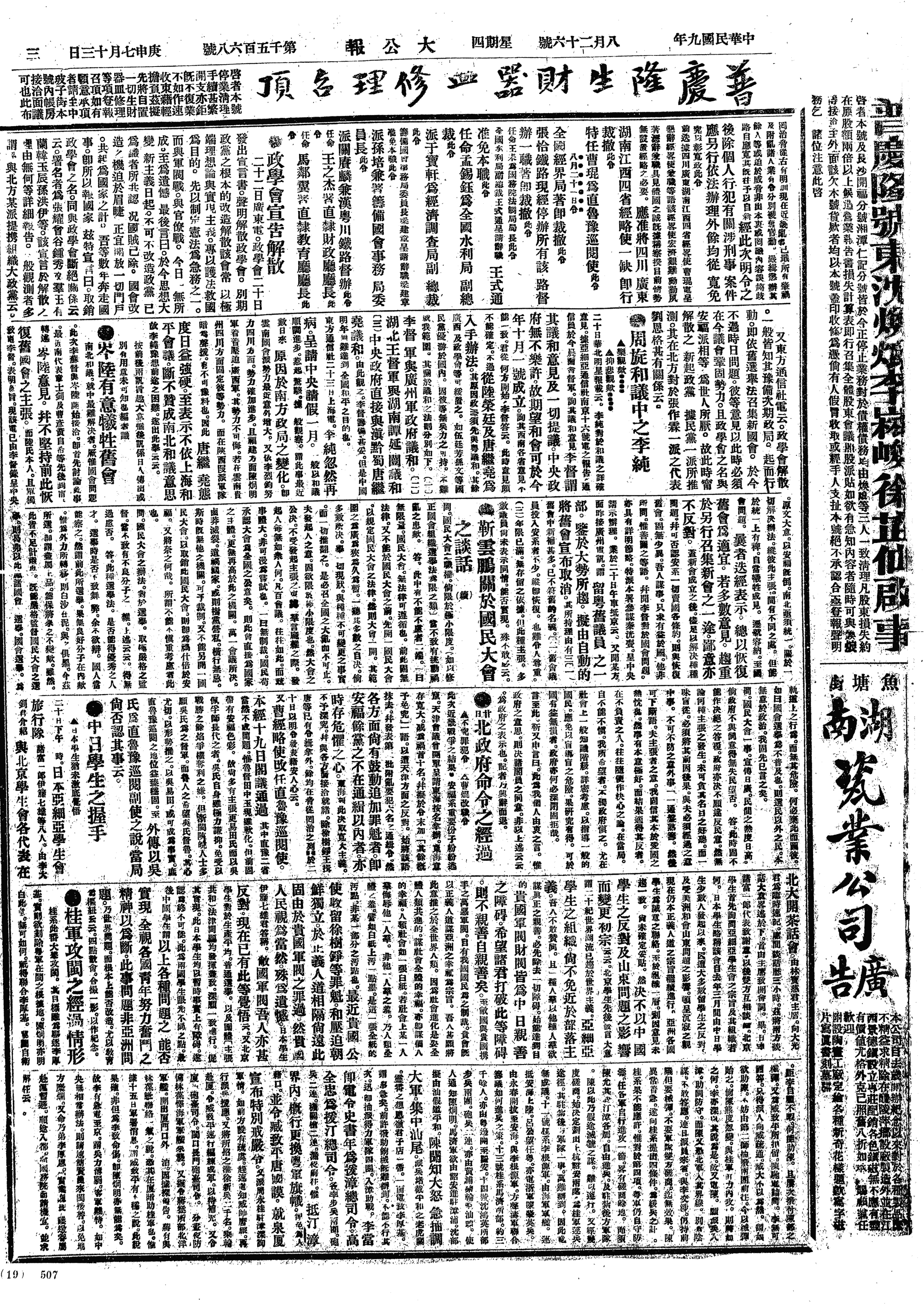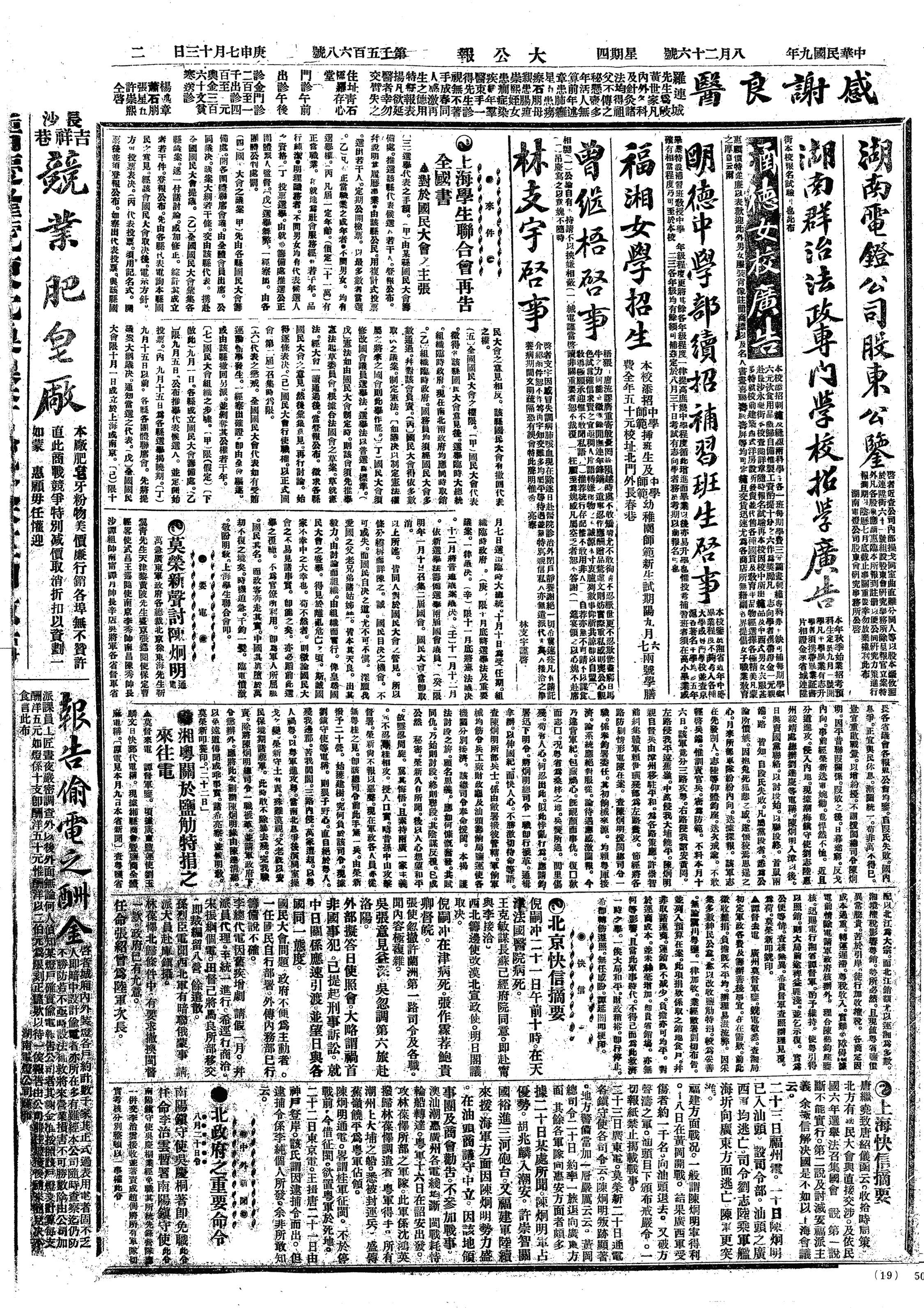 中华民国史大事记>19200826