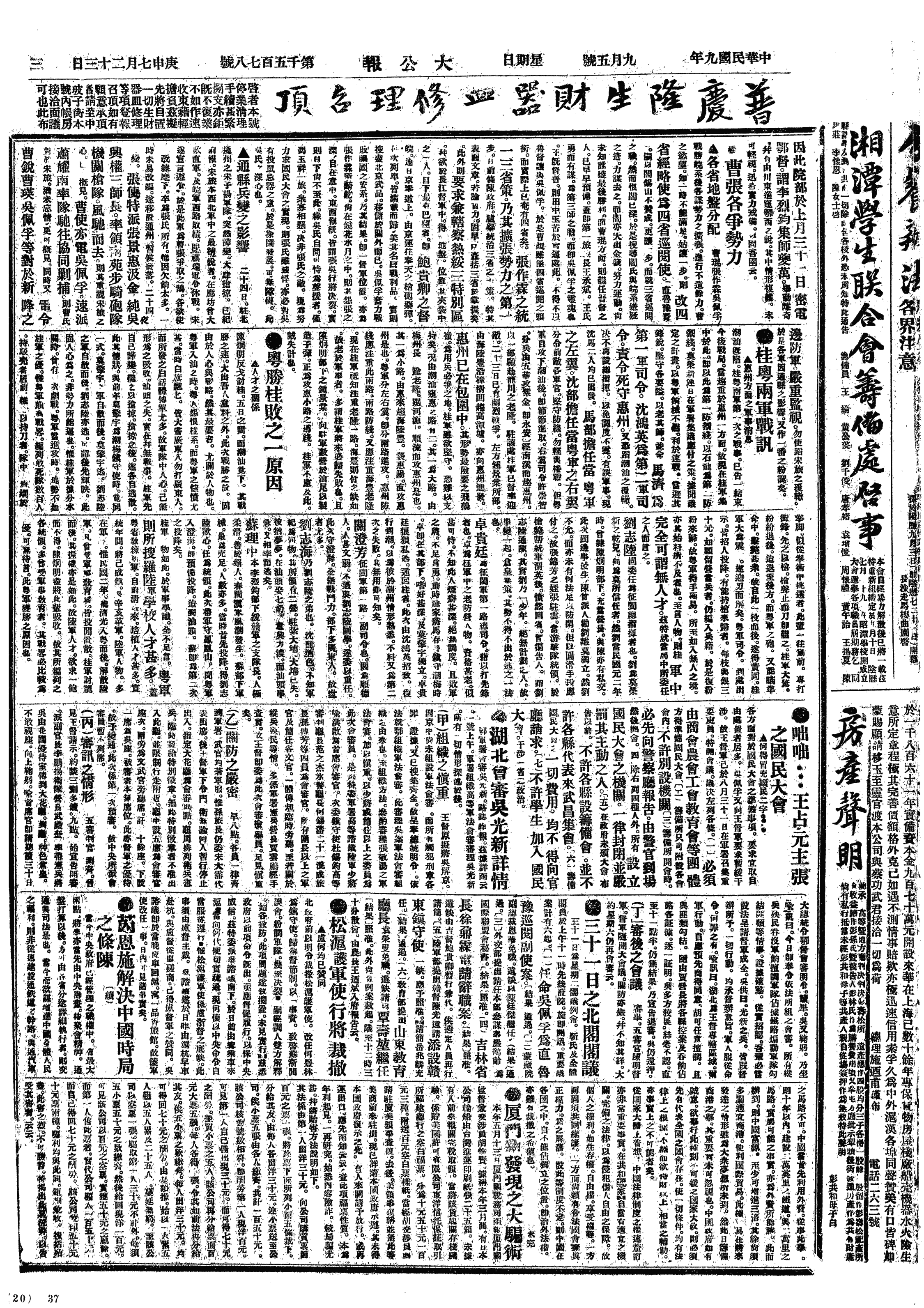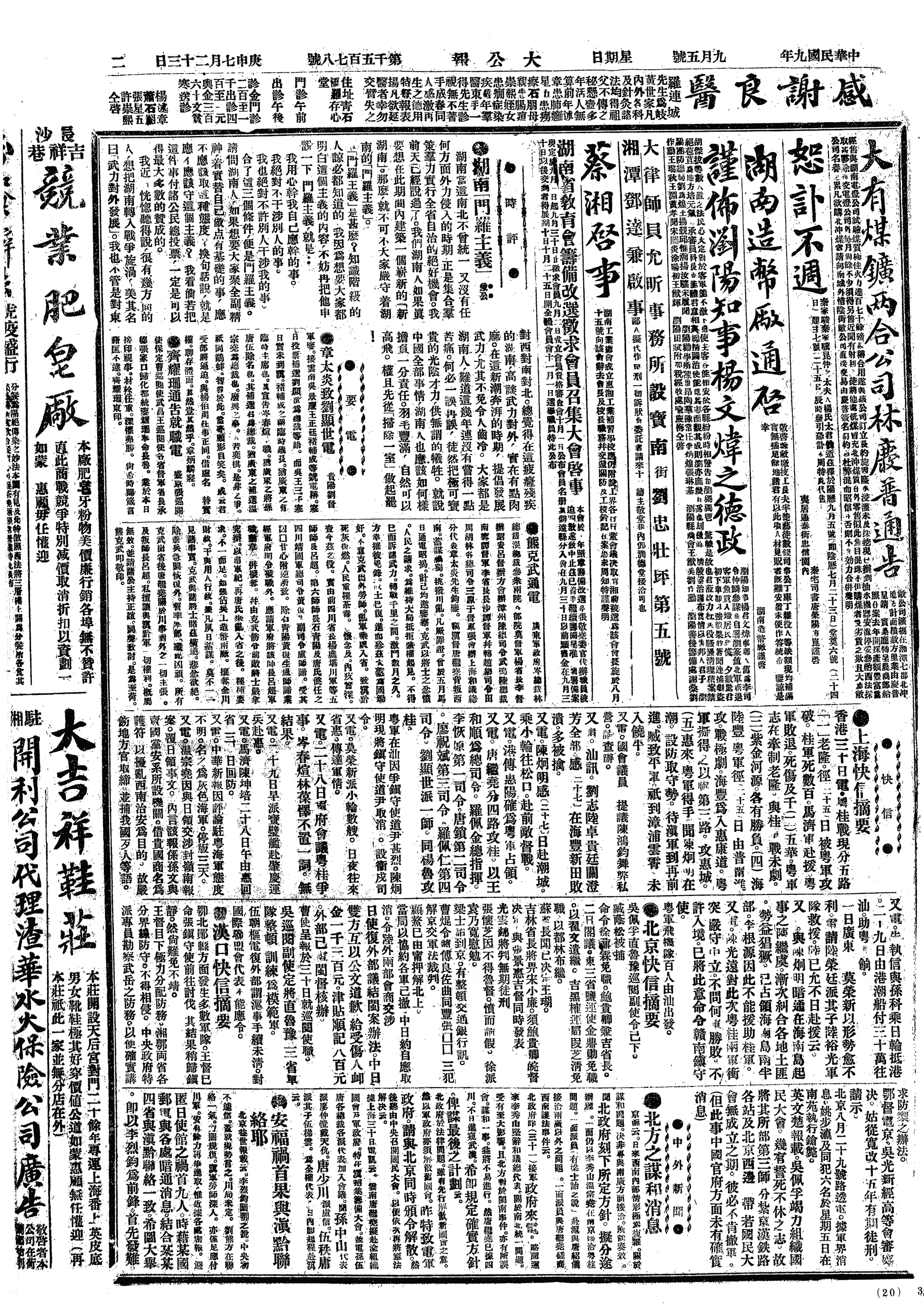中华民国史大事记>19200905
