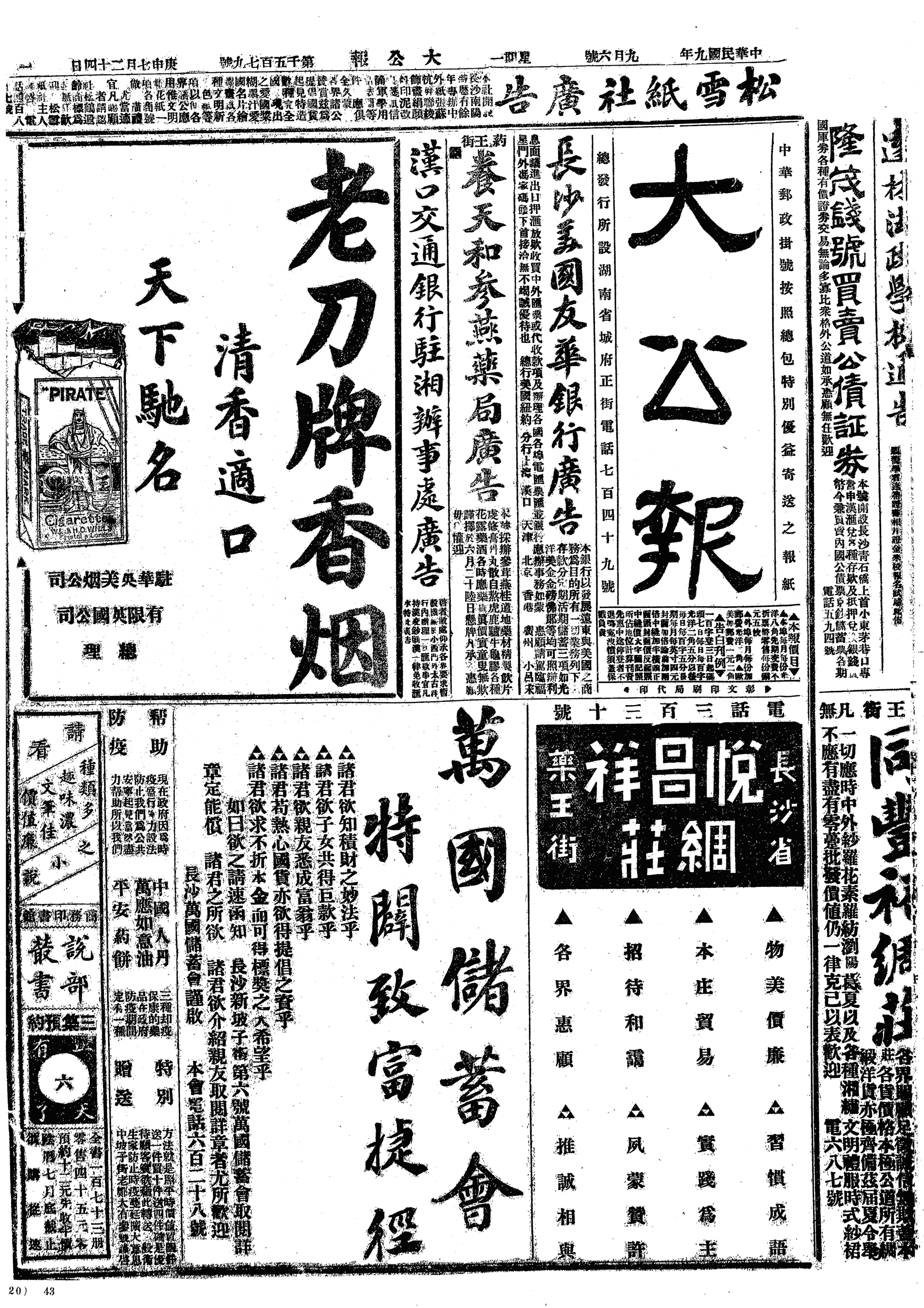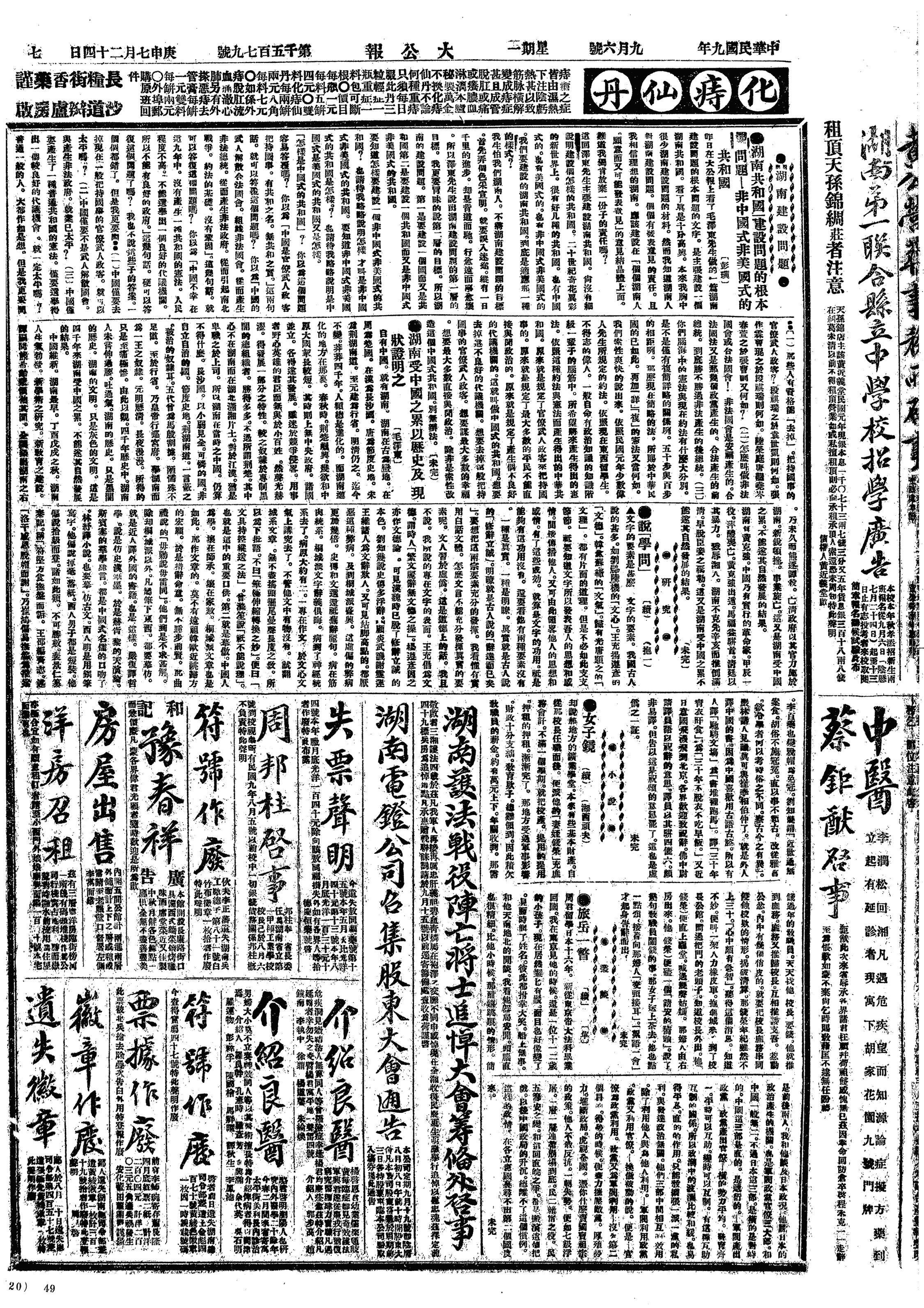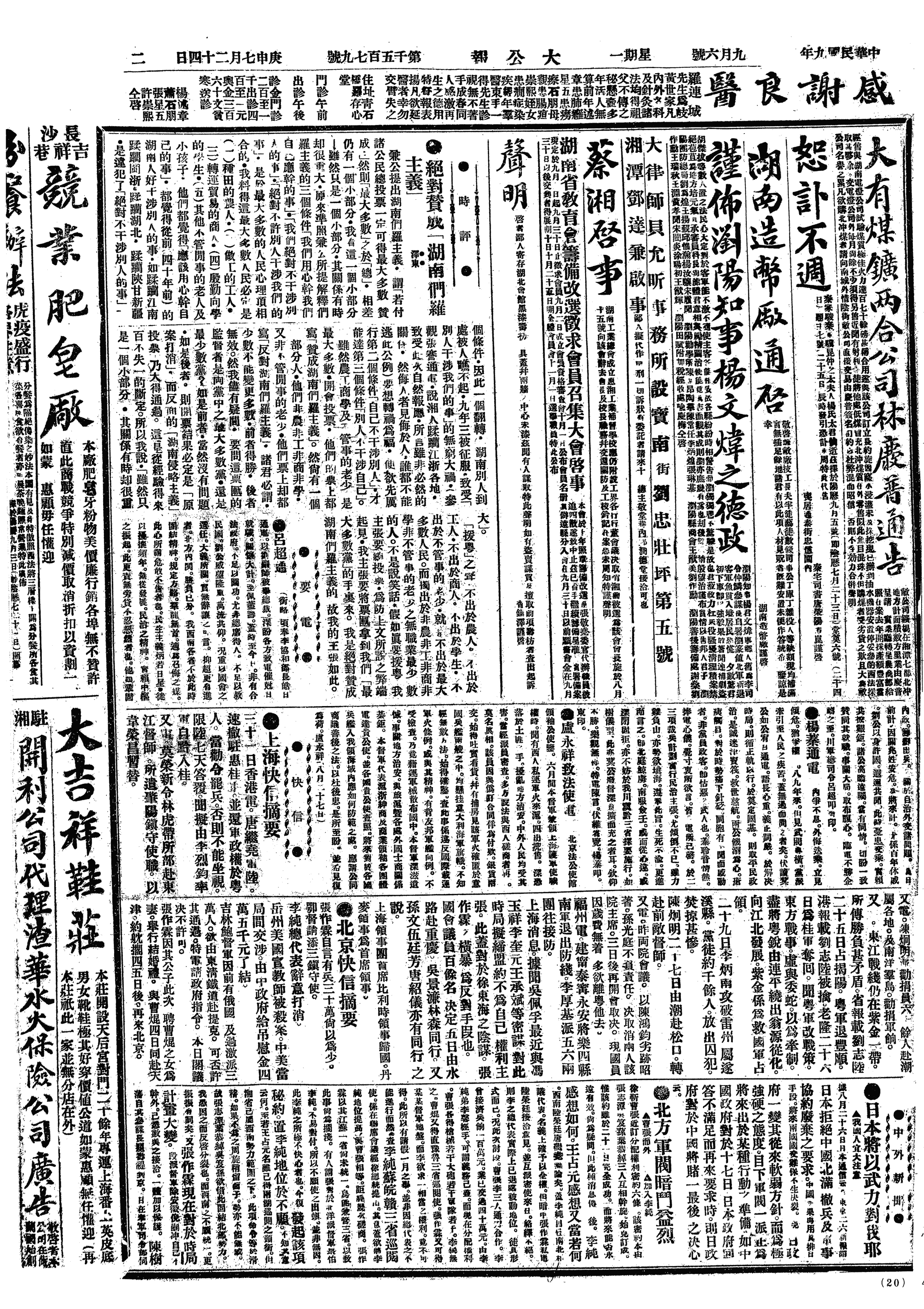 中华民国史大事记>19200906
