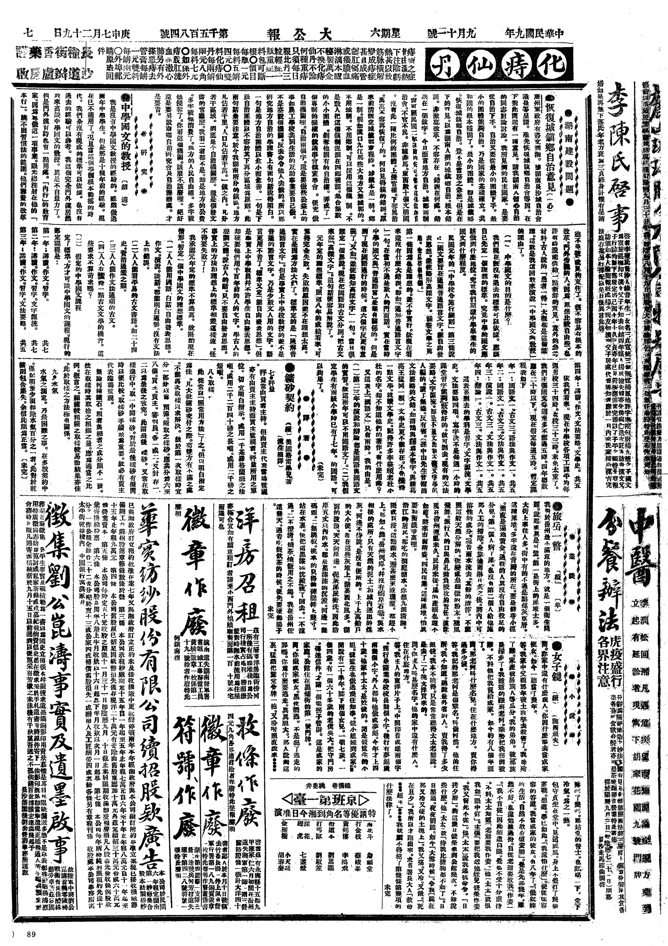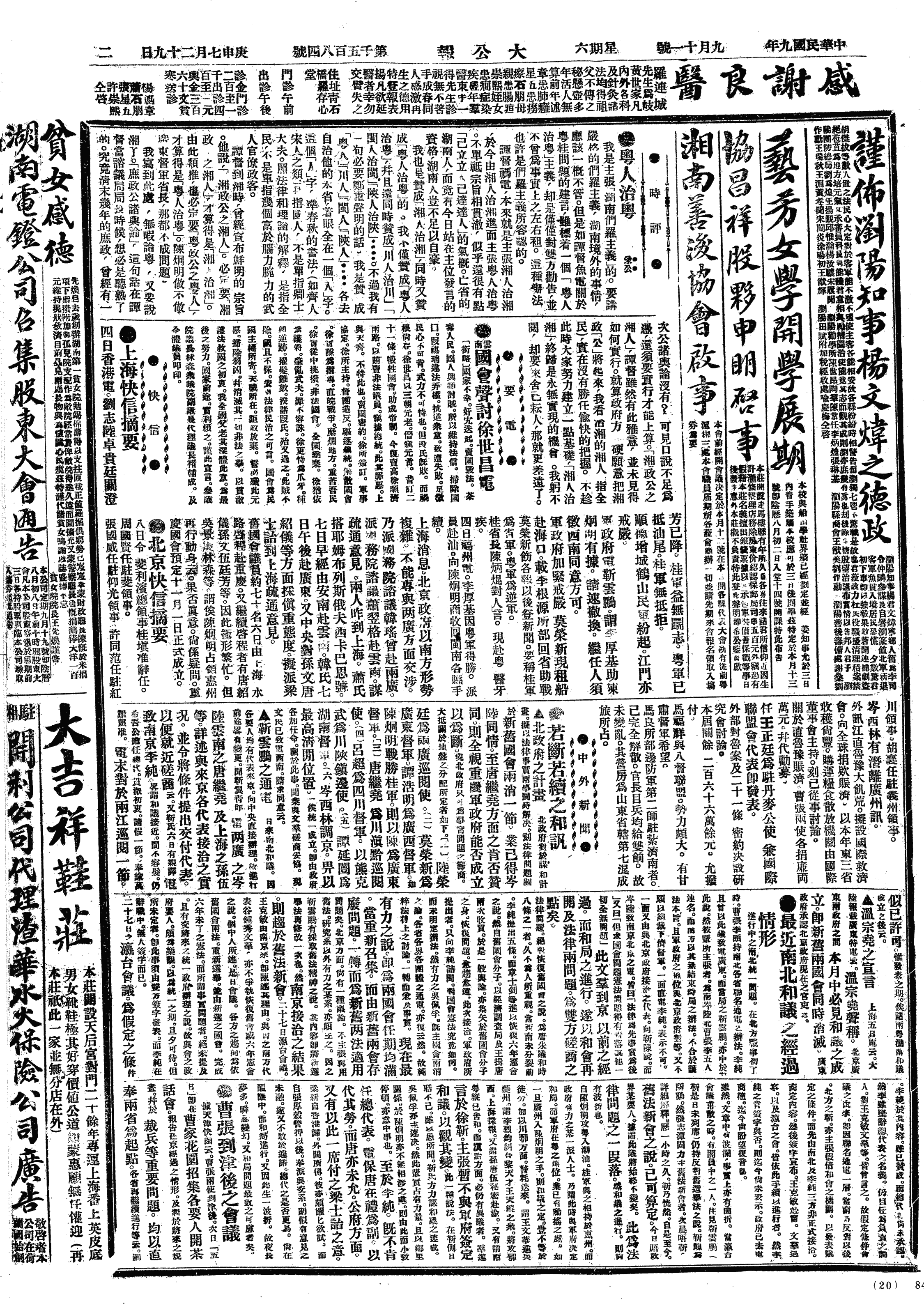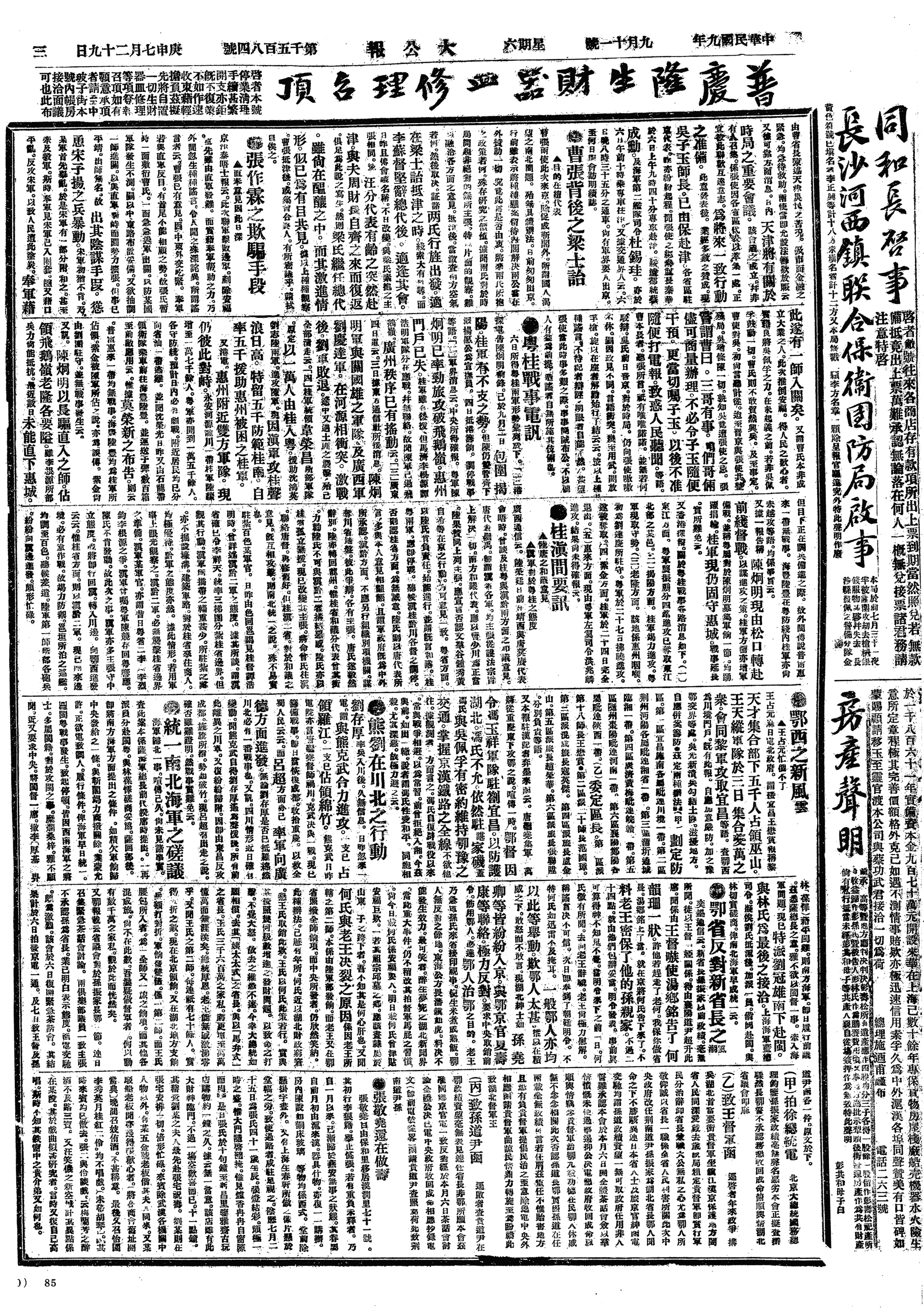 中华民国史大事记>19200911