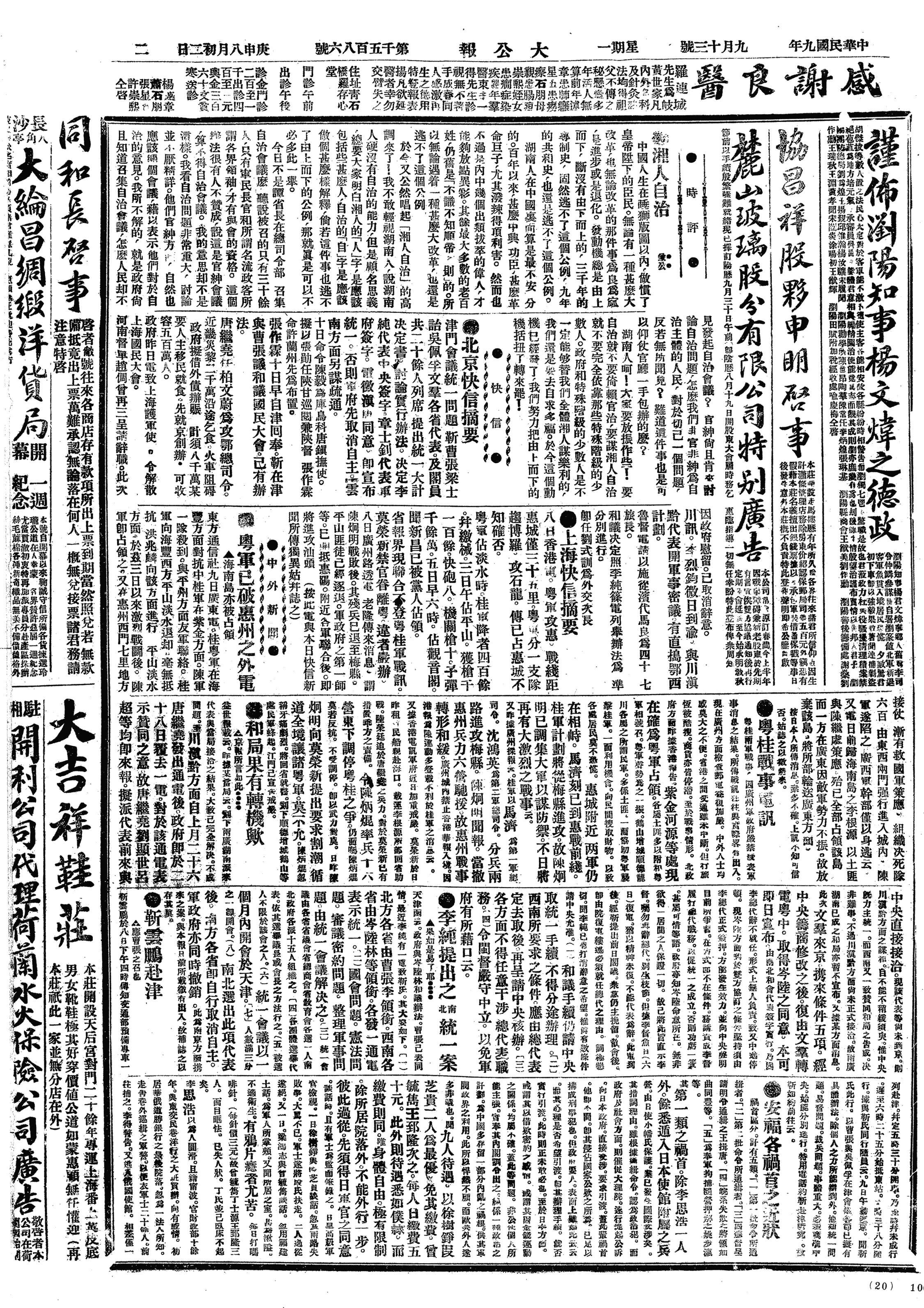 中华民国史大事记>19200913