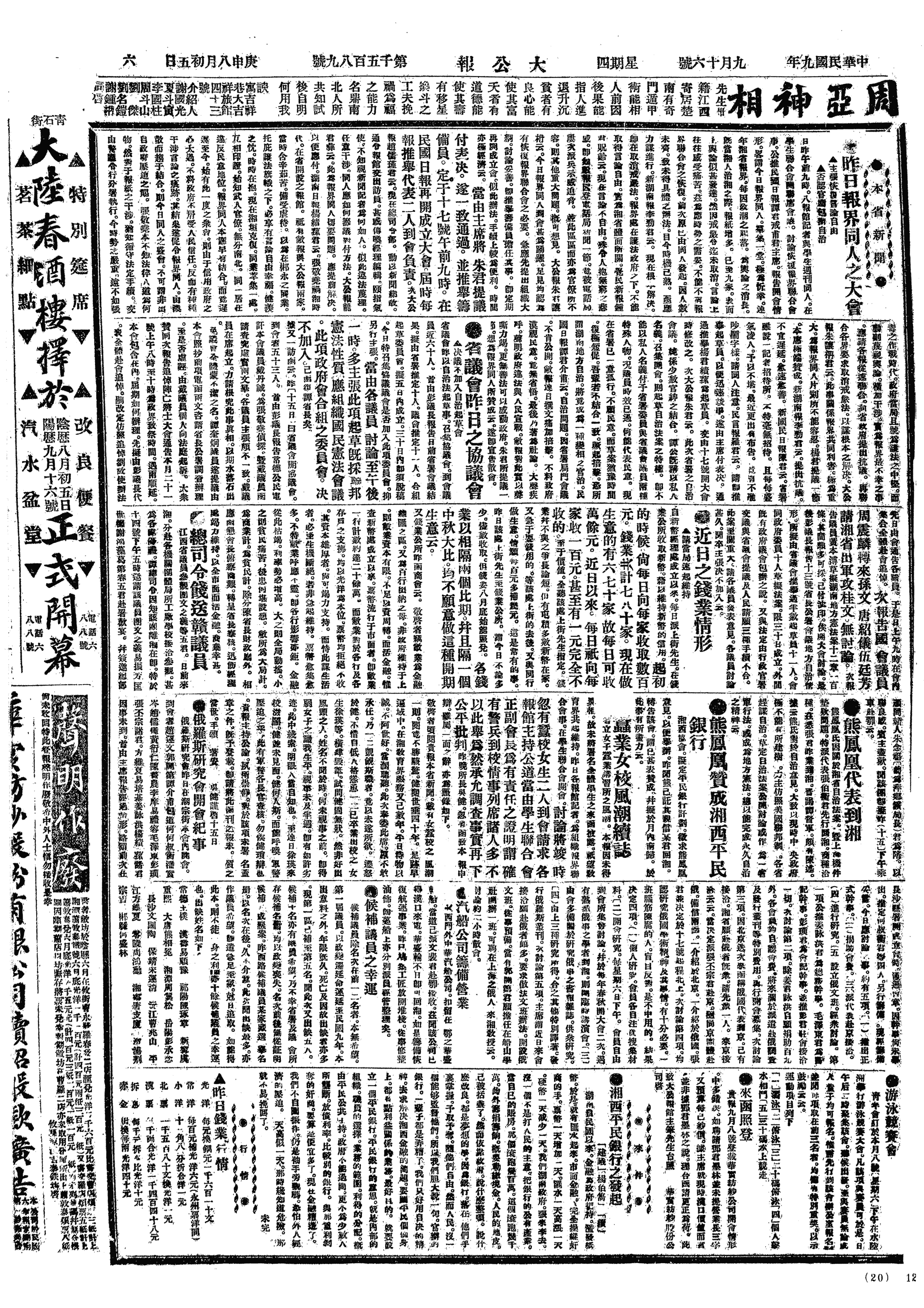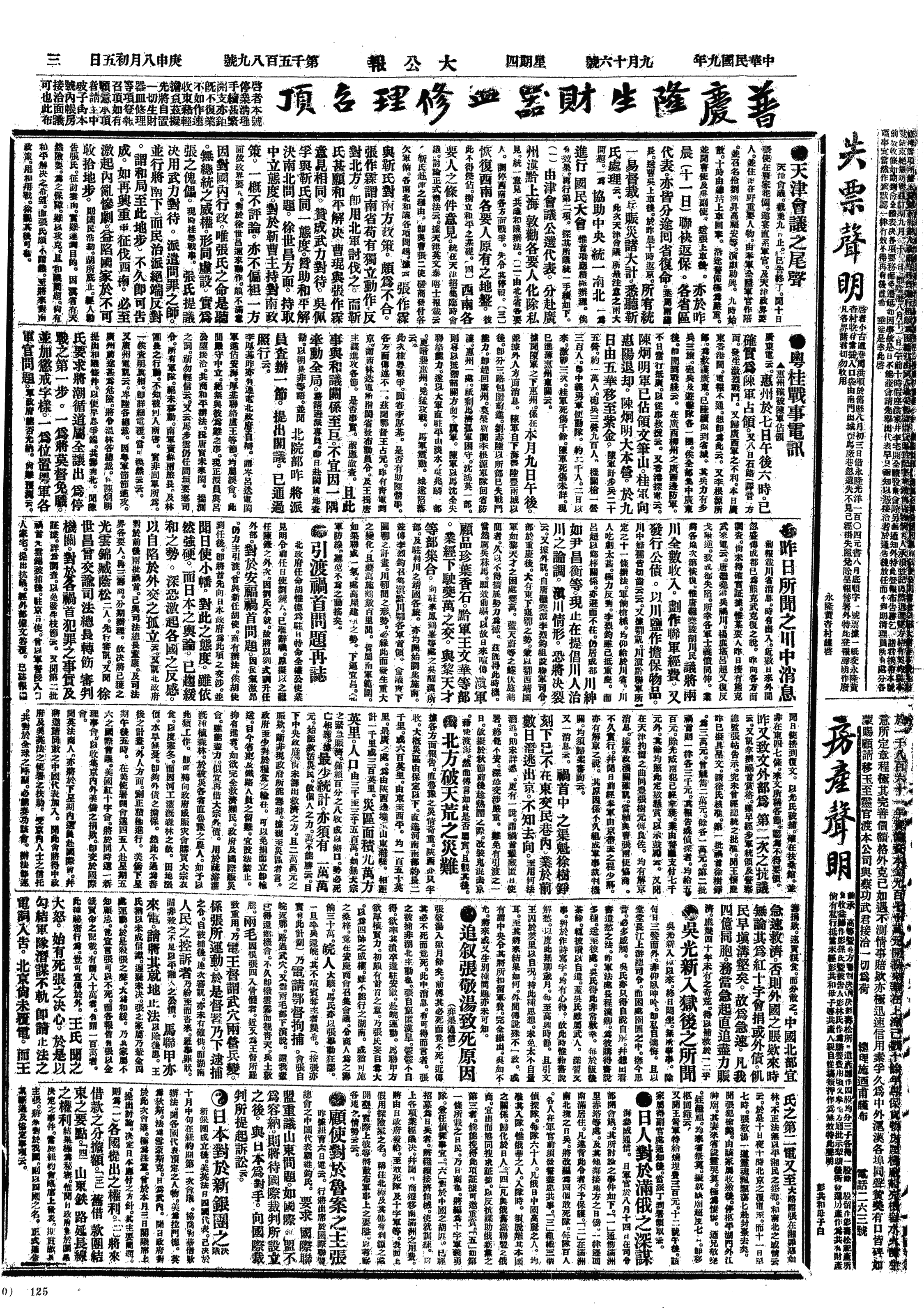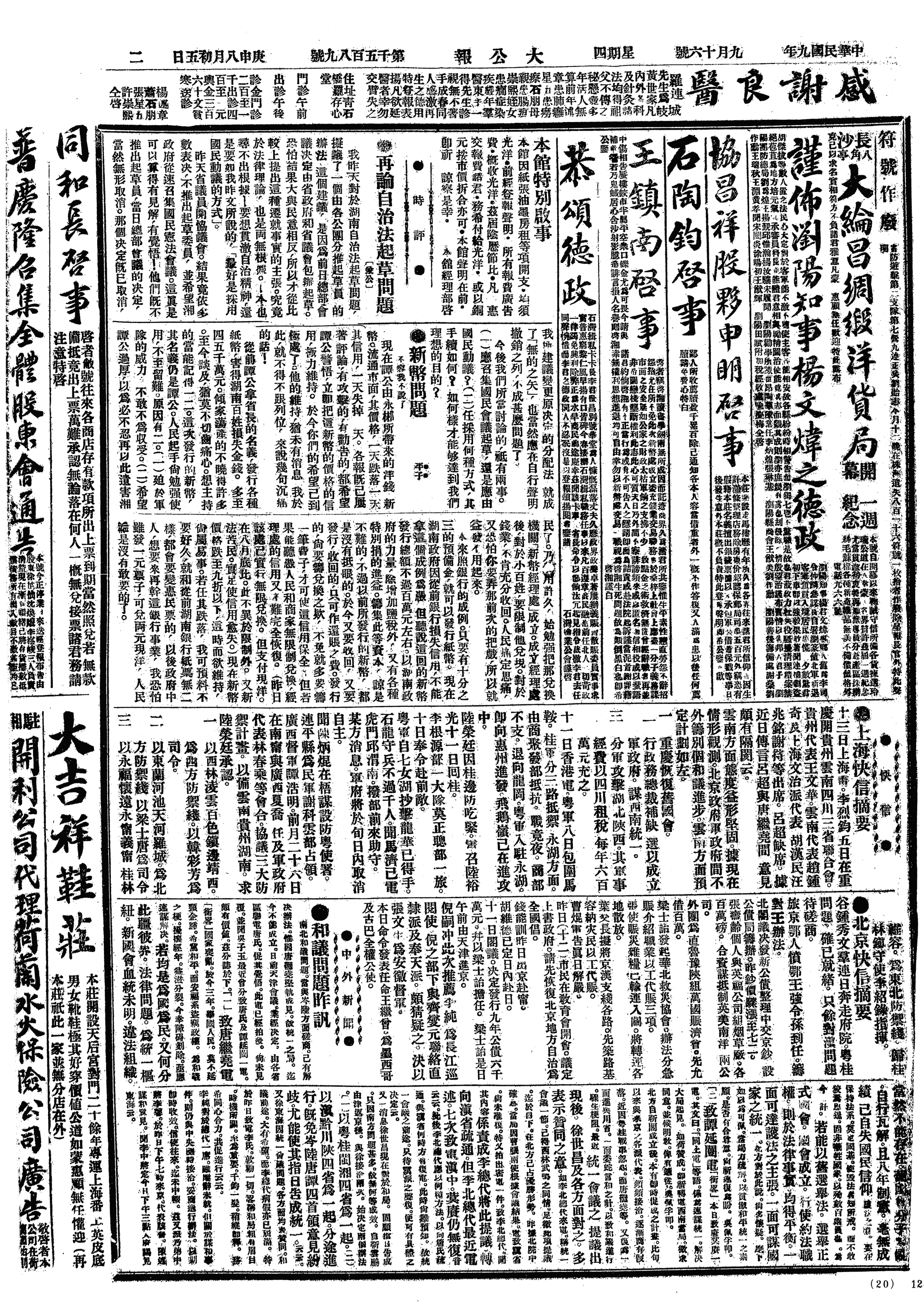 中华民国史大事记>19200916
