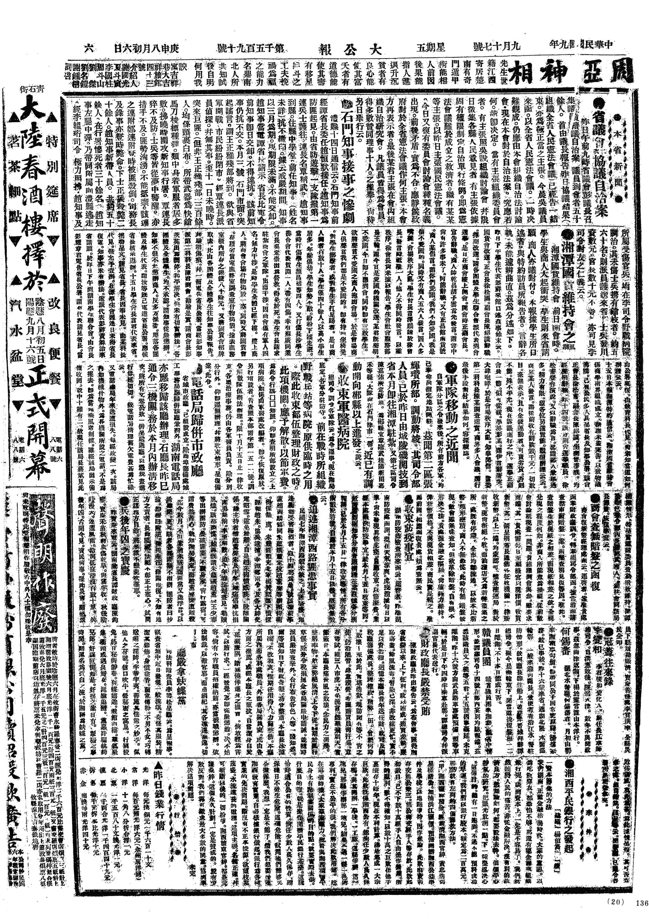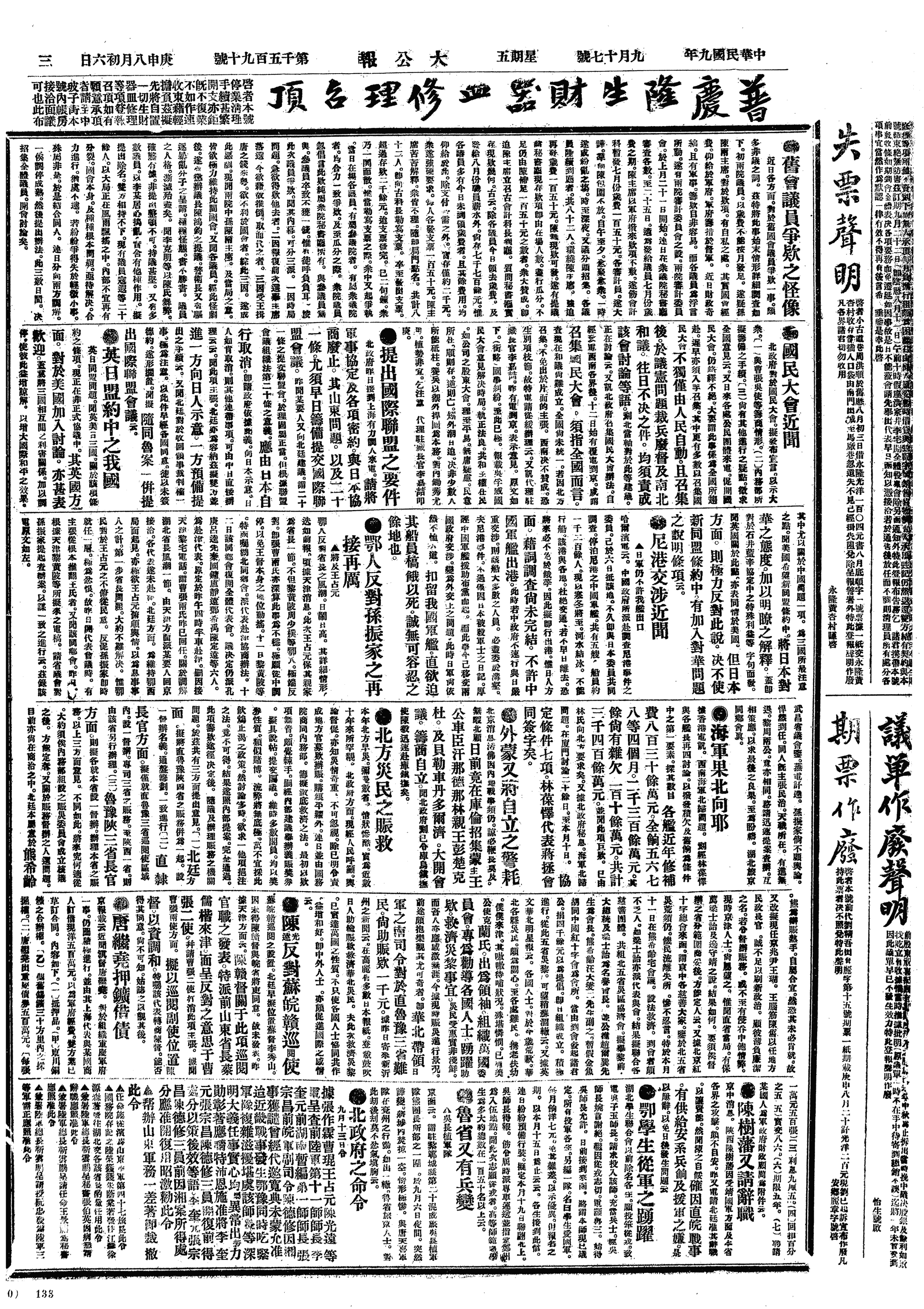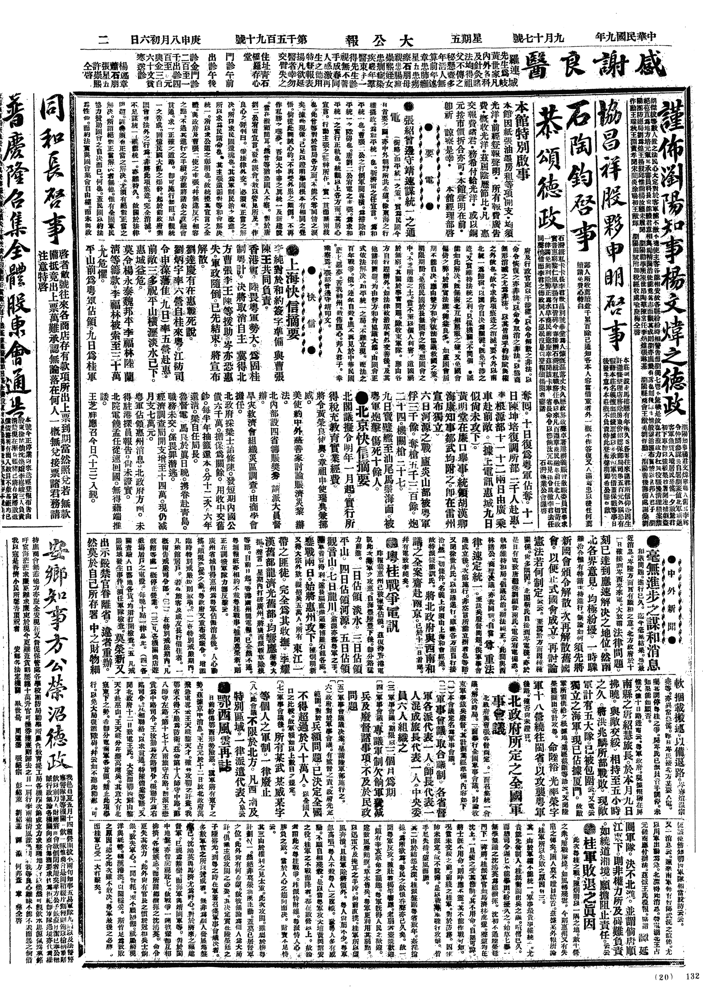 中华民国史大事记>19200917