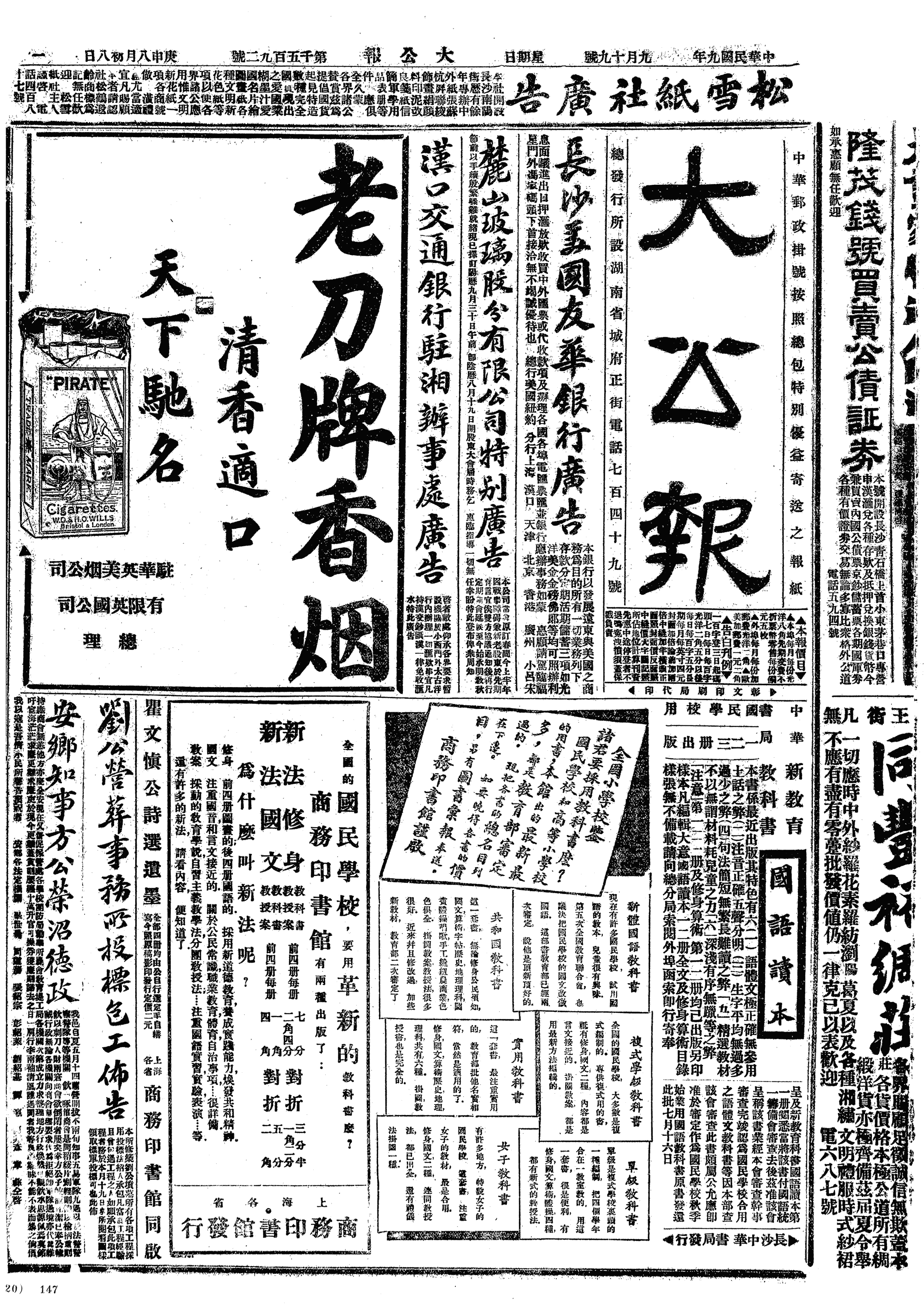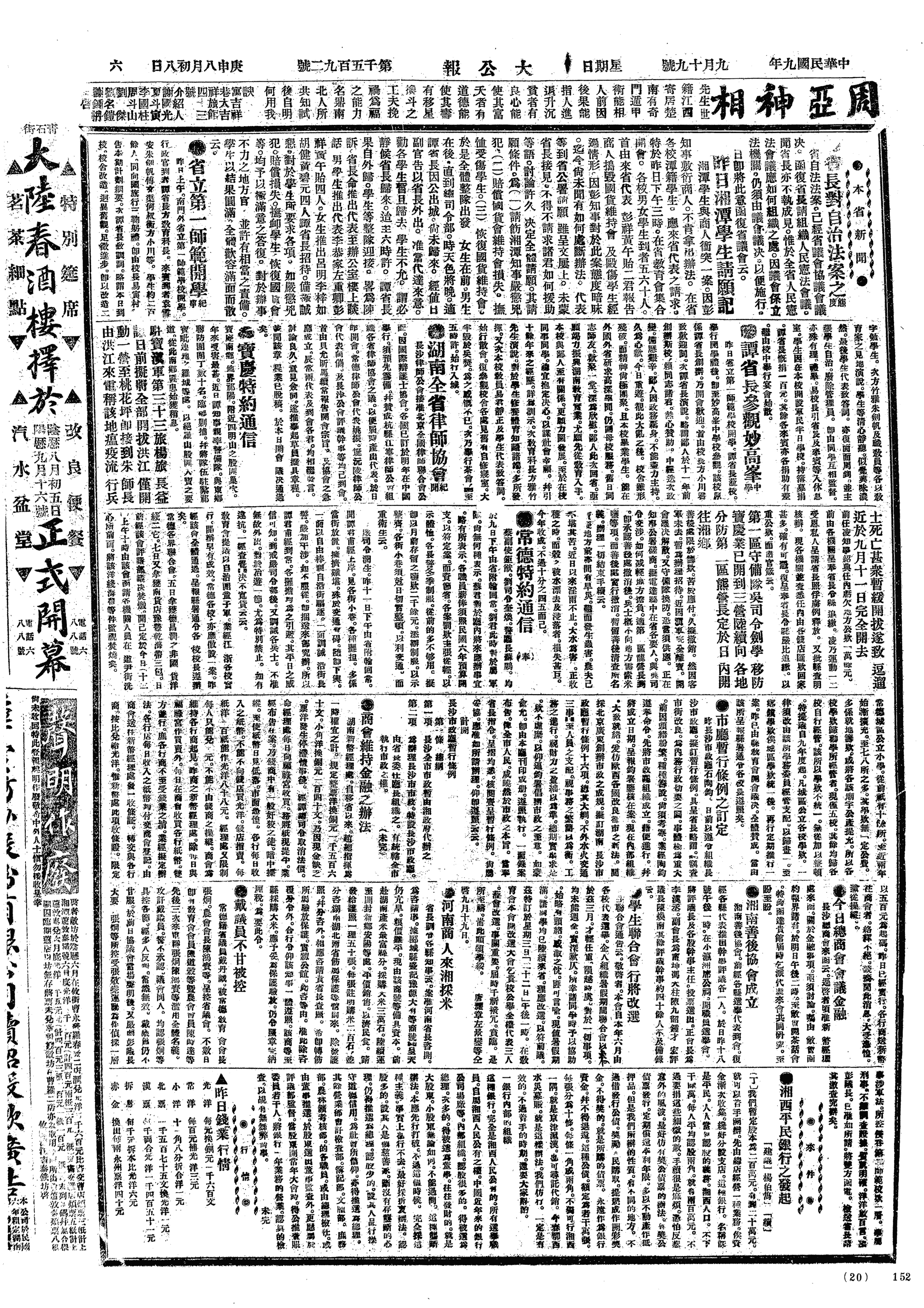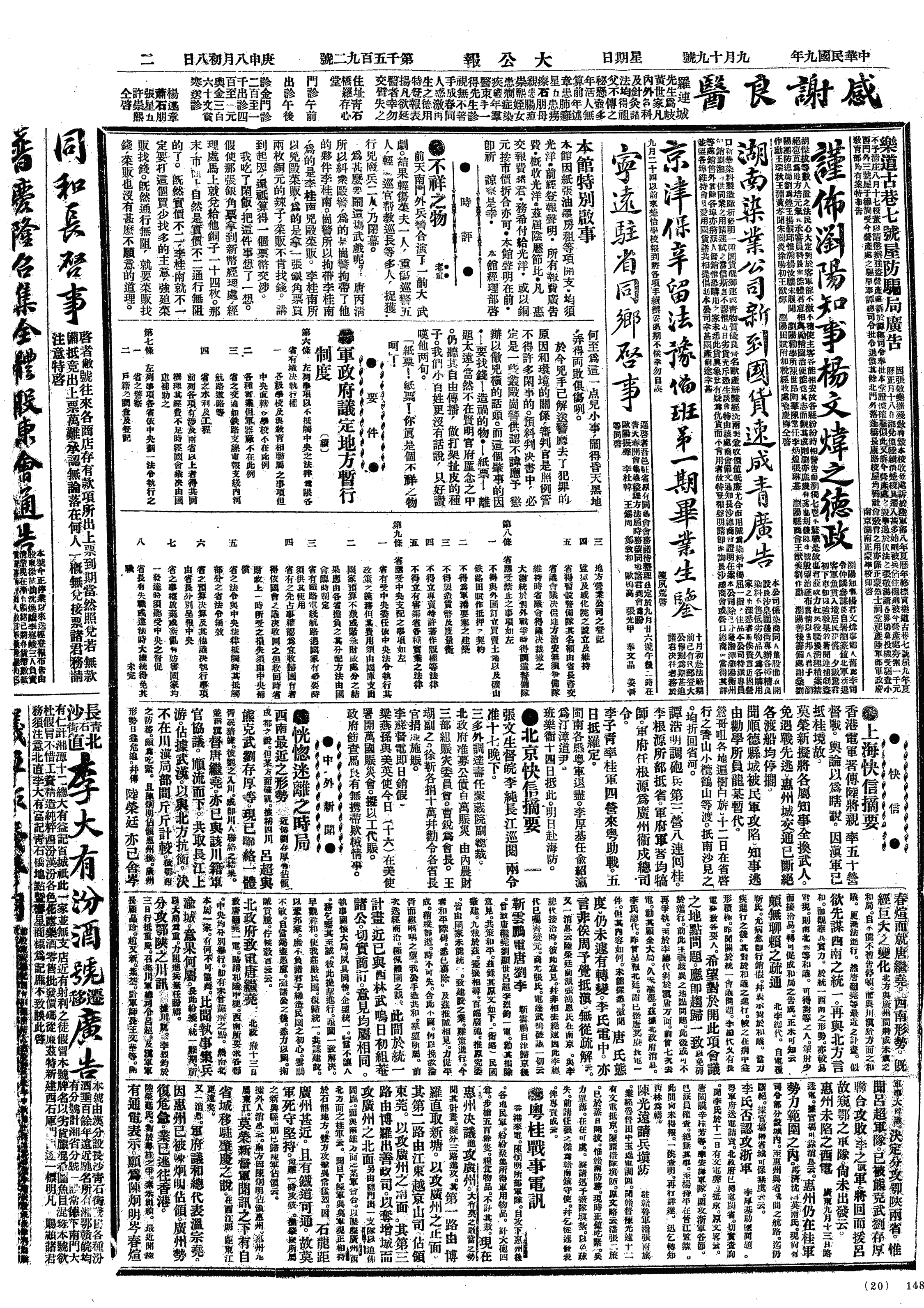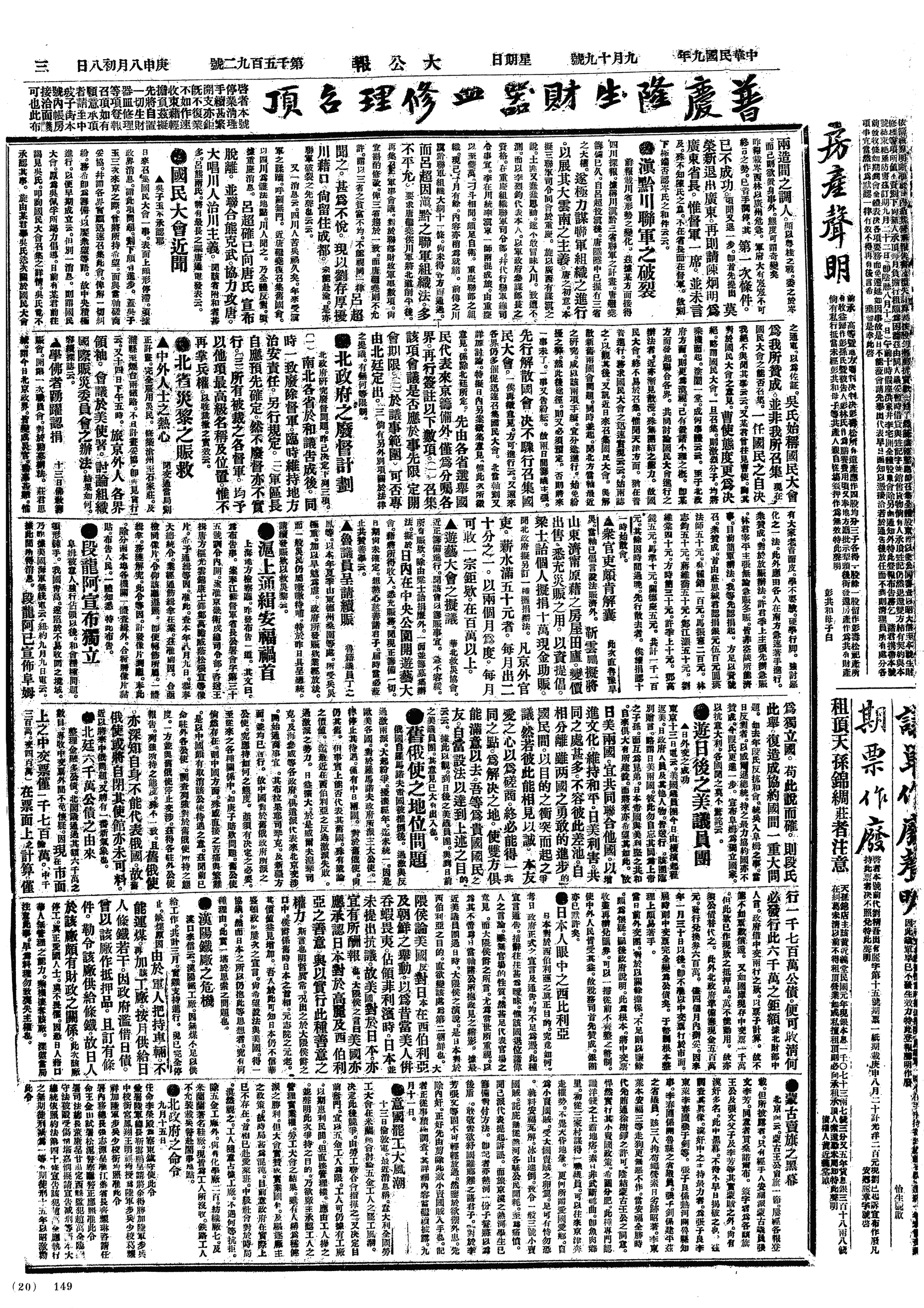 中华民国史大事记>19200919