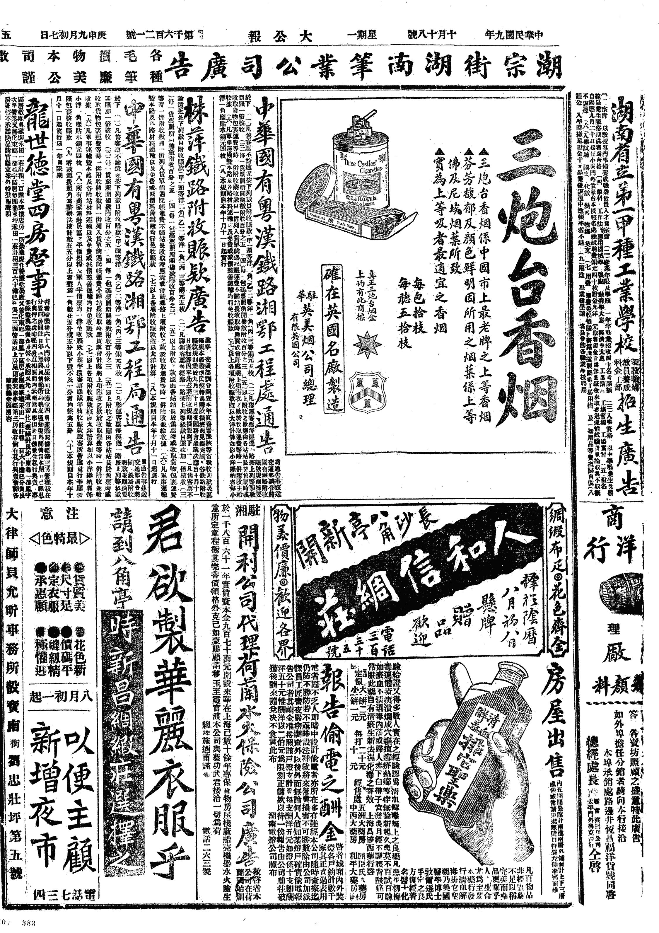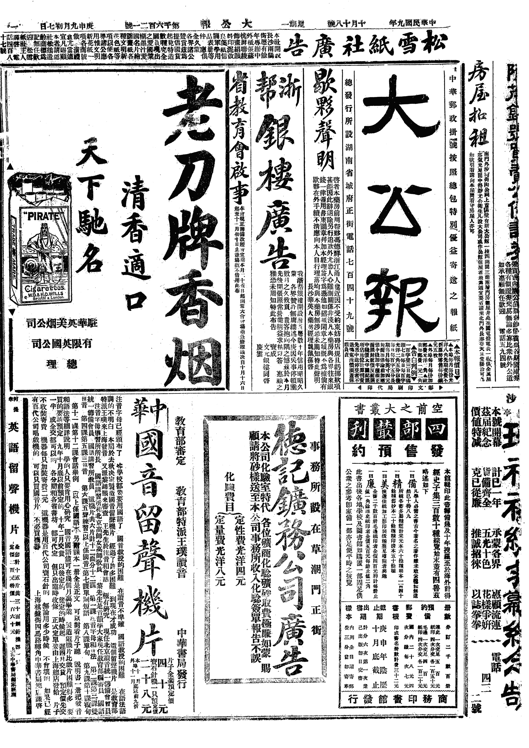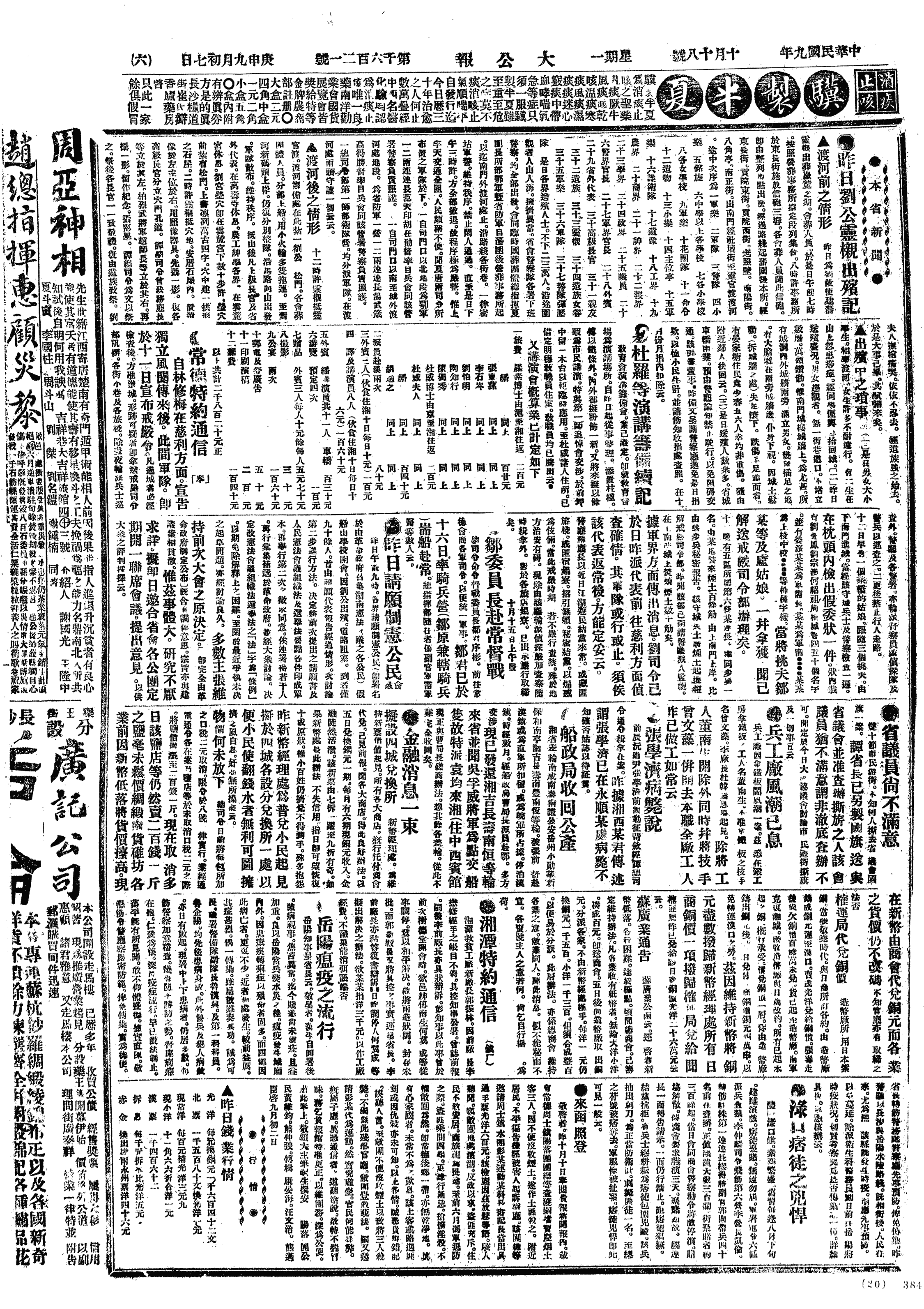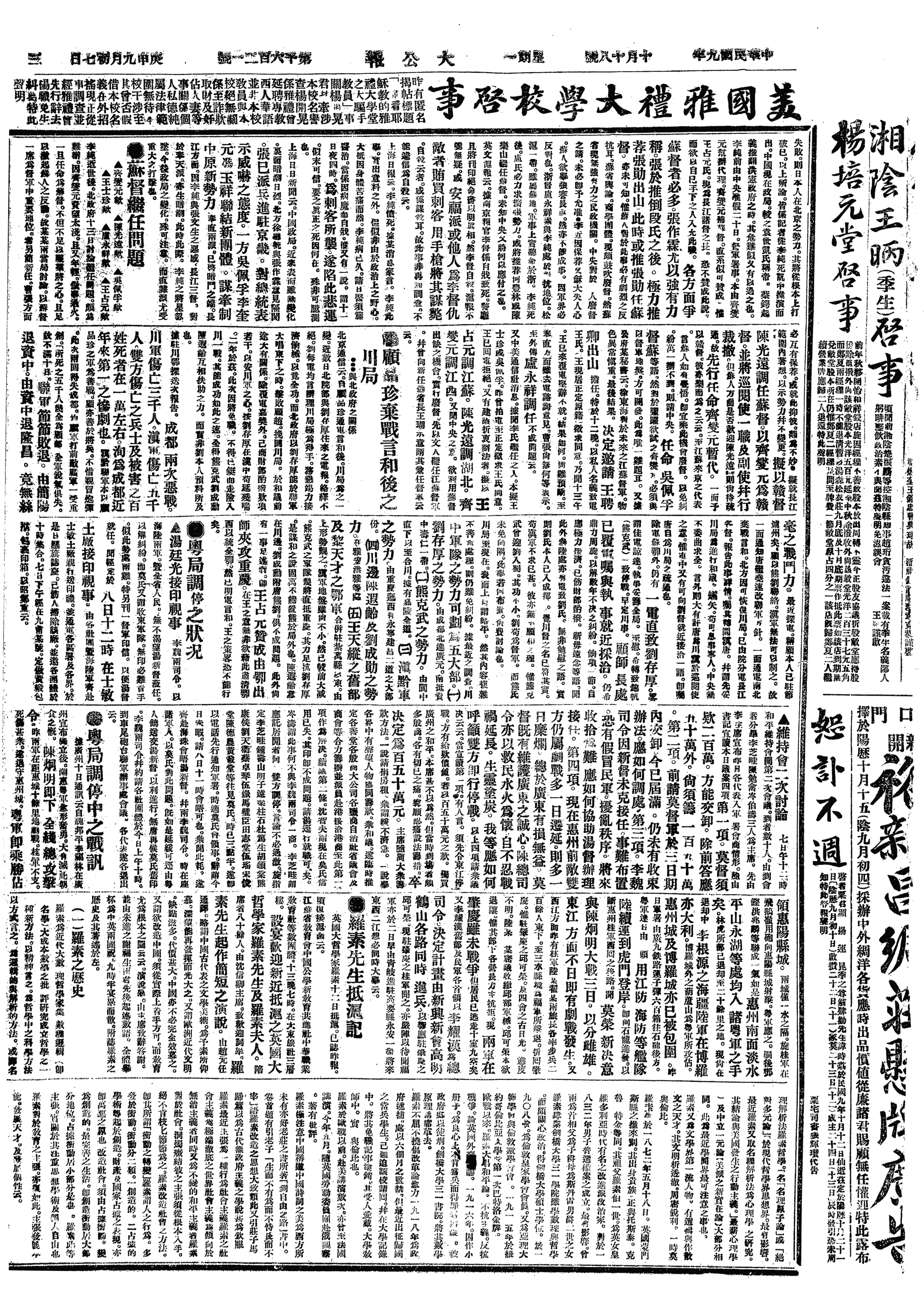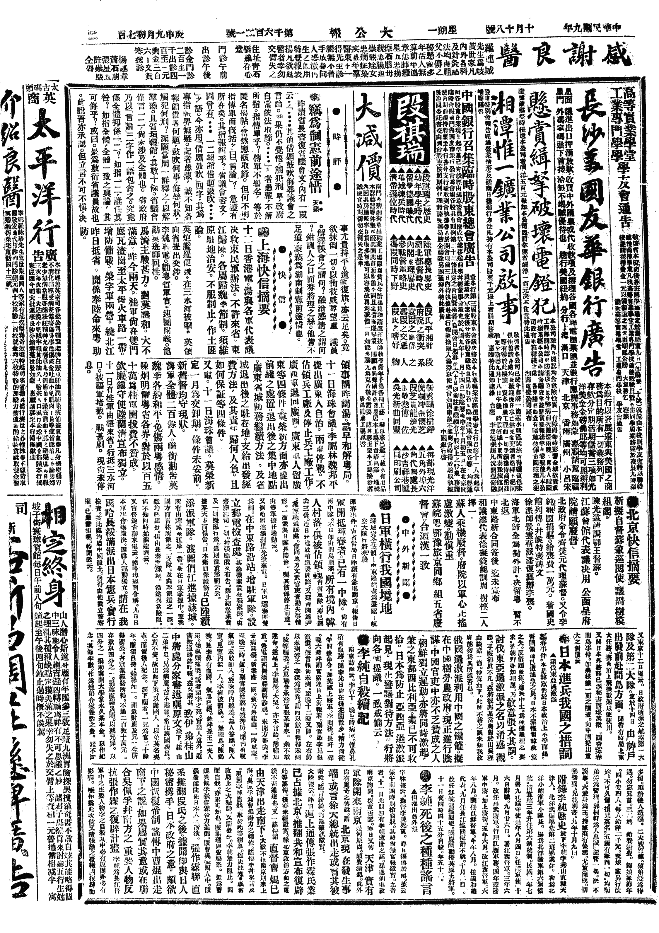 中华民国史大事记>19201018