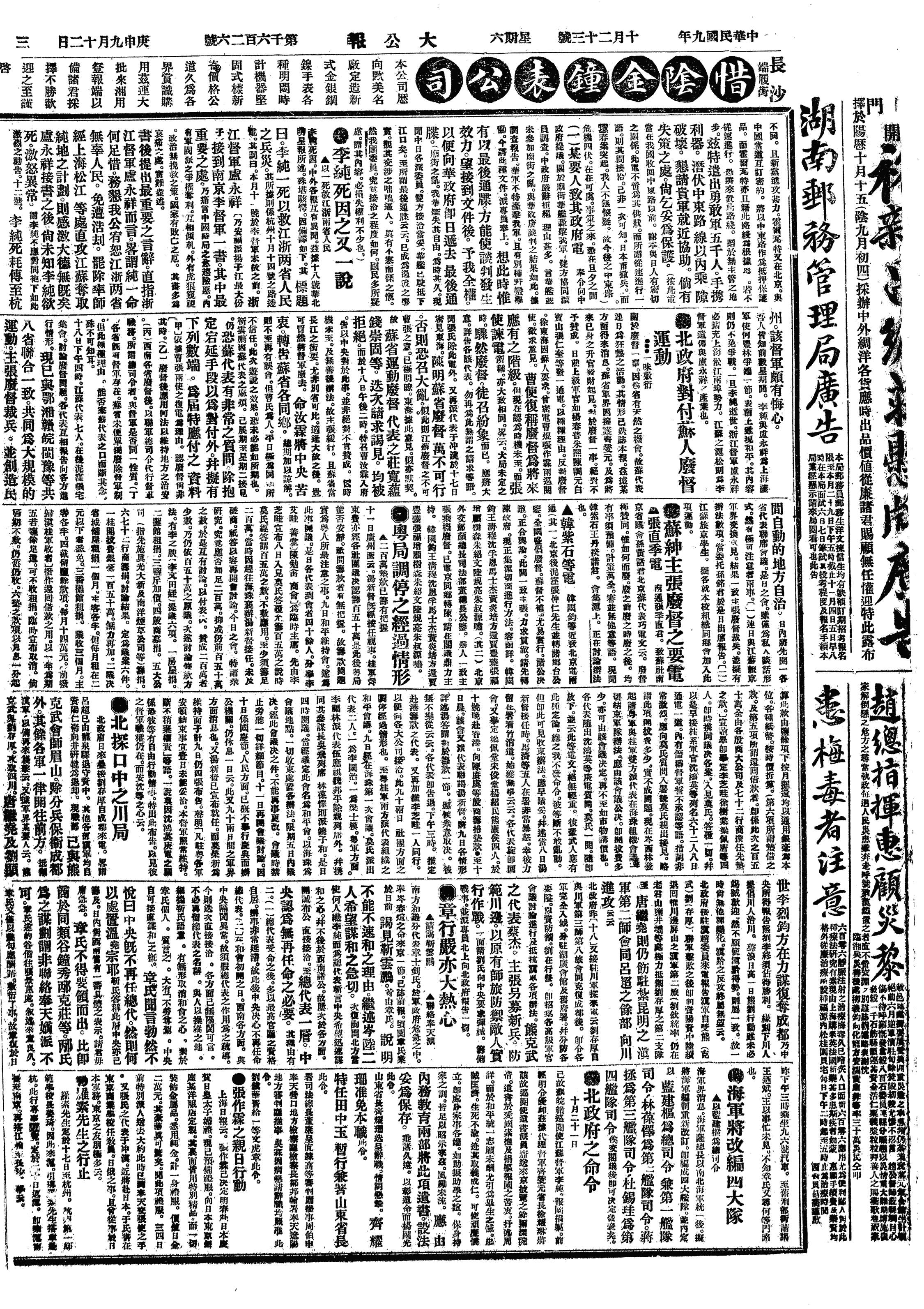 中华民国史大事记>19201023