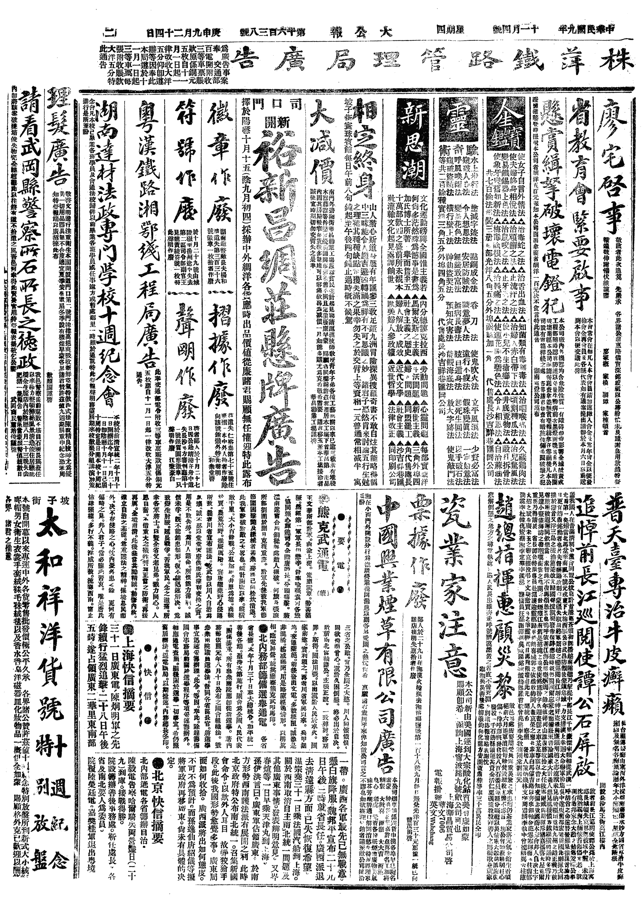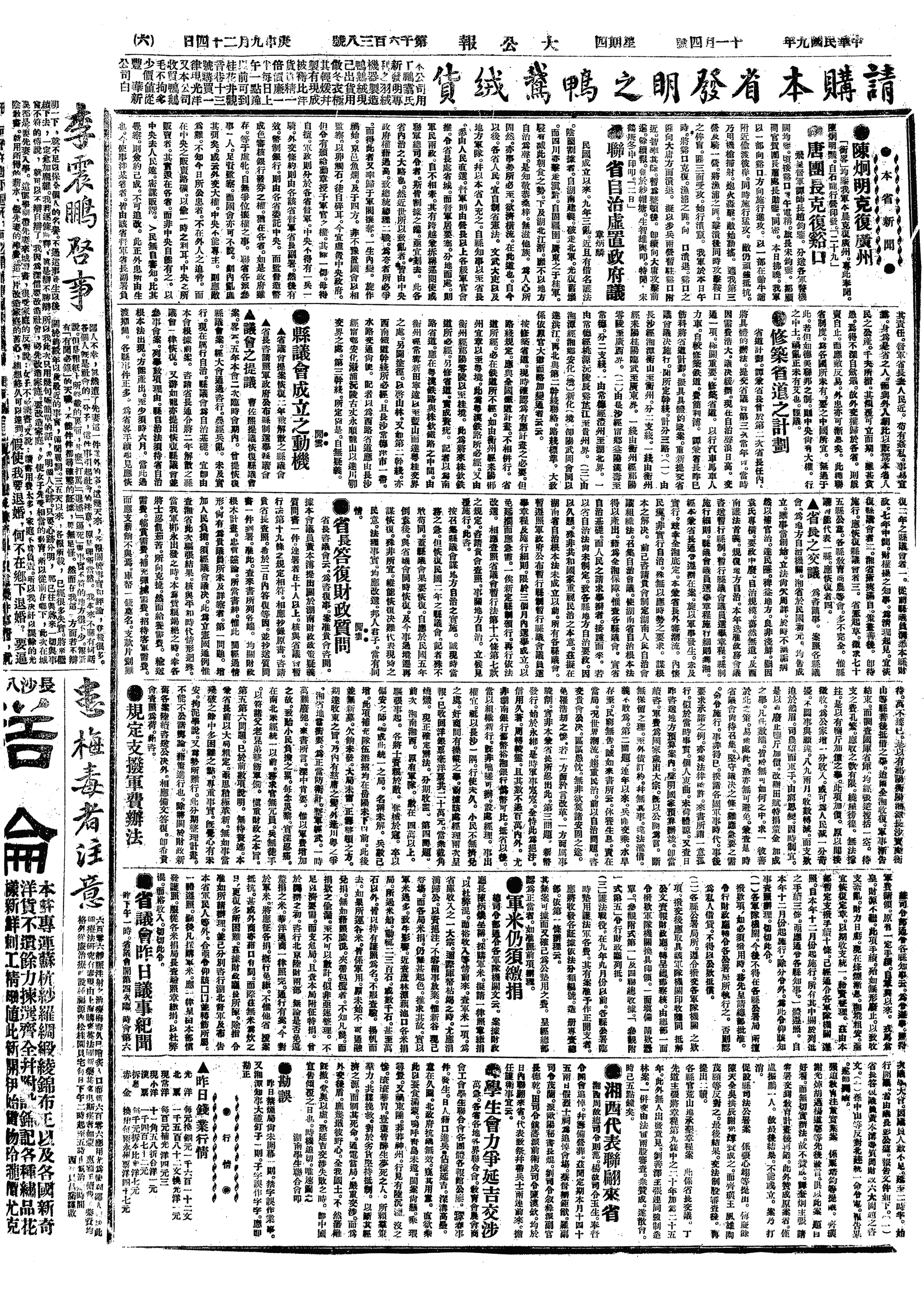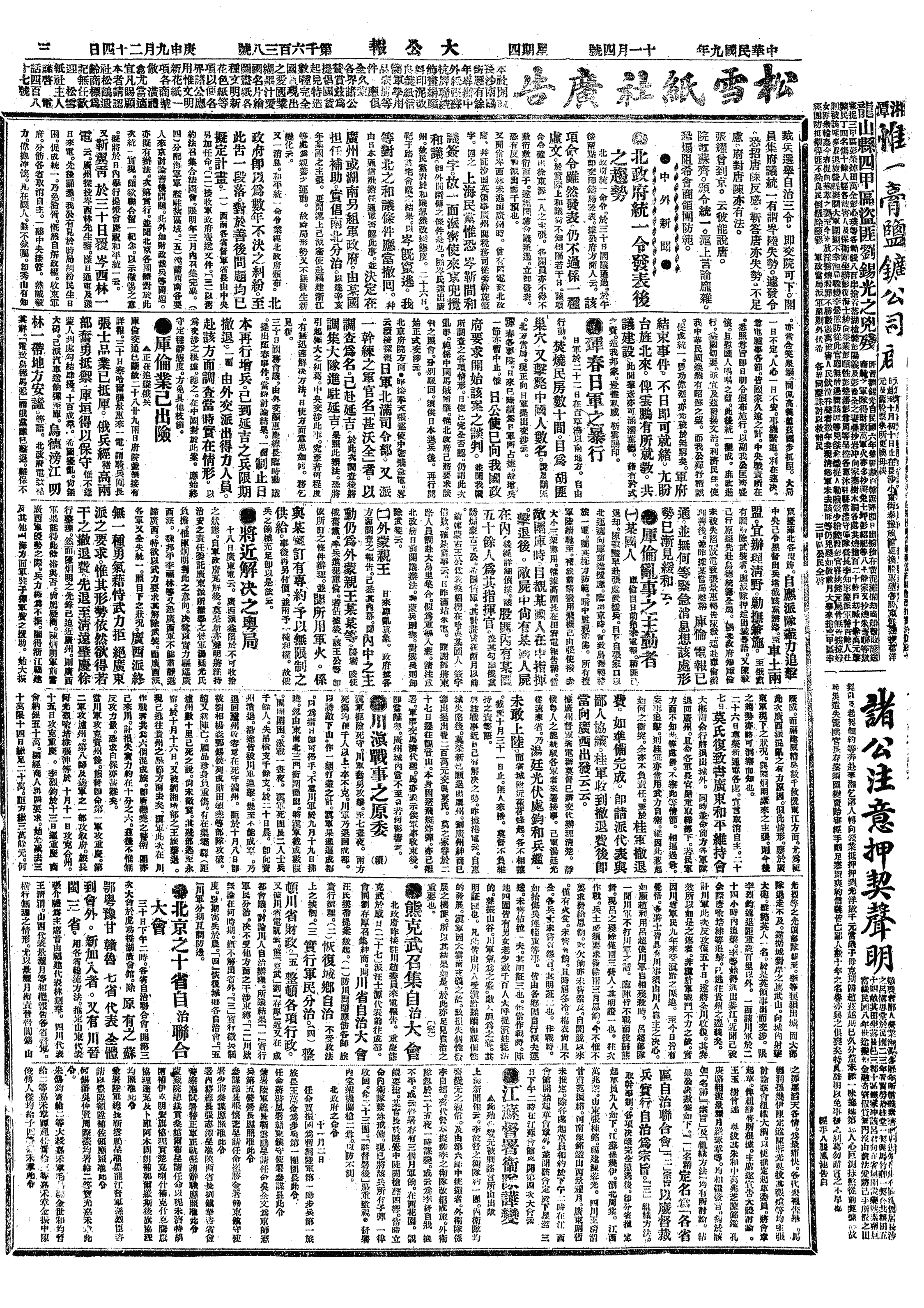 中华民国史大事记>19201104