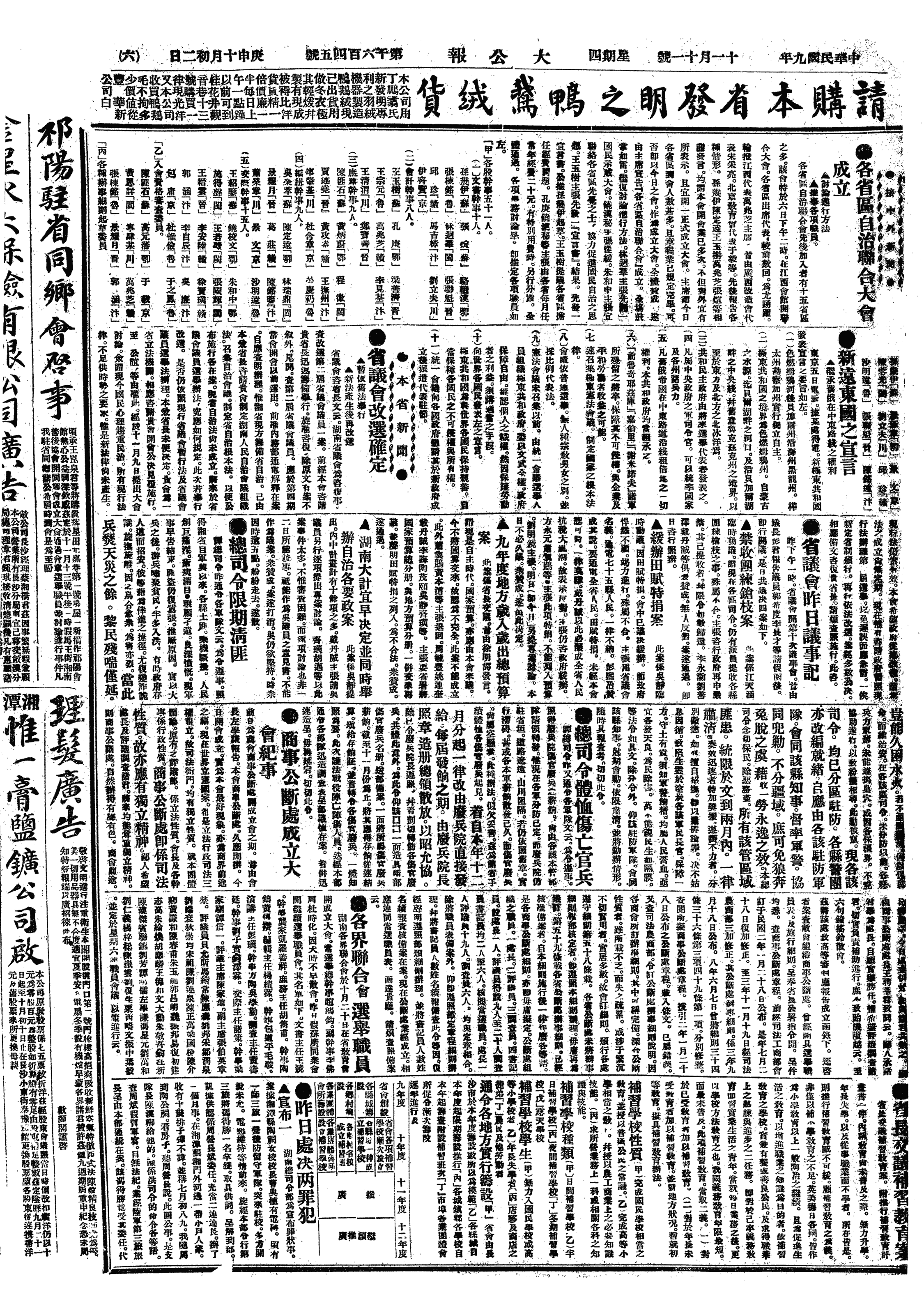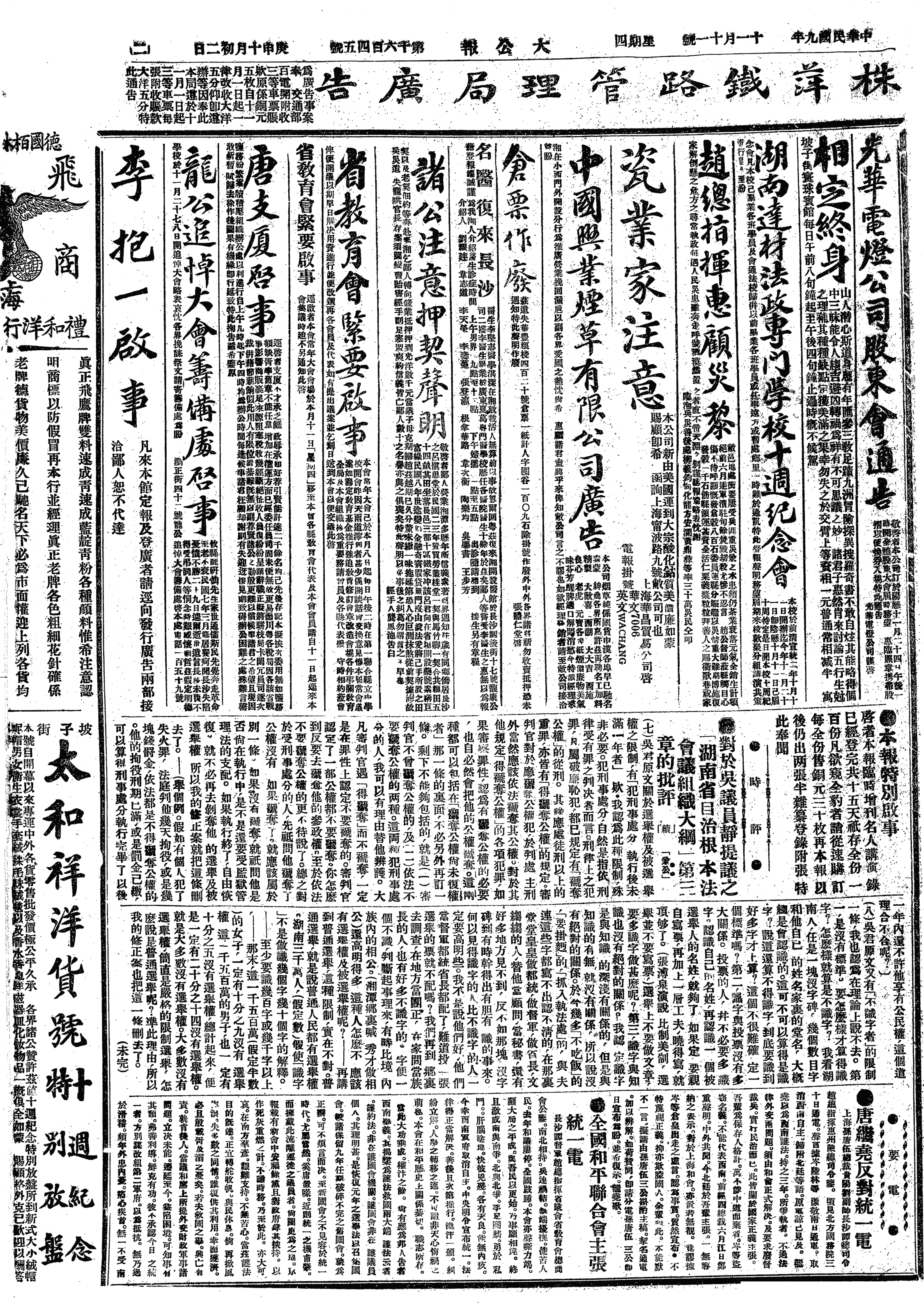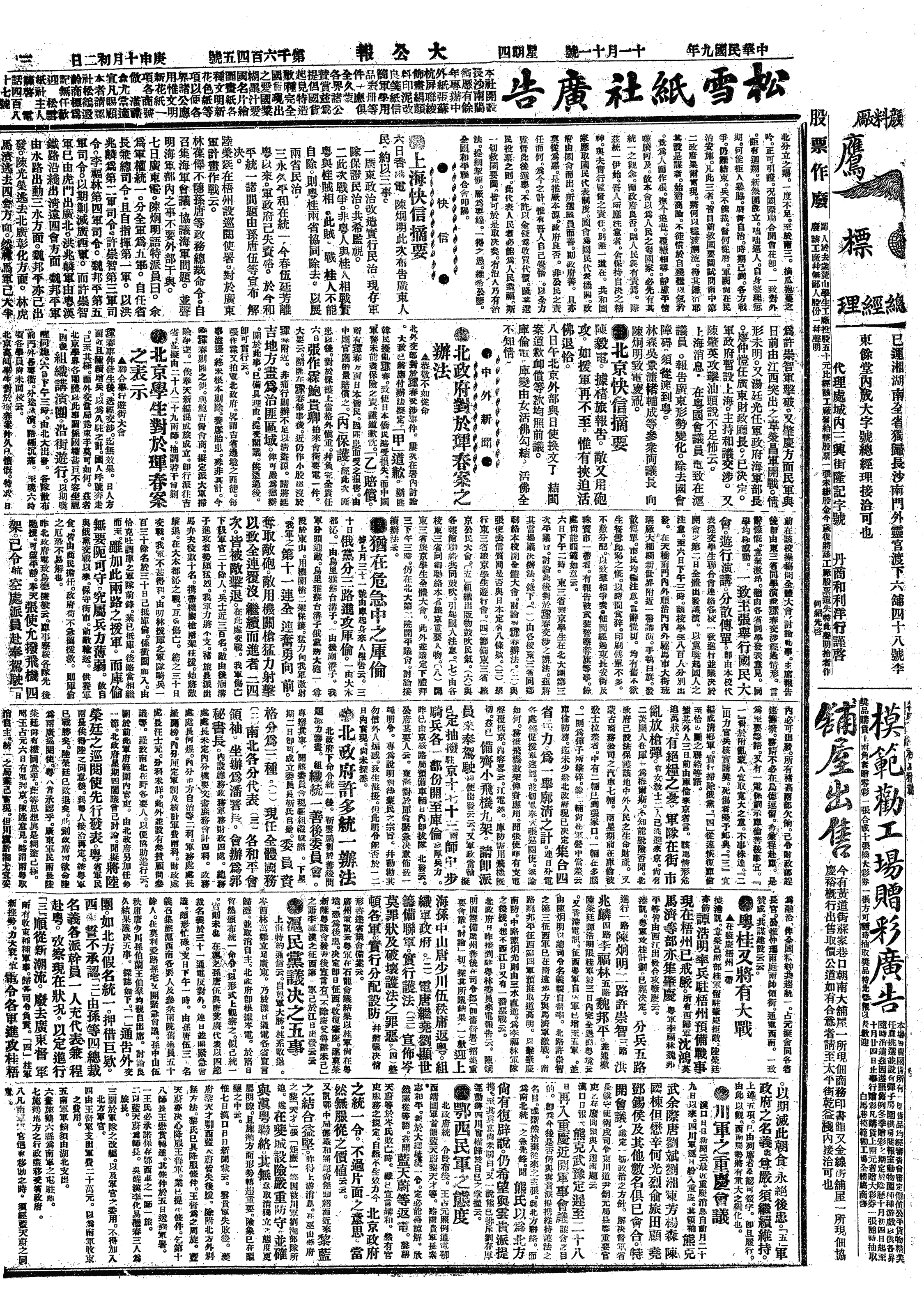 中华民国史大事记>19201111